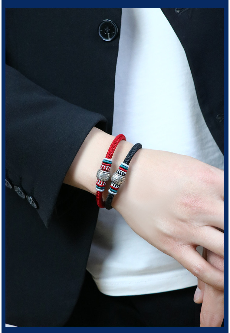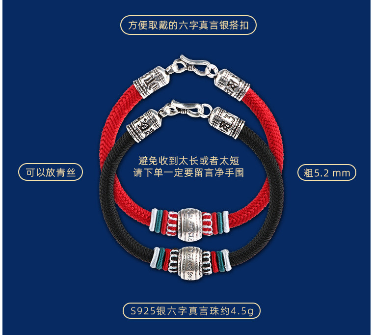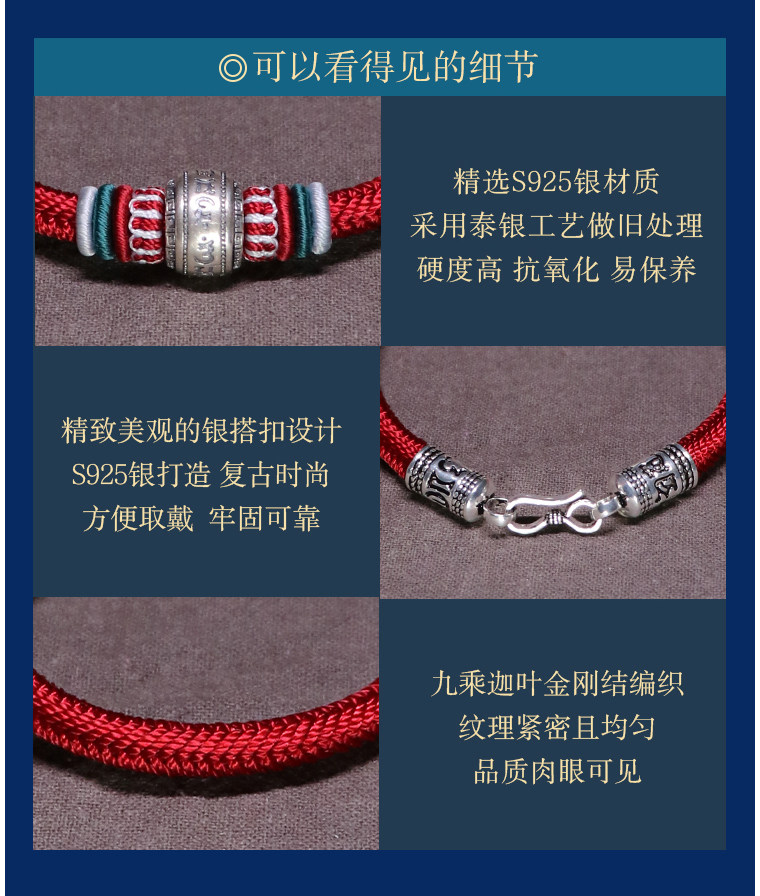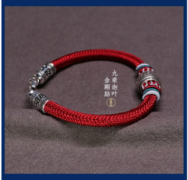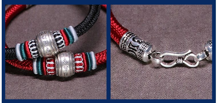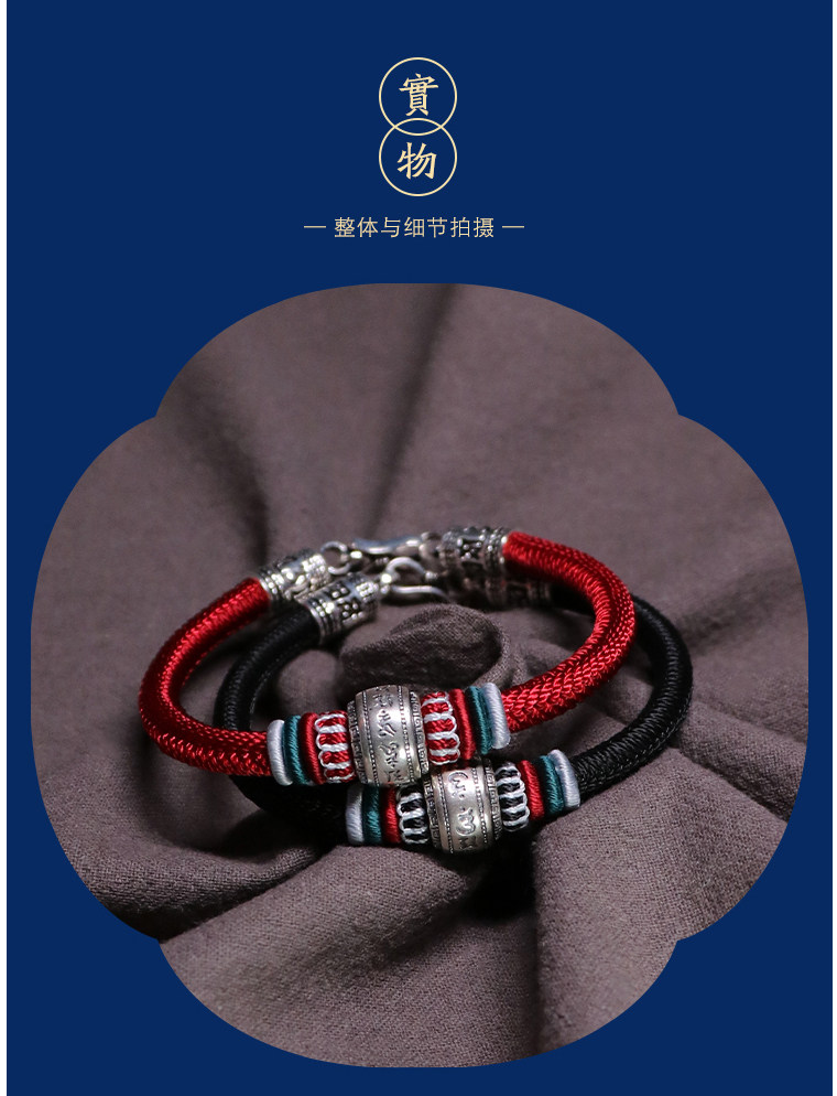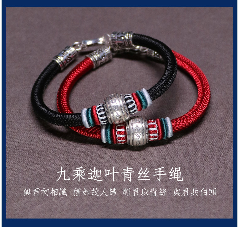 Silver Hair Rope Bracelet with Six-Word Mantra and Fortune Beads, Woven with Nine-Strand Ghae Ye Vajra Knot, Suitable for Men and Women, Couple's Hair Bracelet