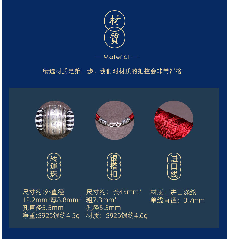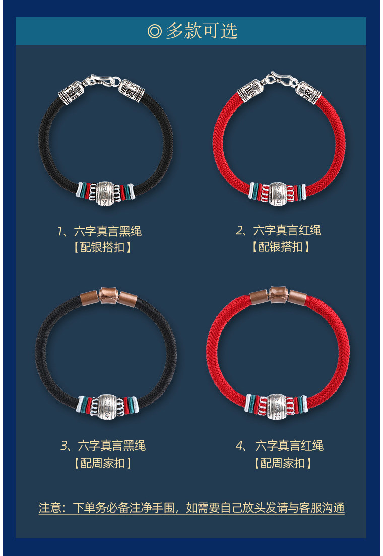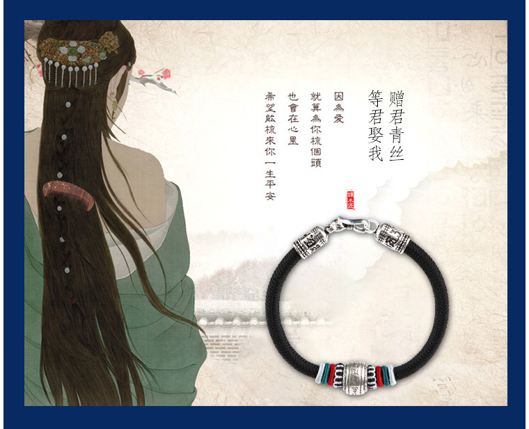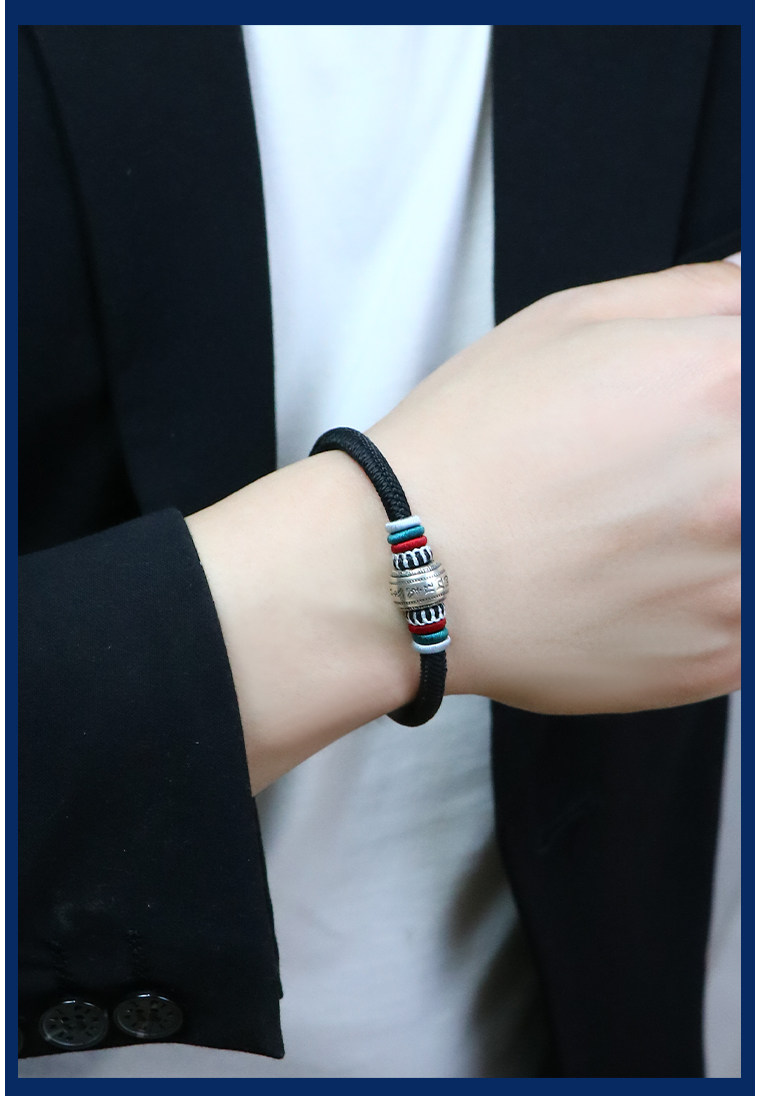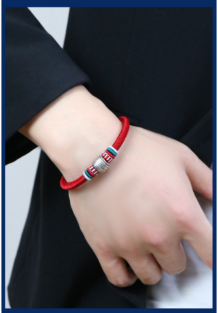 Silver Hair Rope Bracelet with Six-Word Mantra and Fortune Beads, Woven with Nine-Strand Ghae Ye Vajra Knot, Suitable for Men and Women, Couple's Hair Bracelet