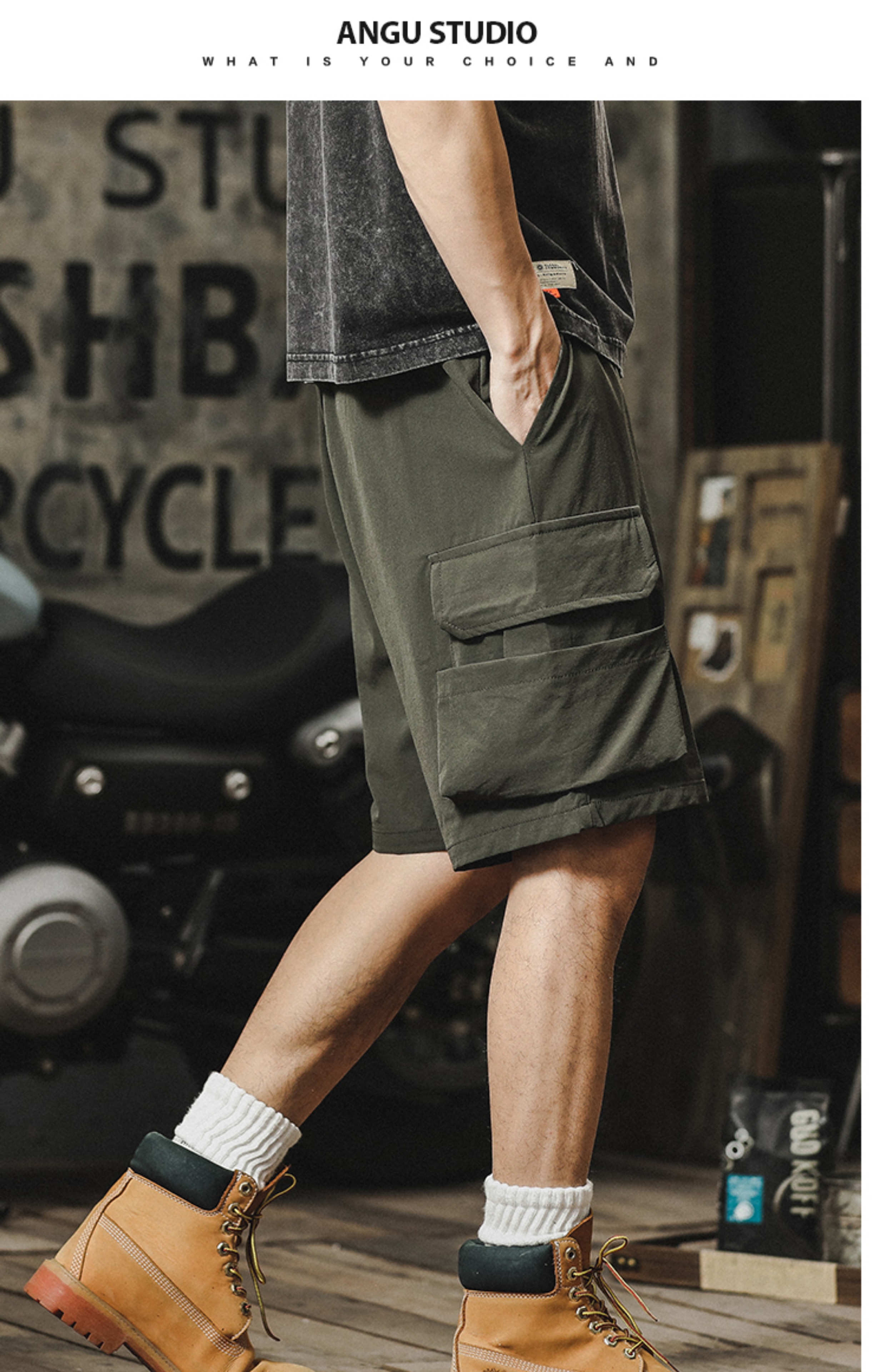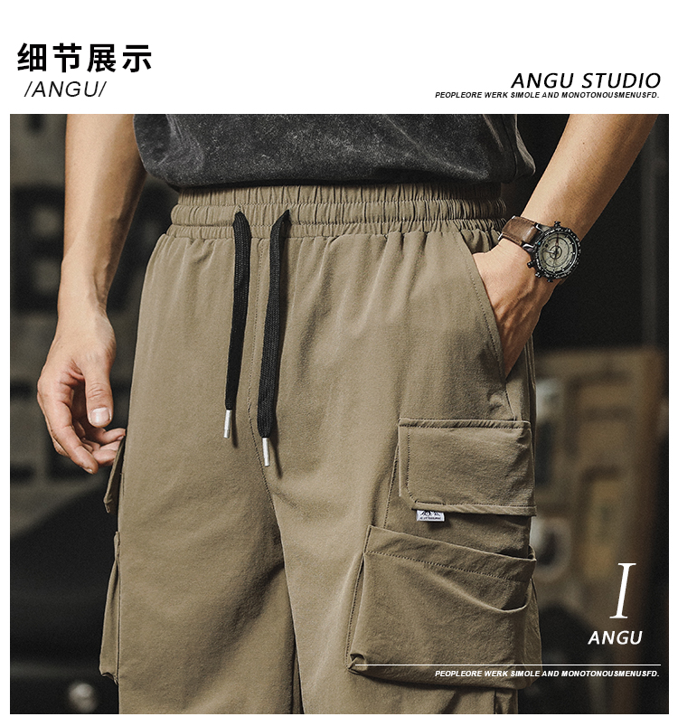 Ice Silk Work Shorts for Men, Summer Thin Style, American Trendy Brand, Straight Loose Fit, Breathable, Quick-Drying, Casual Five-Point Shorts