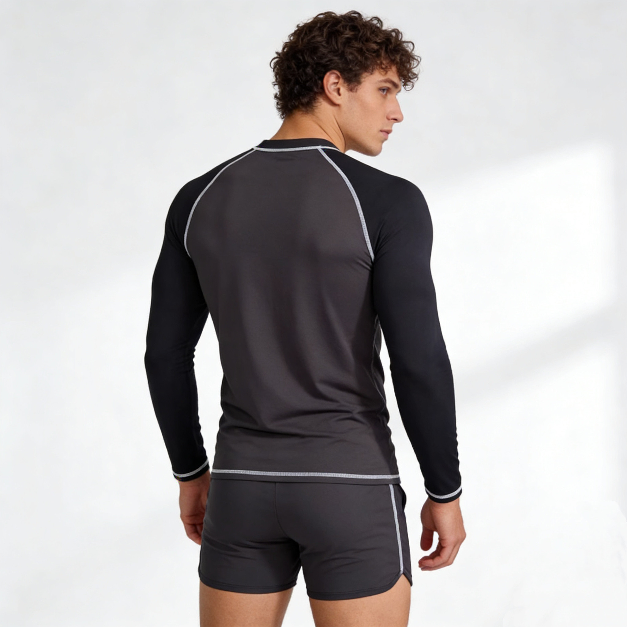 Amber Foreign Brand Plus-Size Striped Swimsuit Men's Long-Sleeve Solid Color Surfing Sun Protection Short-Sleeve Top Diving Suit