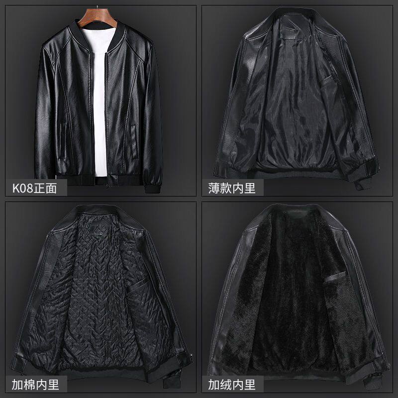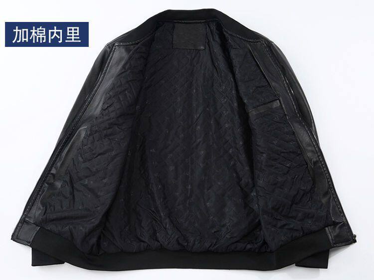 2024 Autumn/Winter New Men's Leather Jacket with Baseball Collar, Fleece and Cotton Lining, Casual Leather Jacket for Young and Middle-Aged, Trendy Style