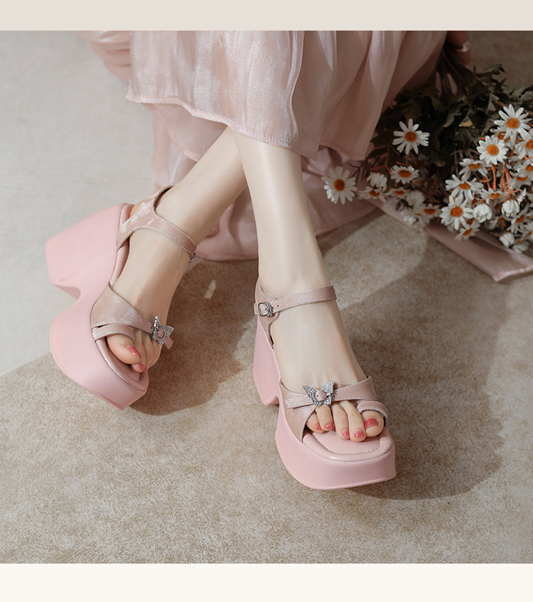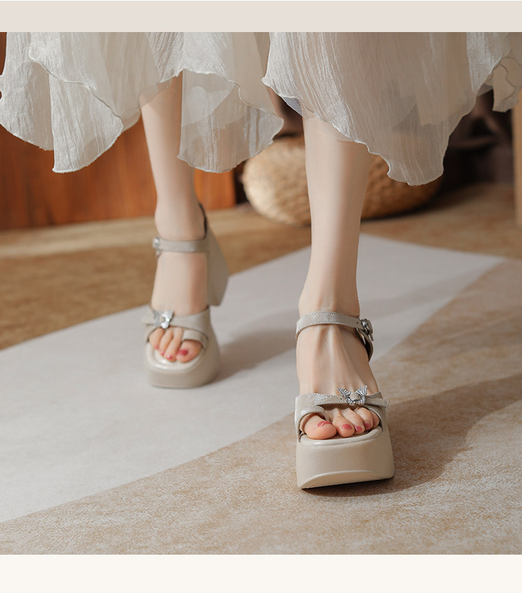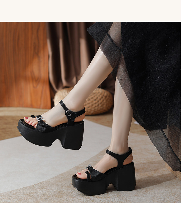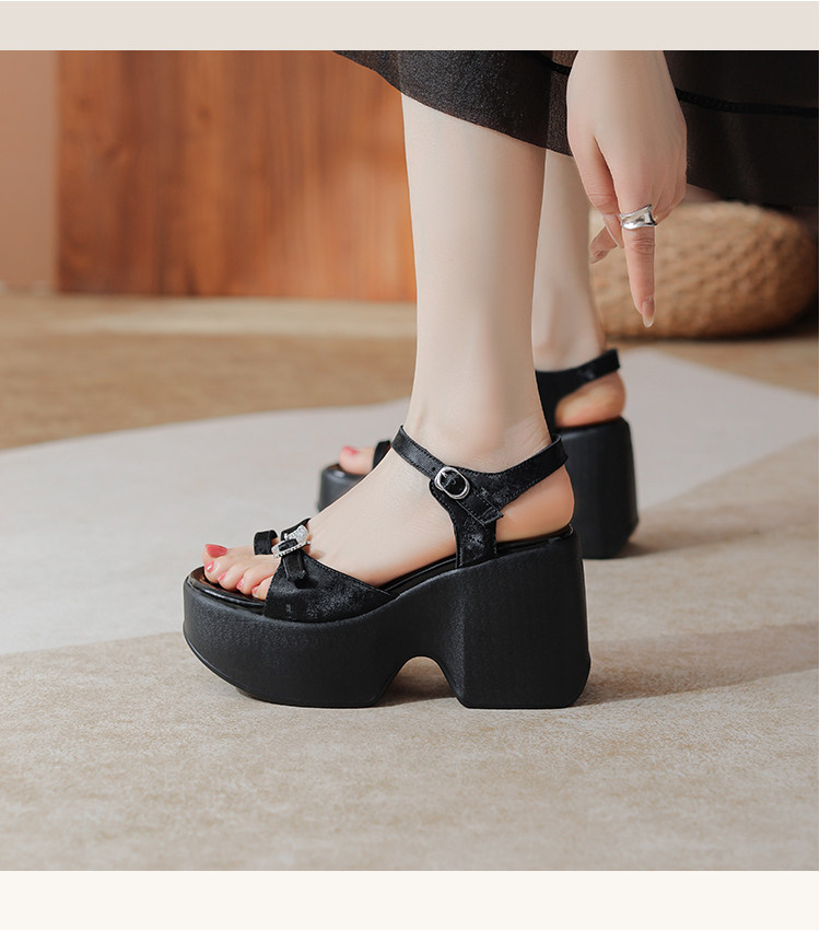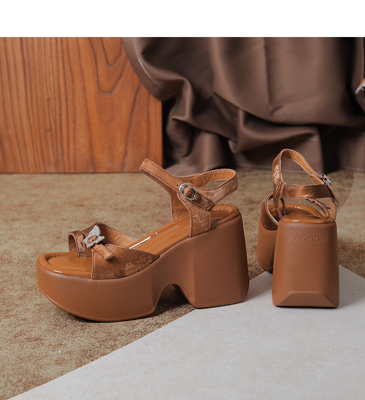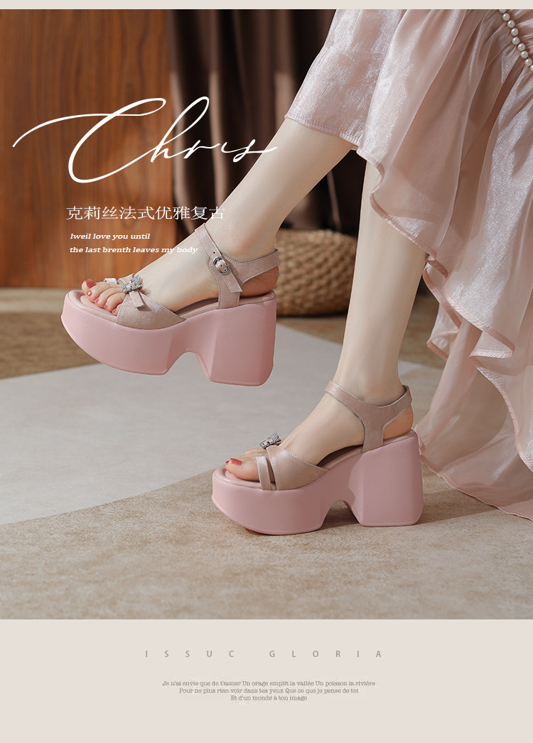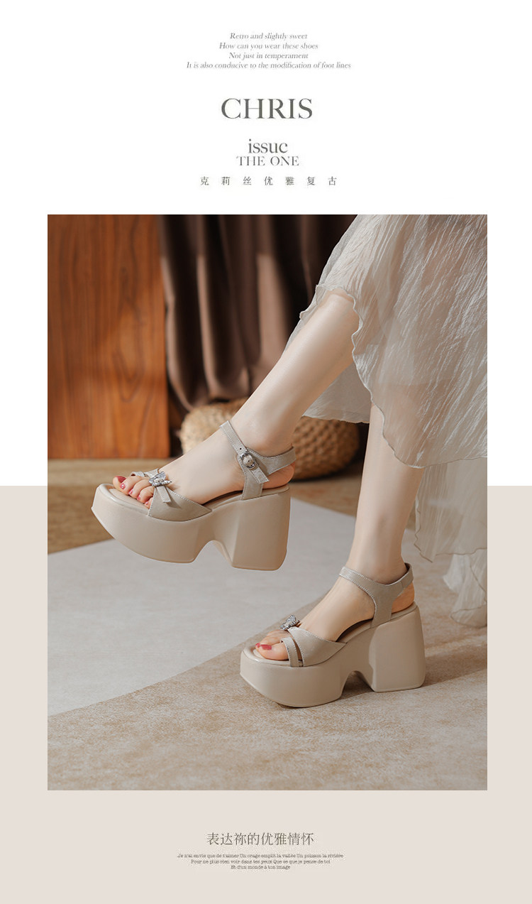10cm Height Increase 2025 Summer New Roman Thick-Soled Sandals for Women, High-Heeled, Open-Toe, Chunky Heel, Genuine Leather Women's Shoes