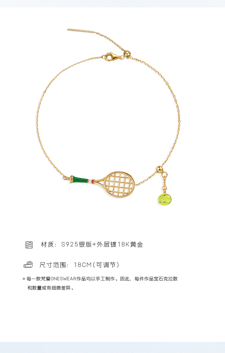 ONE SWEAR tennis racket bracelet women's Accessible Luxury Niche style exquisite Couple gift Fashion sports style jewelry