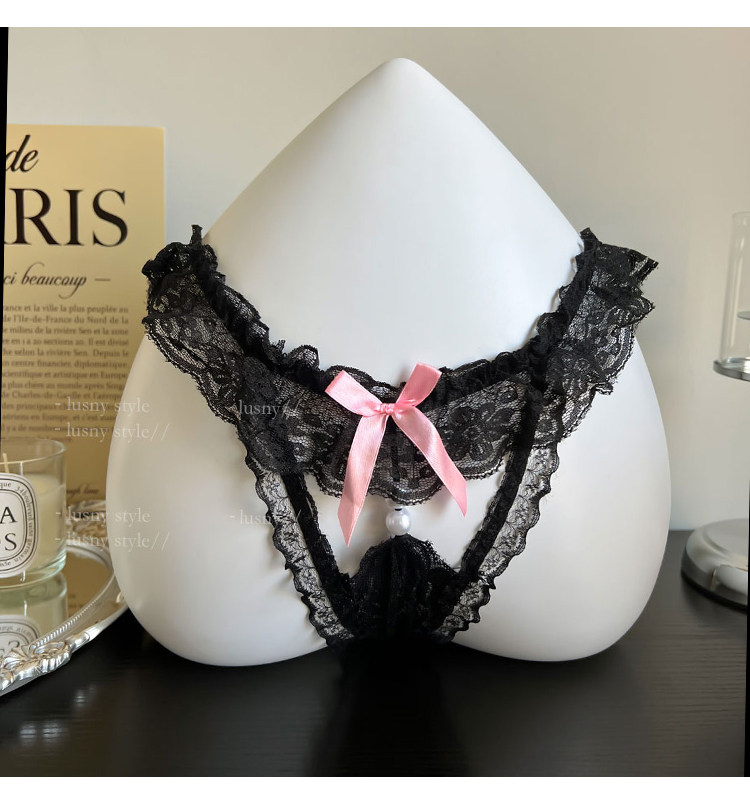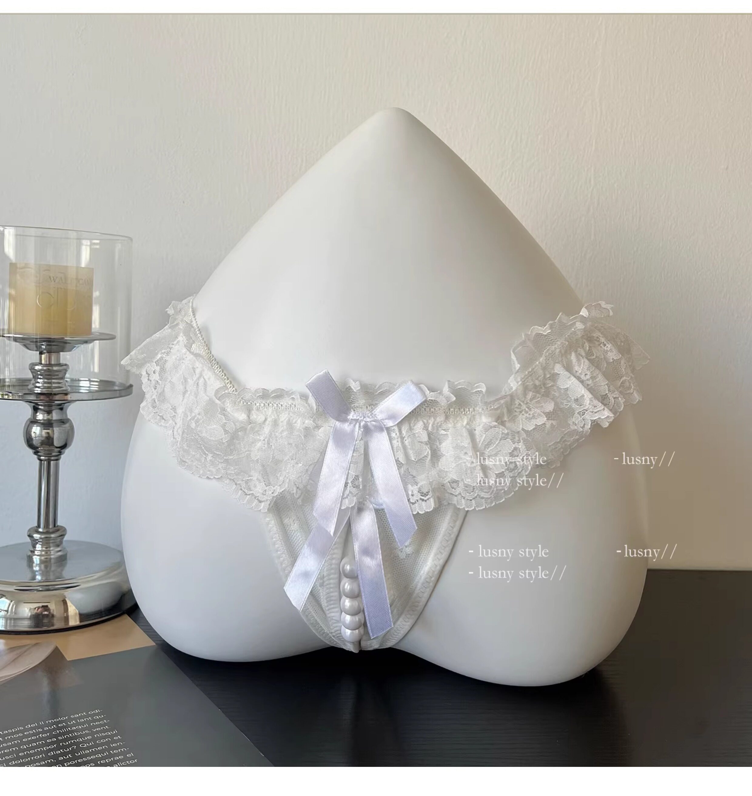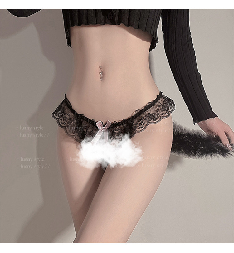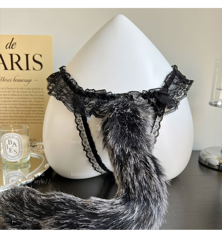 Uncle Deer: Sexy and Cute Cat Tail Thong Low-Waist Lace Cosplay Fox Fur Ball Tail Pearl Briefs
