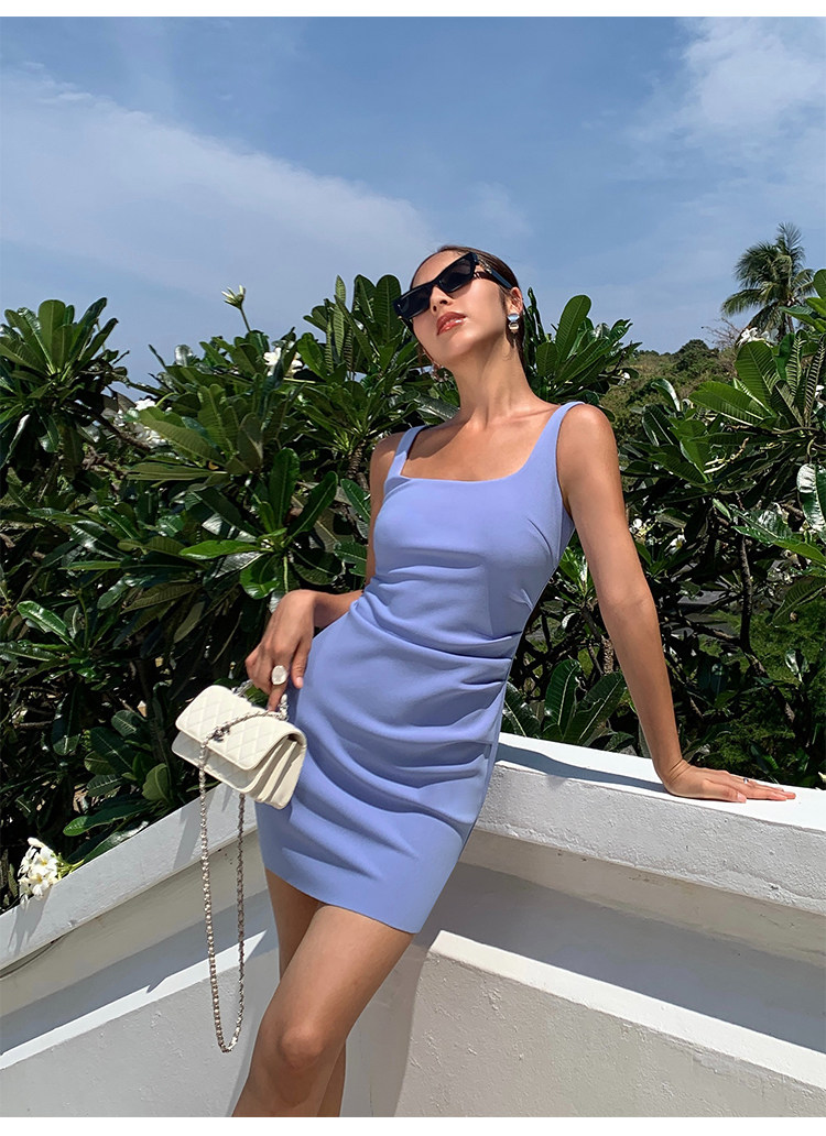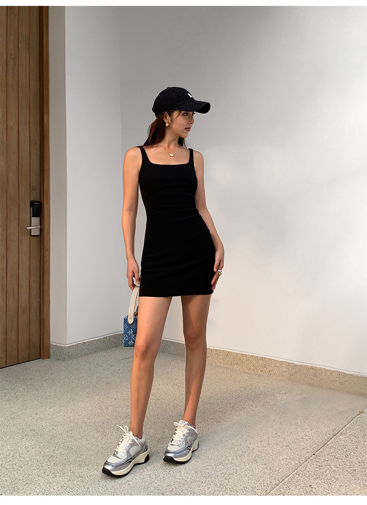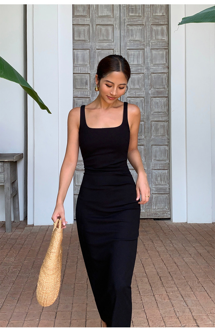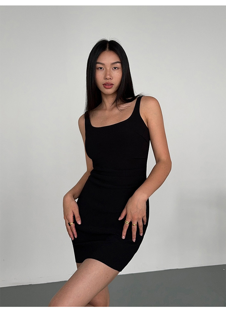 Neva Hu Black Slim Fit Square Neck Backless Dress for Women Summer Sexy Hot Girl Sleeveless Tank Top Bodycon Mini Dress