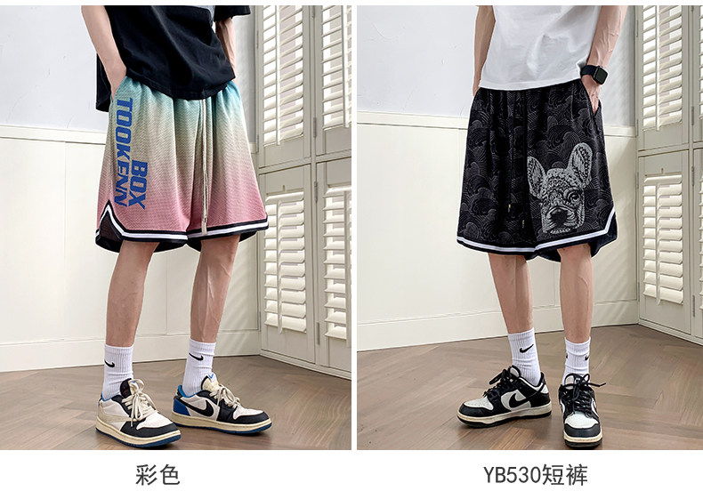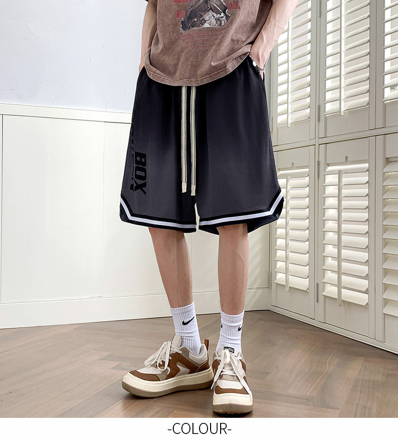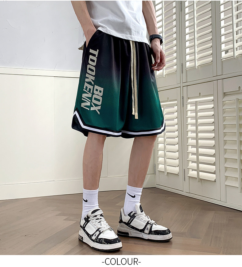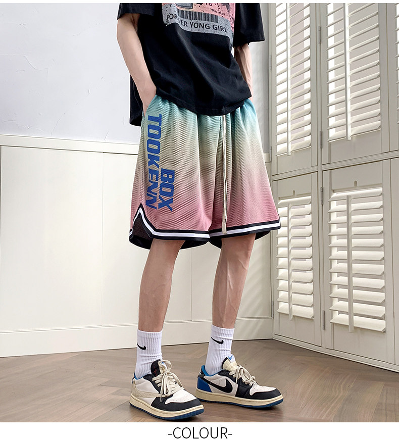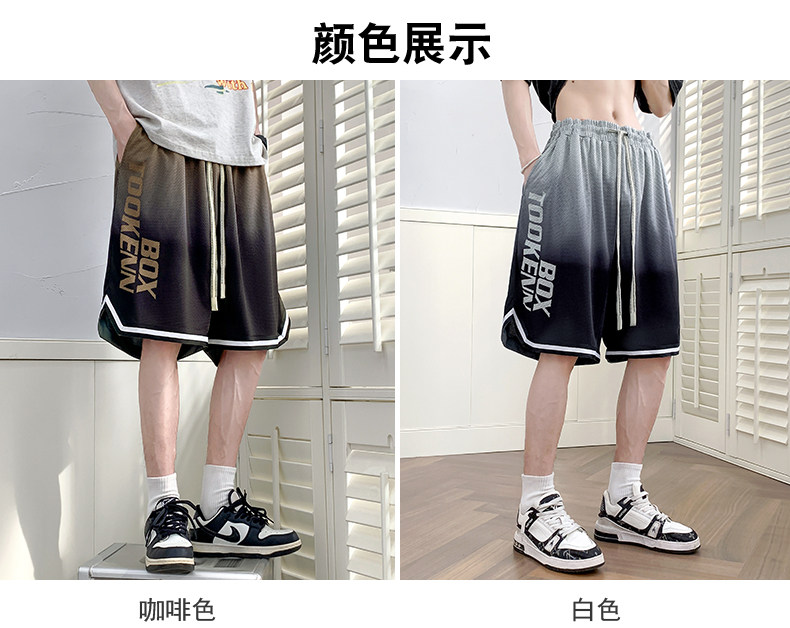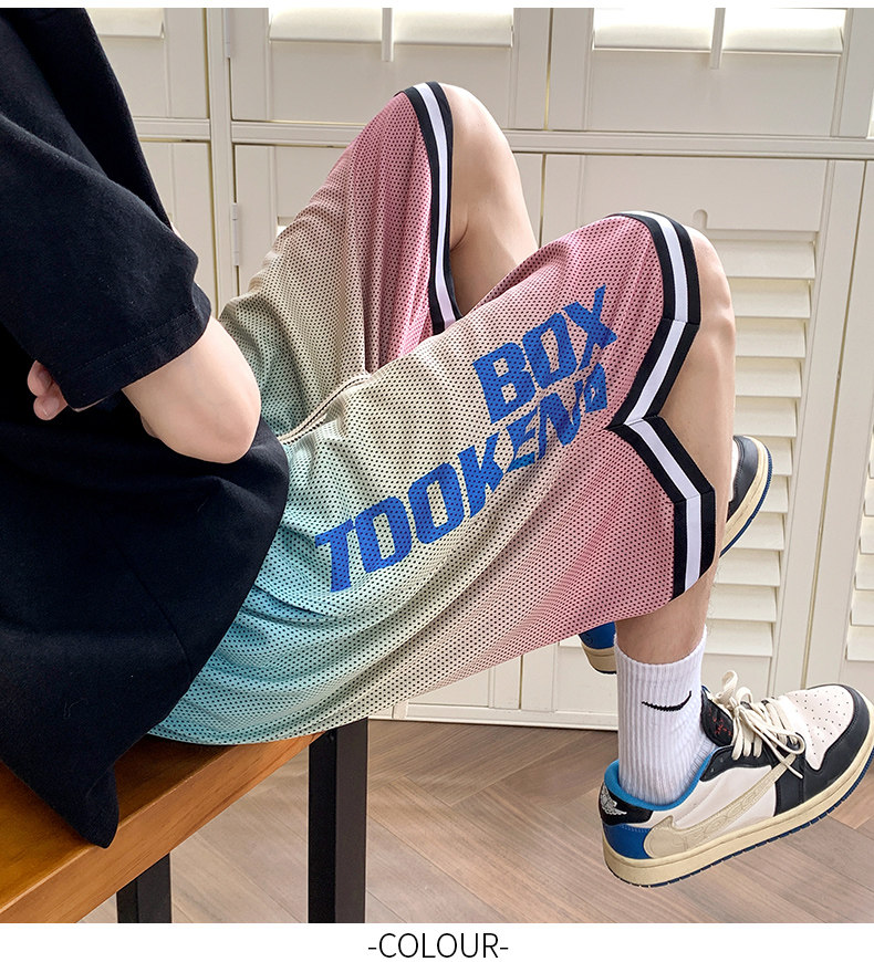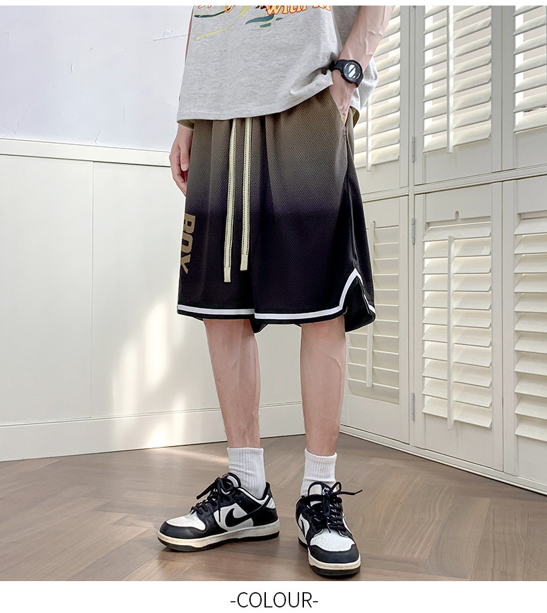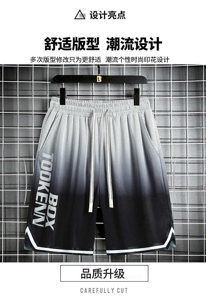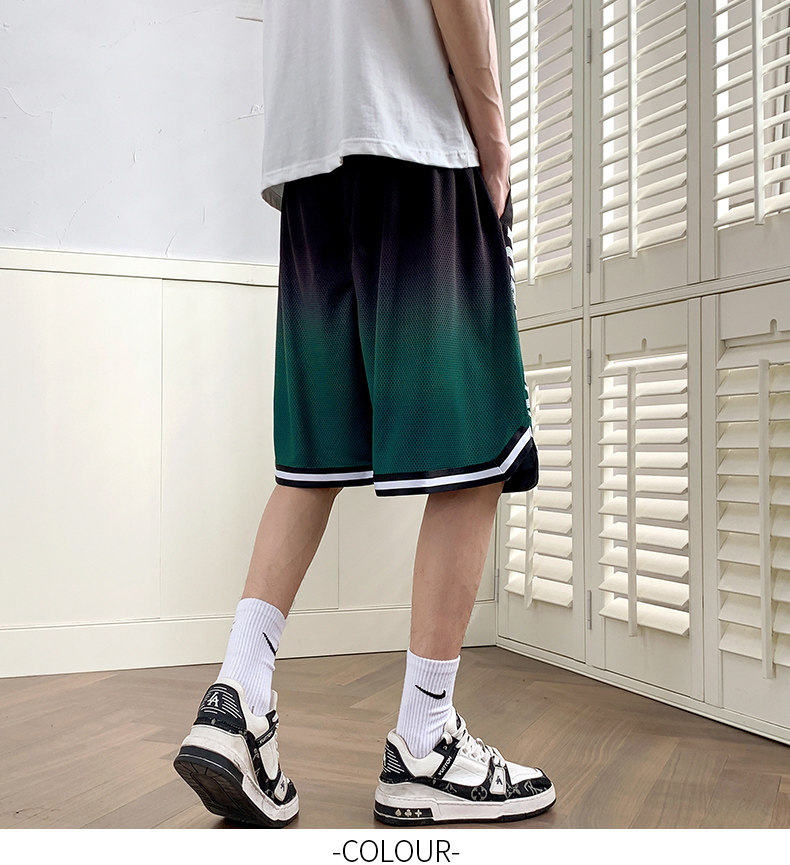 Gradient Color Sports Shorts for Boys, Plus Size, Loose Fit, Five-Point Shorts for Teenagers, Basketball Casual Mid-Length Pants