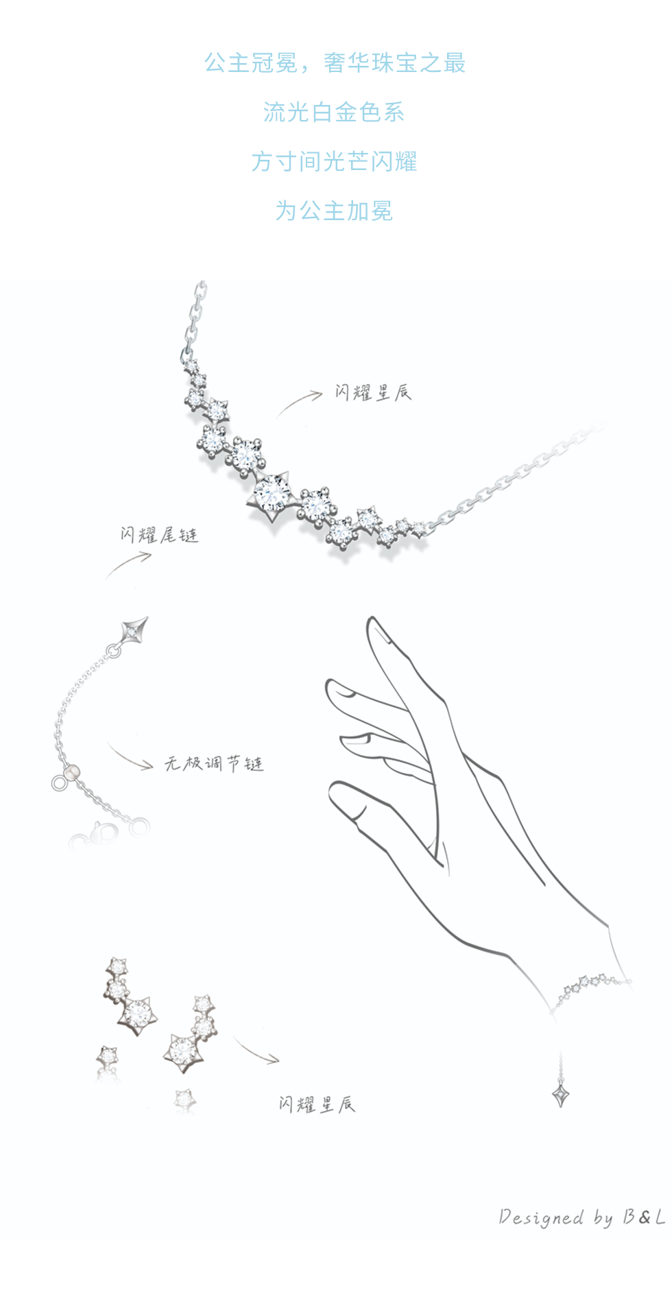 [Same Style as Zhao Lusi] Blossomlight Princess Crown Pendant Simple and Luxurious Silver Necklace Clavicle Chain