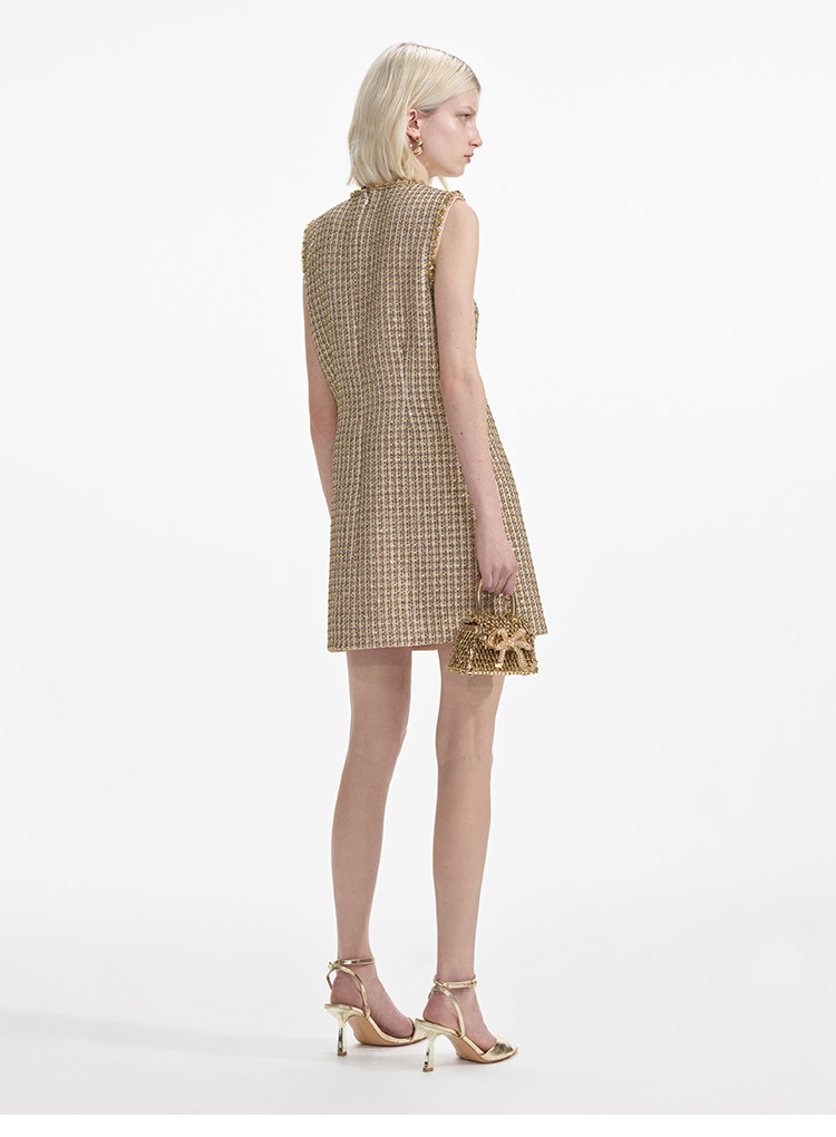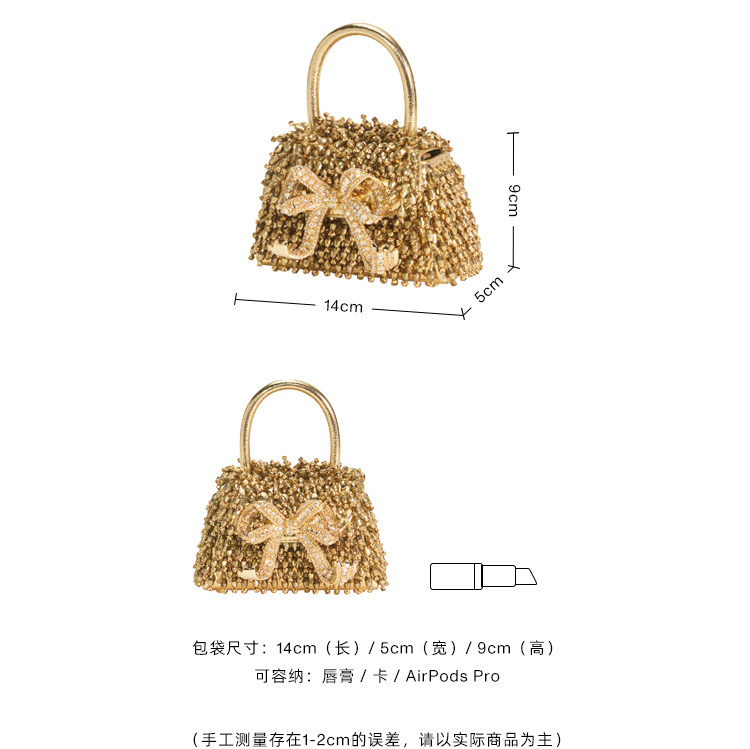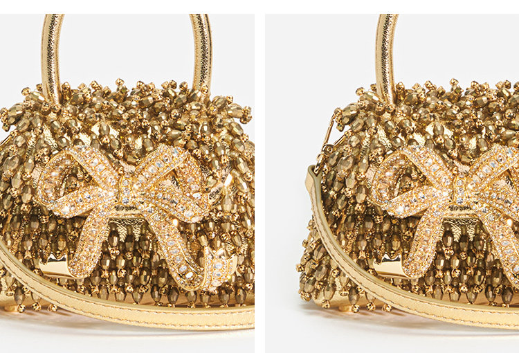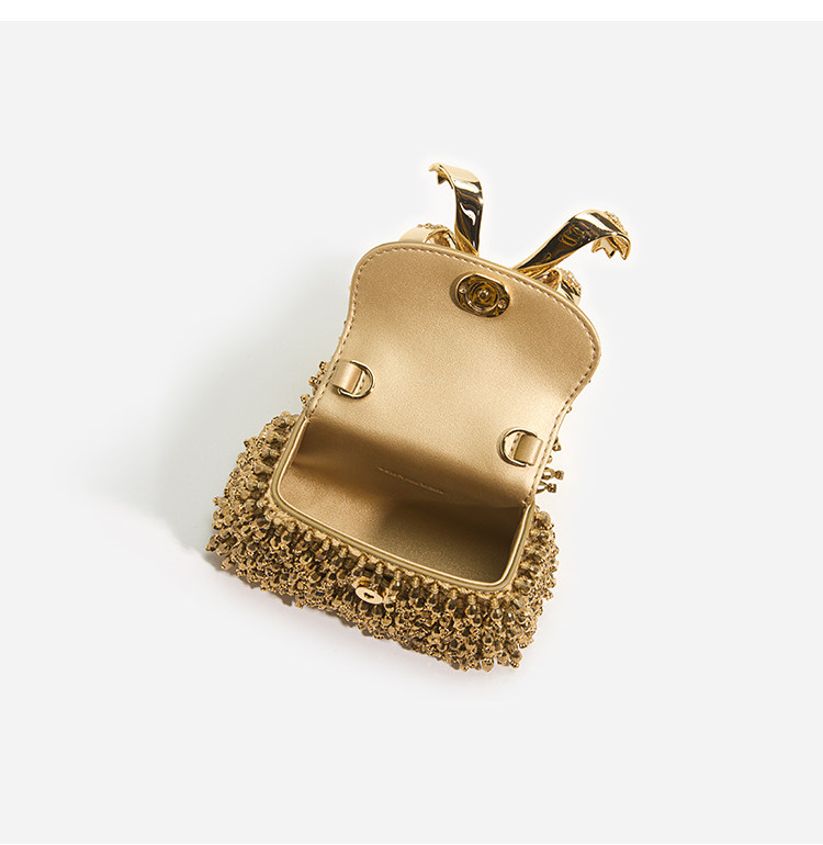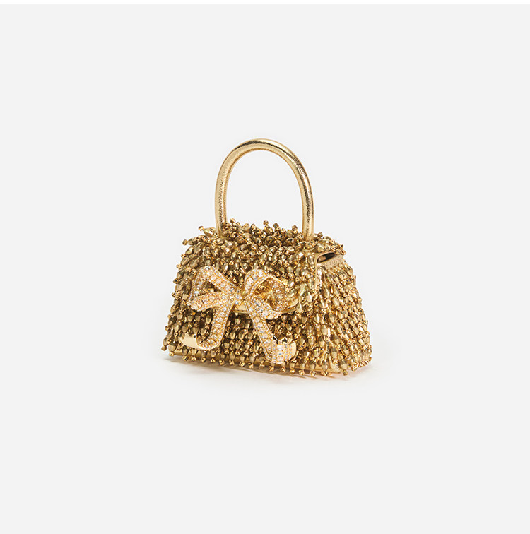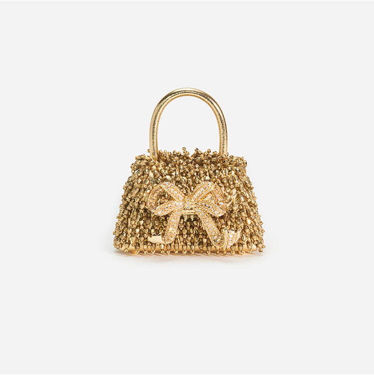 Self-Portrait Early Autumn Gold Micro Bead Chain Bow Handbag