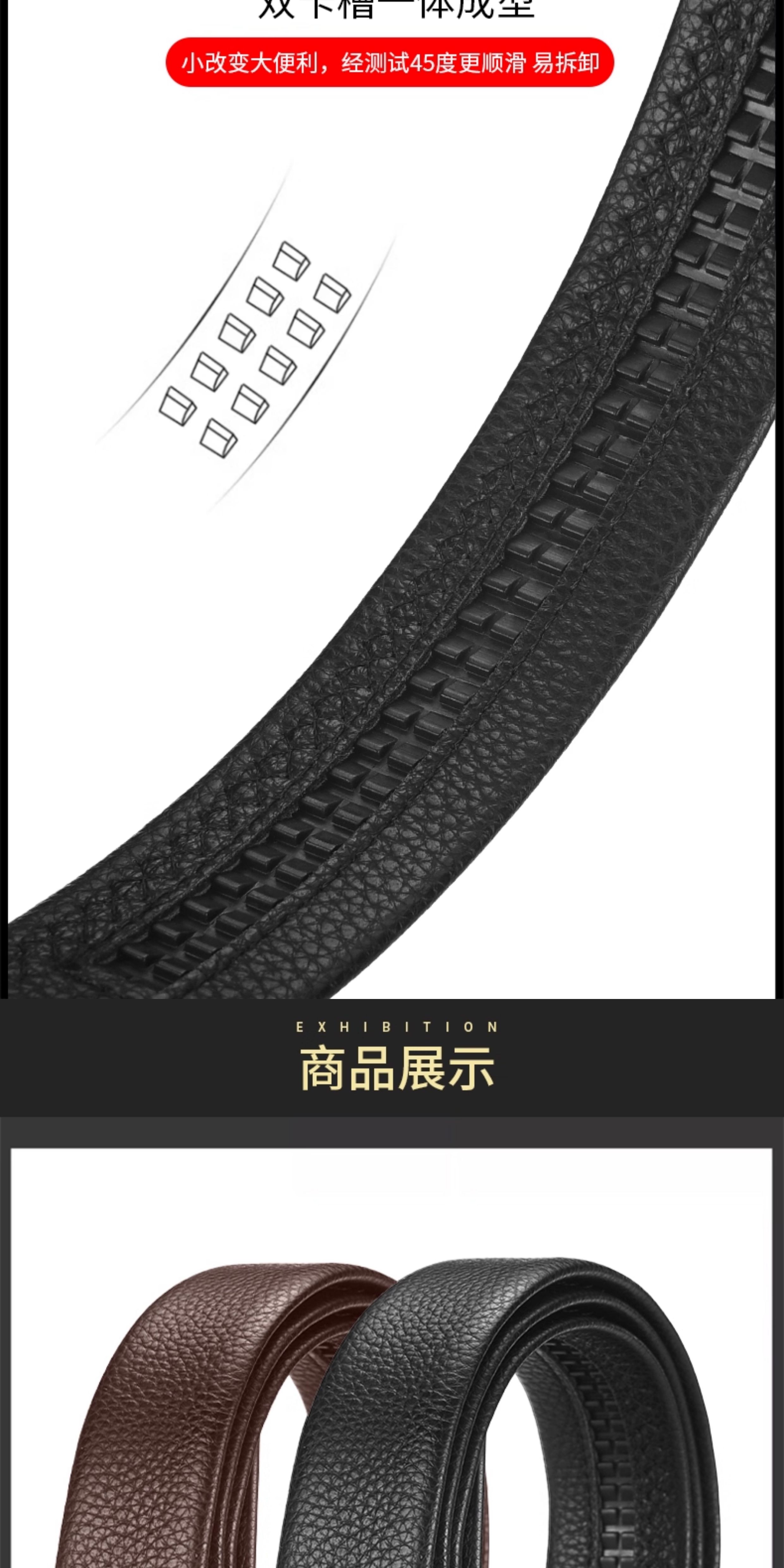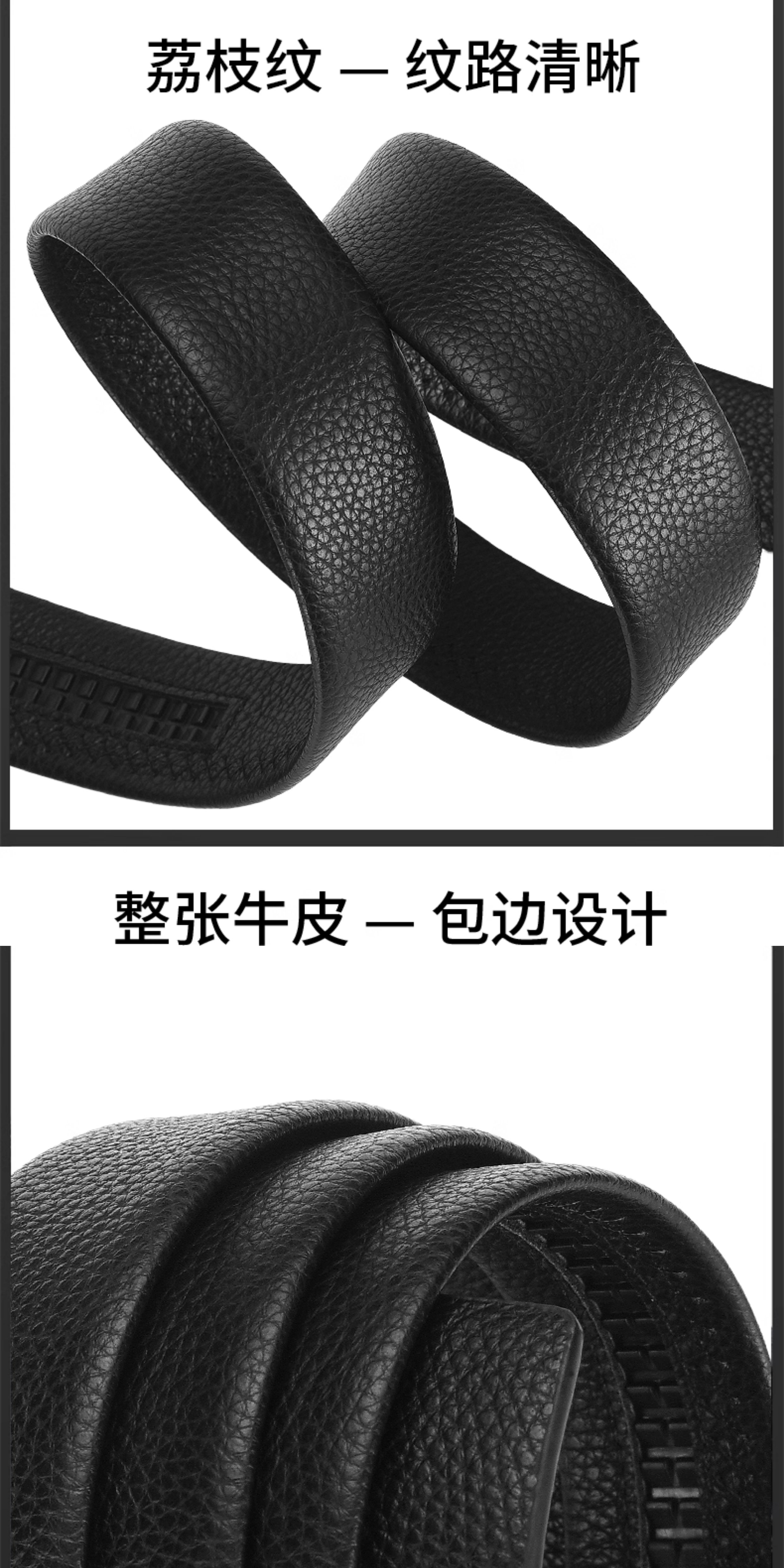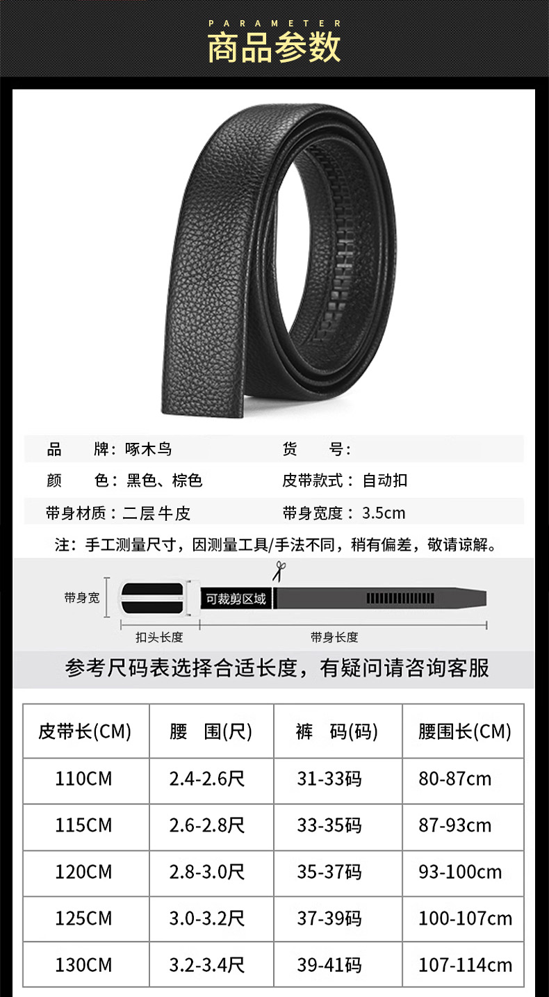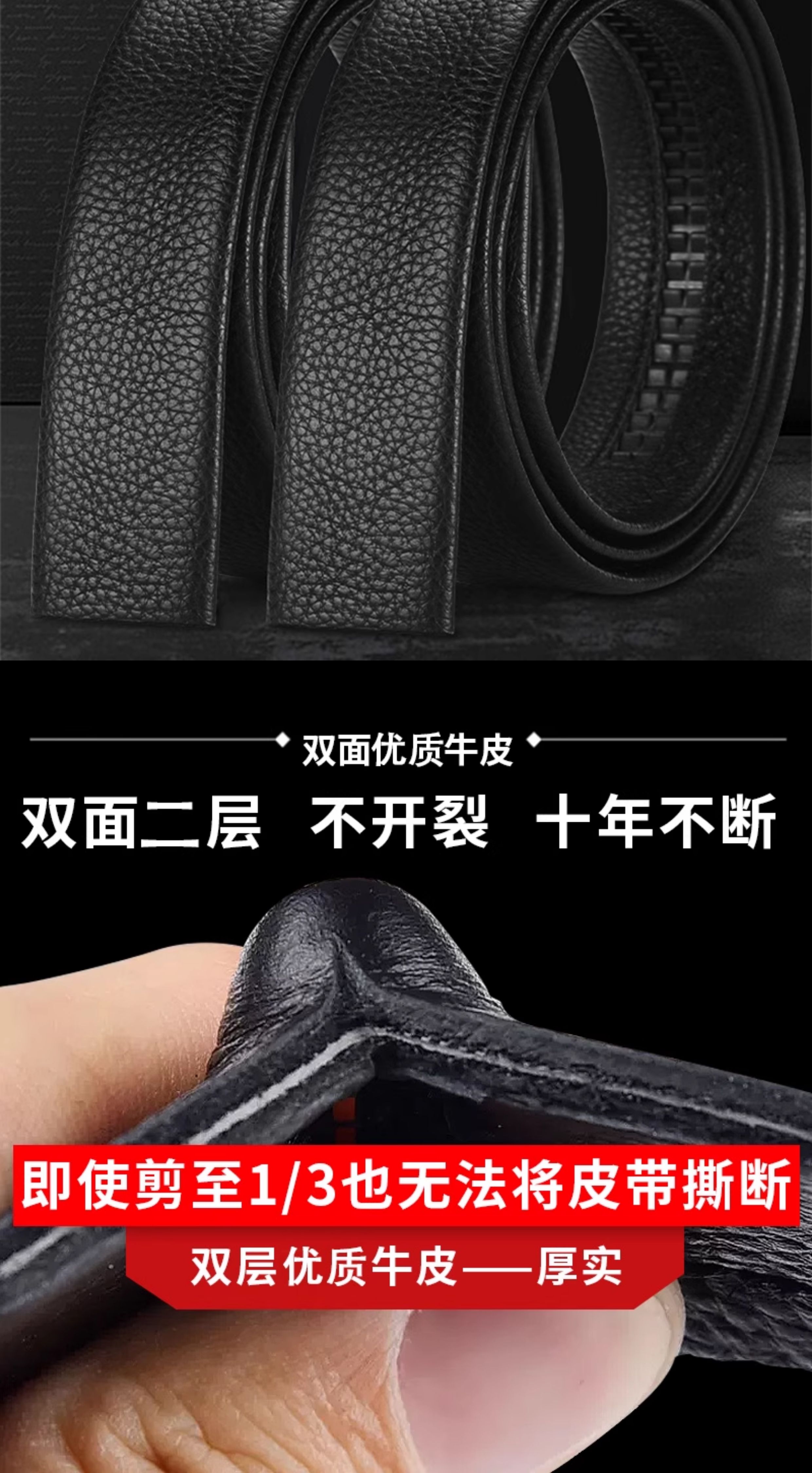 Woodpecker Genuine Leather Belt for Men, Cowhide Without Buckle, Automatic Buckle Belt, Buckleless Casual Belt, Men's Trendy Belt