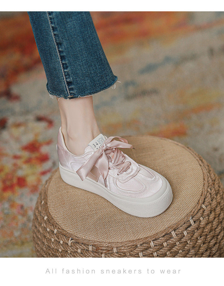 Hong Kong Style Thick-Soled Height-Increasing Satin Ballet Training Shoes for Women, Spring Season, Super Popular Sports Casual Shoes