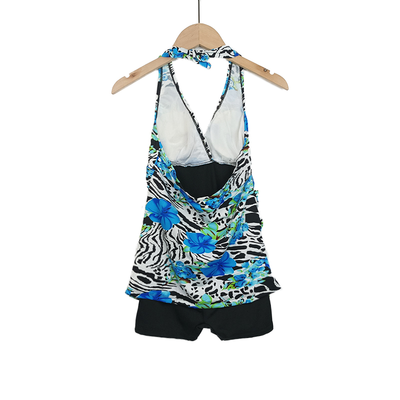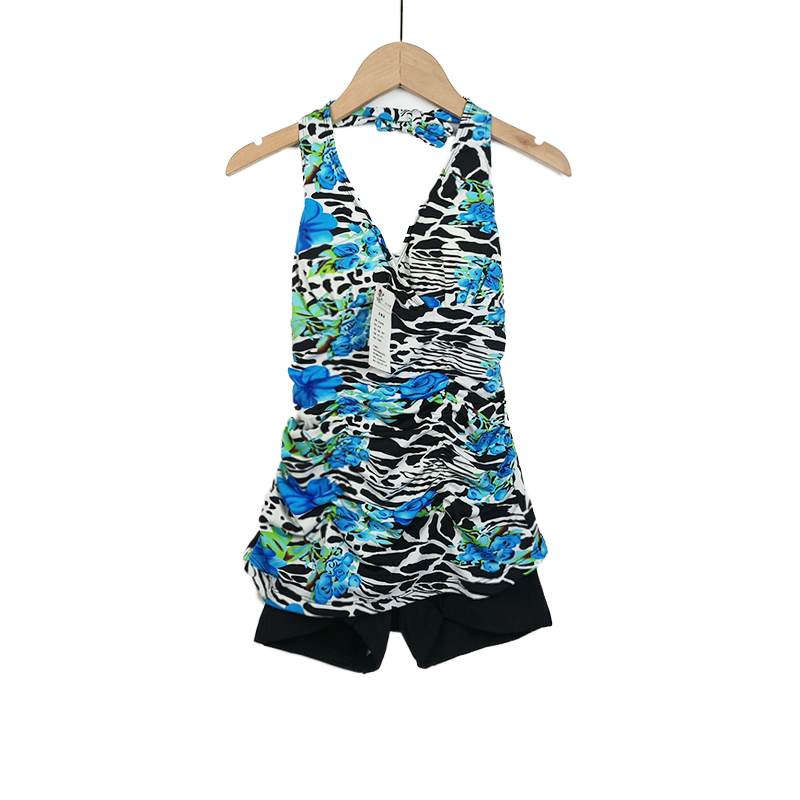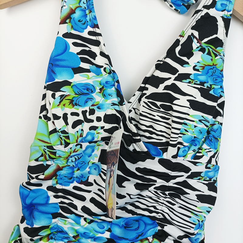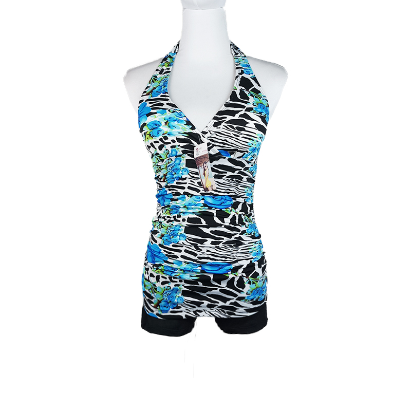 Women's Summer One-Piece Conservative Swimsuit with Four Corners Covering the Belly, Slimming and Gathering, Suitable for Vacation and Hot Springs, with Chest Pads