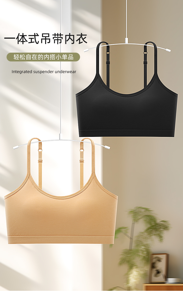 Girls' Underwear Bra for Students in Middle and High School, Puberty Development, Sports, Older Children's Vest, One-Piece Pure Cotton Camisole