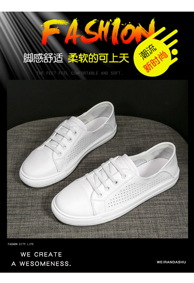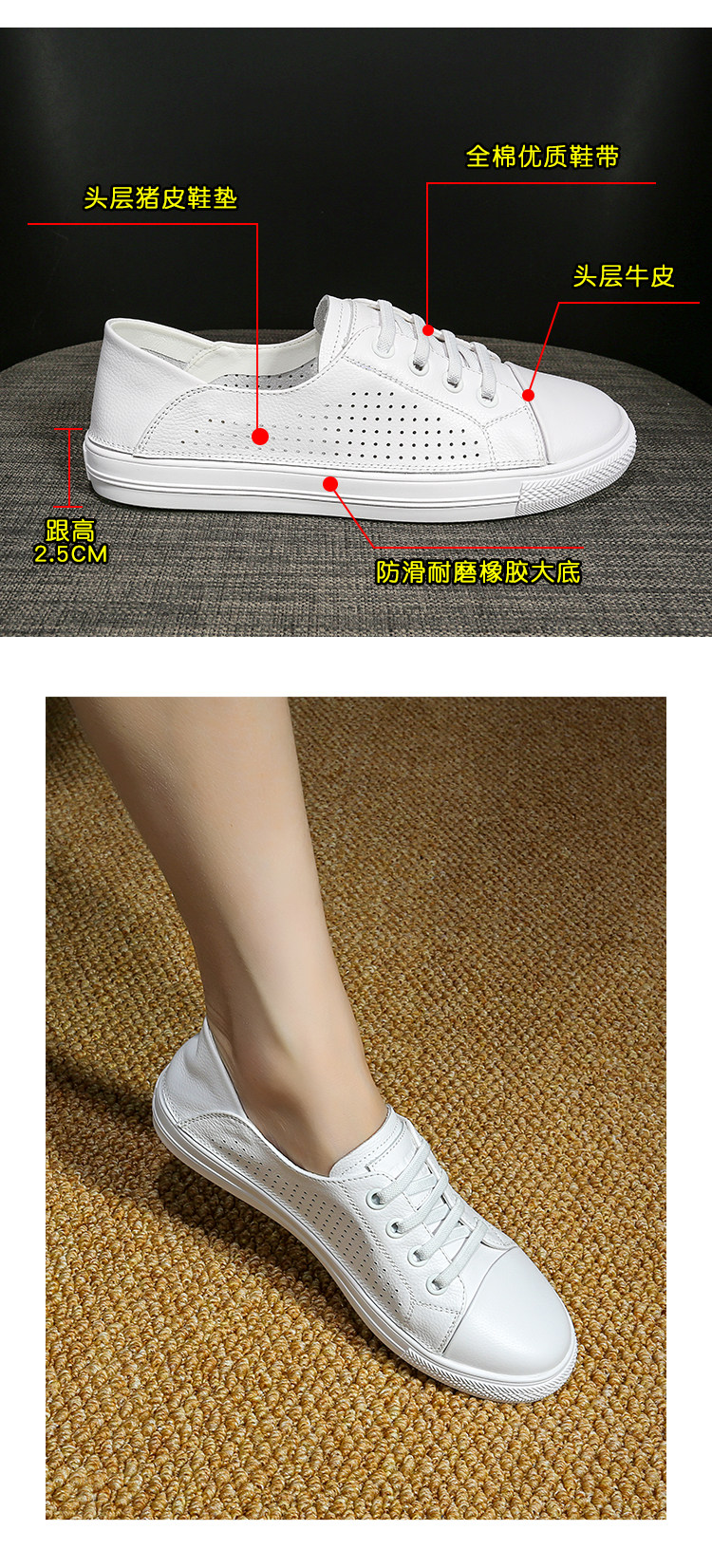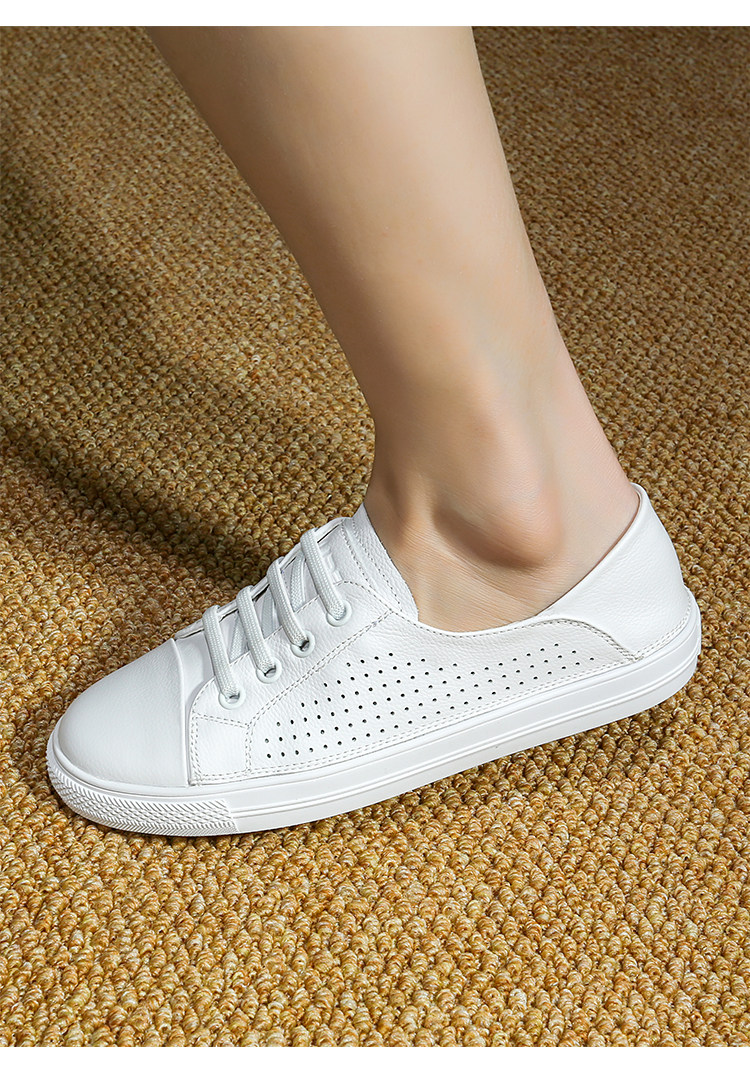 Hong Kong First-Layer Cowhide Hollow White Sneakers for Women, Summer Breathable 2026 Flat Casual Korean Style Sneakers, Two-Way Wear Single Shoes for Women