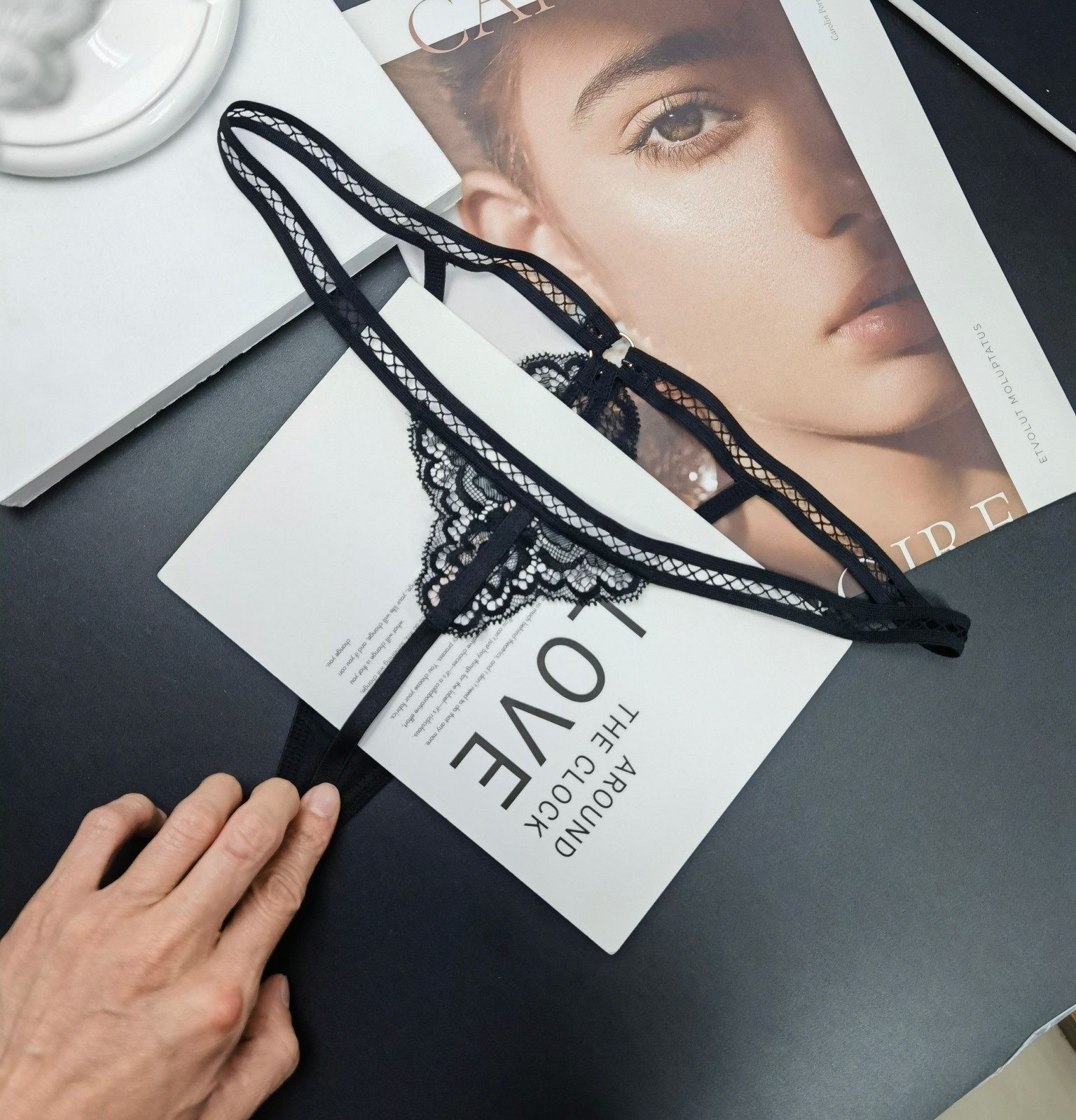 Light Luxury Sexy Underwear for Women, French Lace, Tempting and Hot, Hollow-Out Thong, Low-Waist, Thin Straps, Leg-Lengthening Shorts