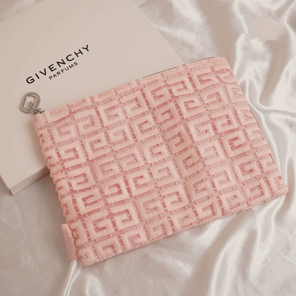 Givenchy Domestic/Big-Name Nude Pink Lace Cosmetic Bag Simple Cotton and Linen Fashion Storage Bag Portable Hand-Held