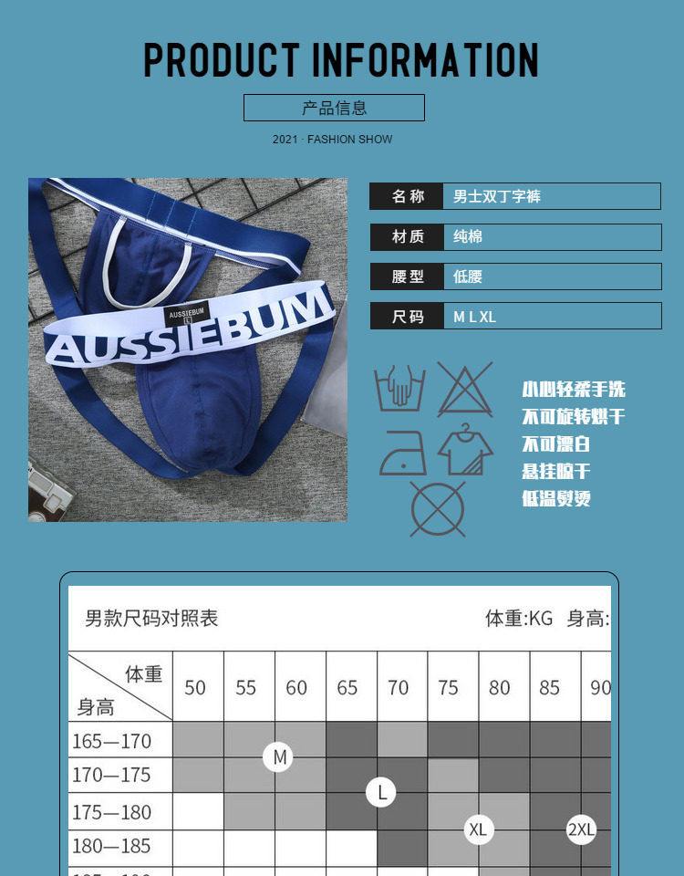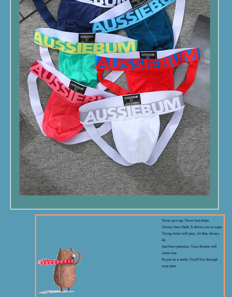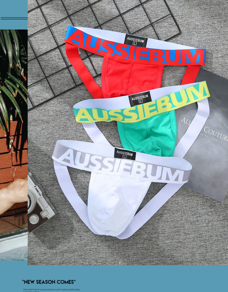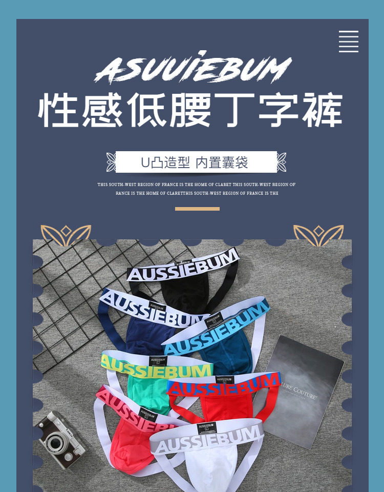New Men's Low-Rise Sexy Pure Cotton Underwear Seamless Butt-Lifting U-Convex Erotic Double Thong Pouch Auss Rainbow g