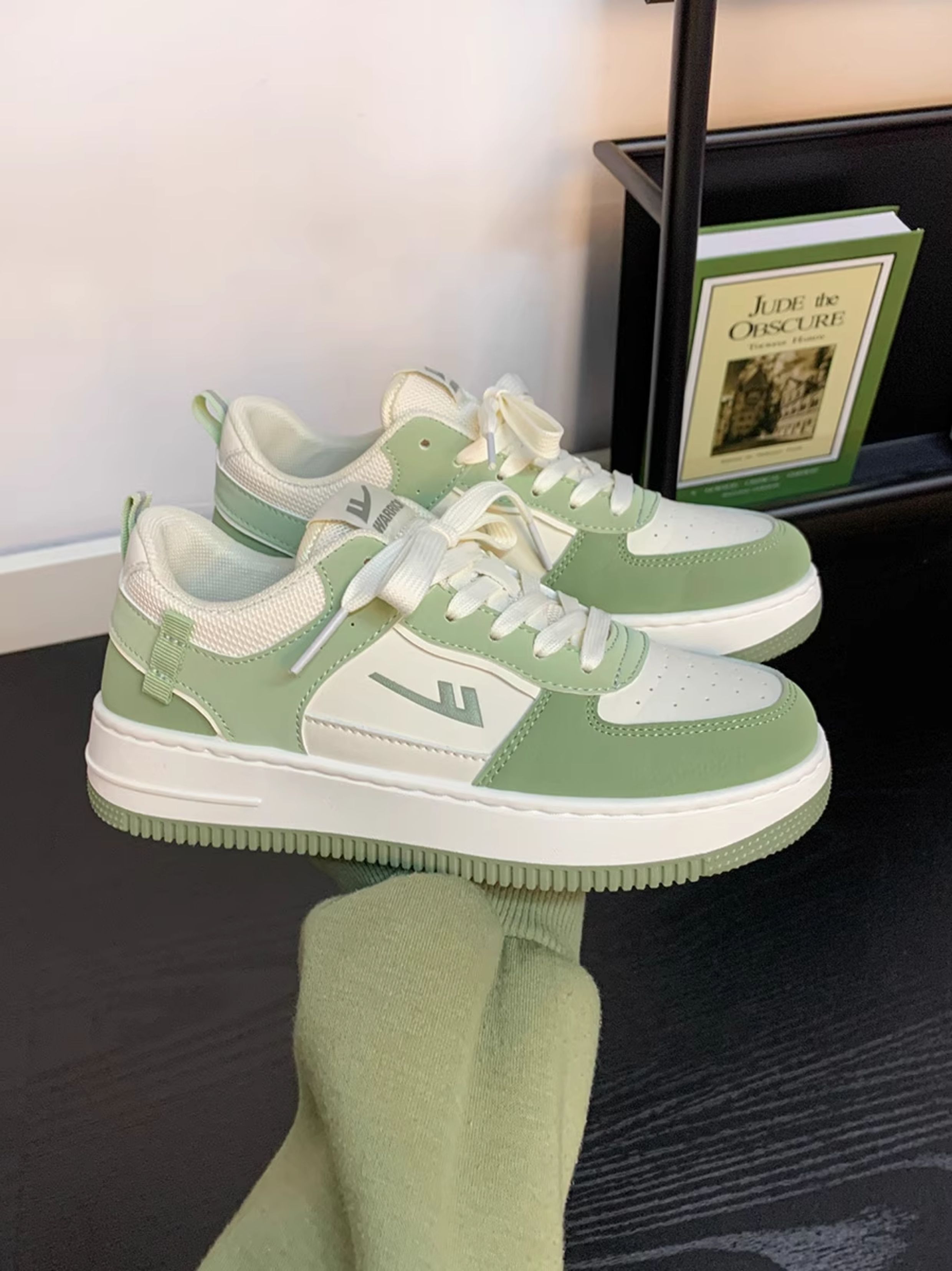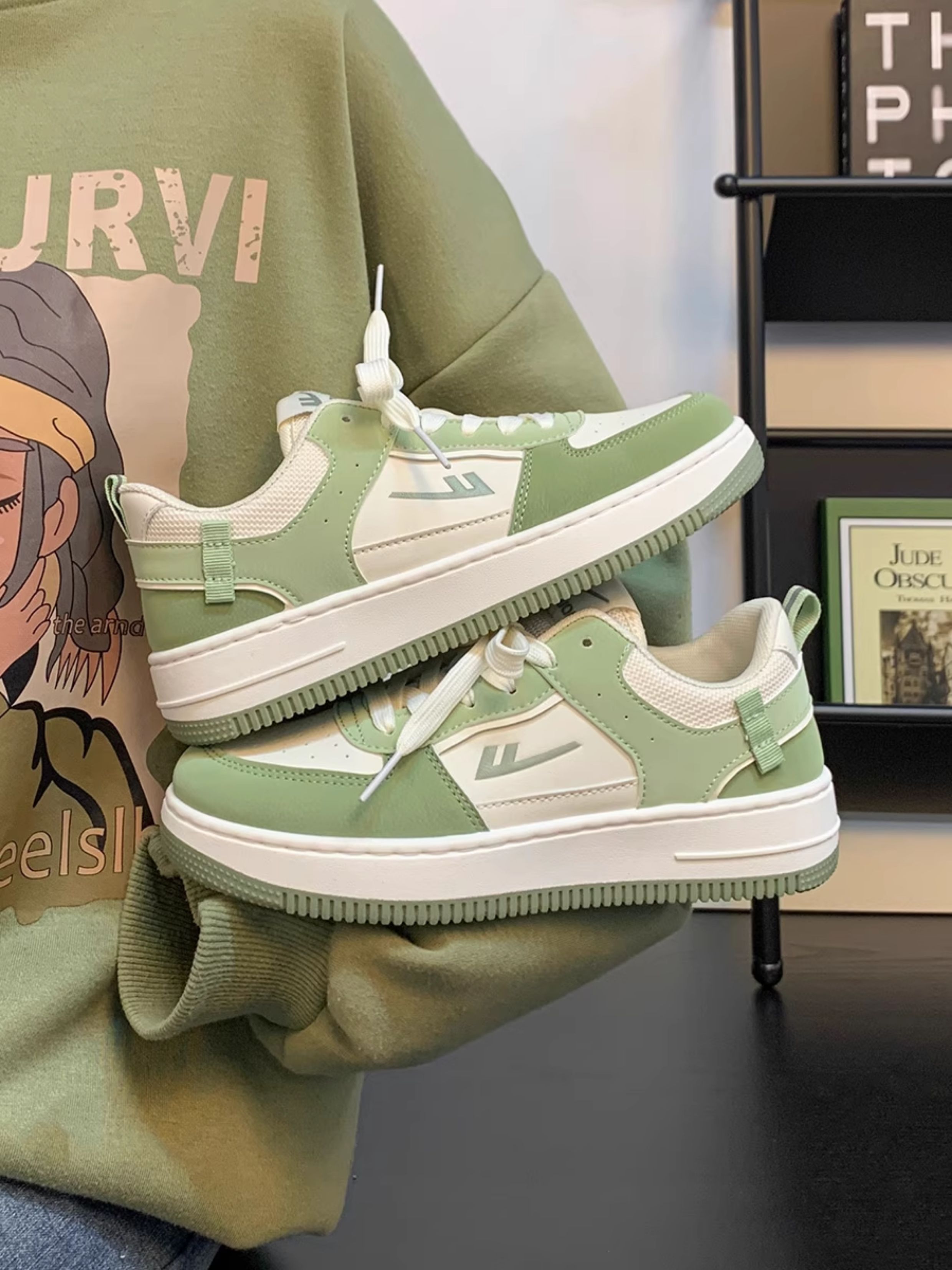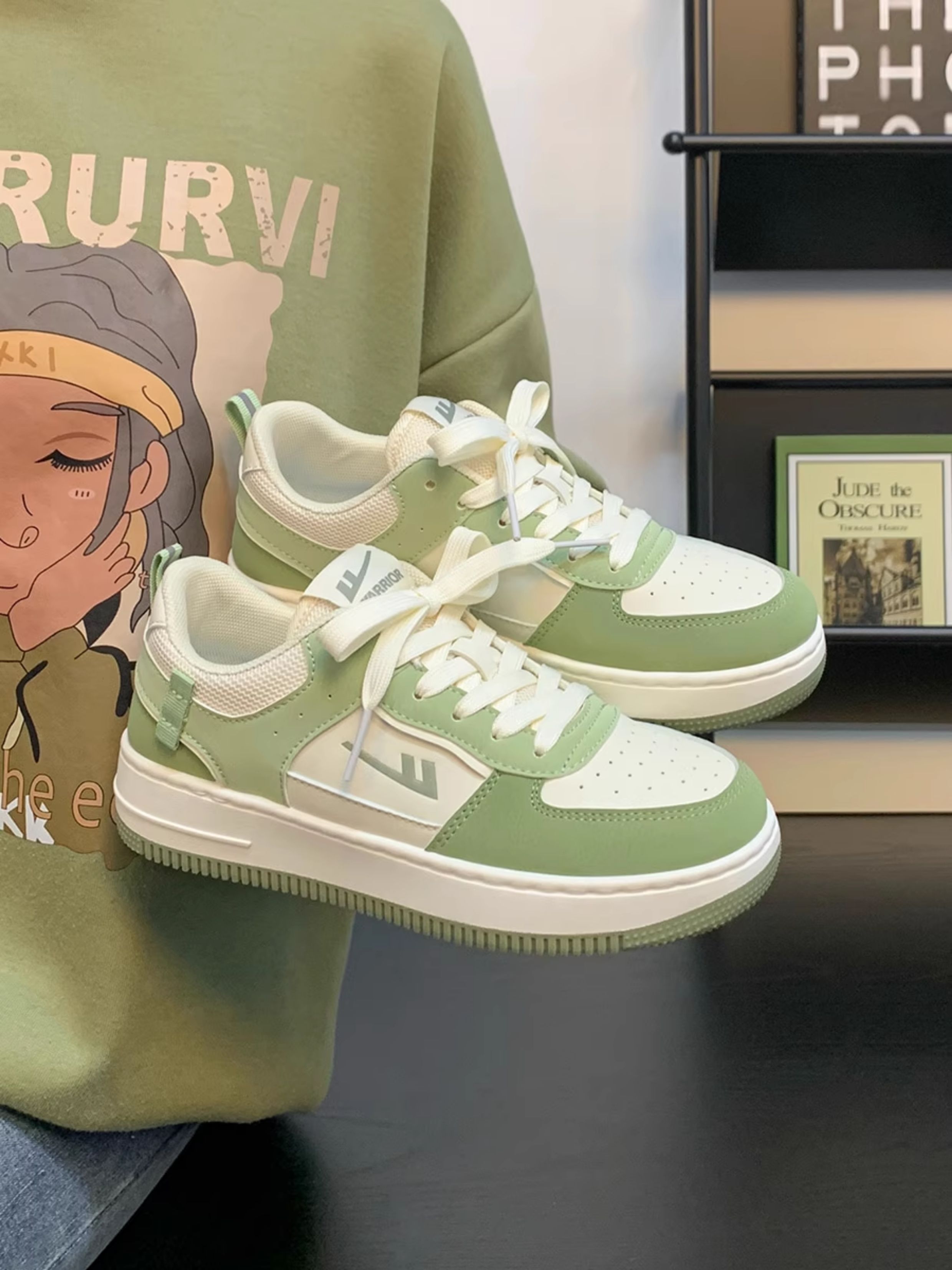 Pull-Back Matcha Green Shoes for Women, Autumn 2025 New Versatile Popular White Shoes, Niche Couple Student Sneakers