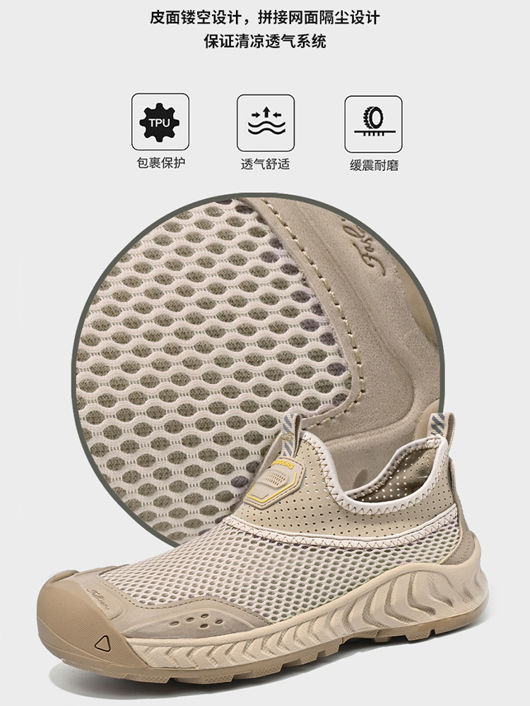 German Camel Dynamic Men's Shoes, New Summer Mesh Shoes, Men's Sports and Leisure Mesh Shoes, Hollow Breathable Hole Shoes