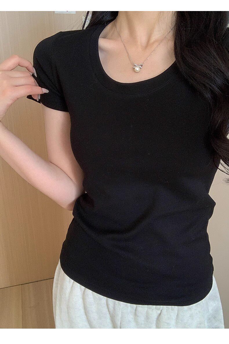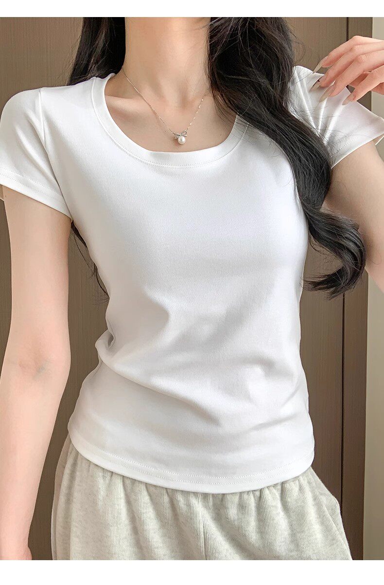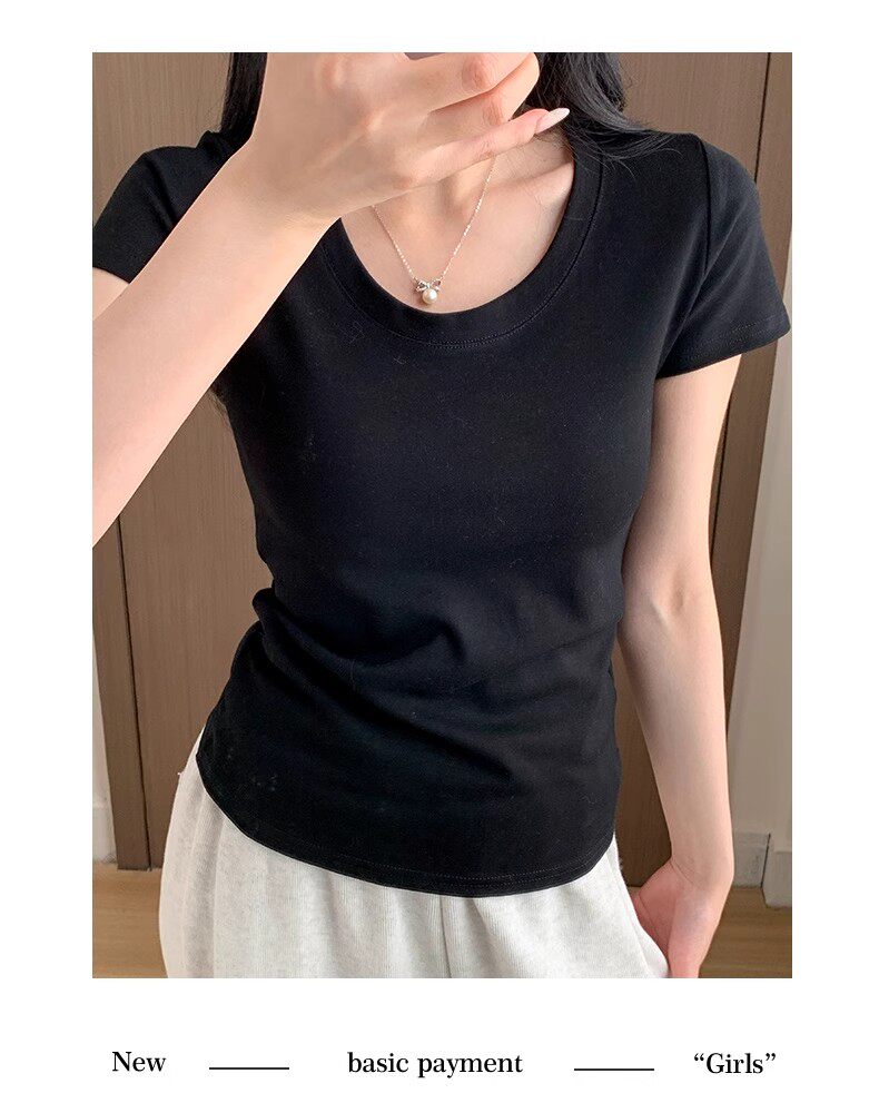 2026 Summer New Style Women's T-Shirt Short Sleeve Slim Fit U-Neck Pure Cotton Design Niche Versatile Basic Top