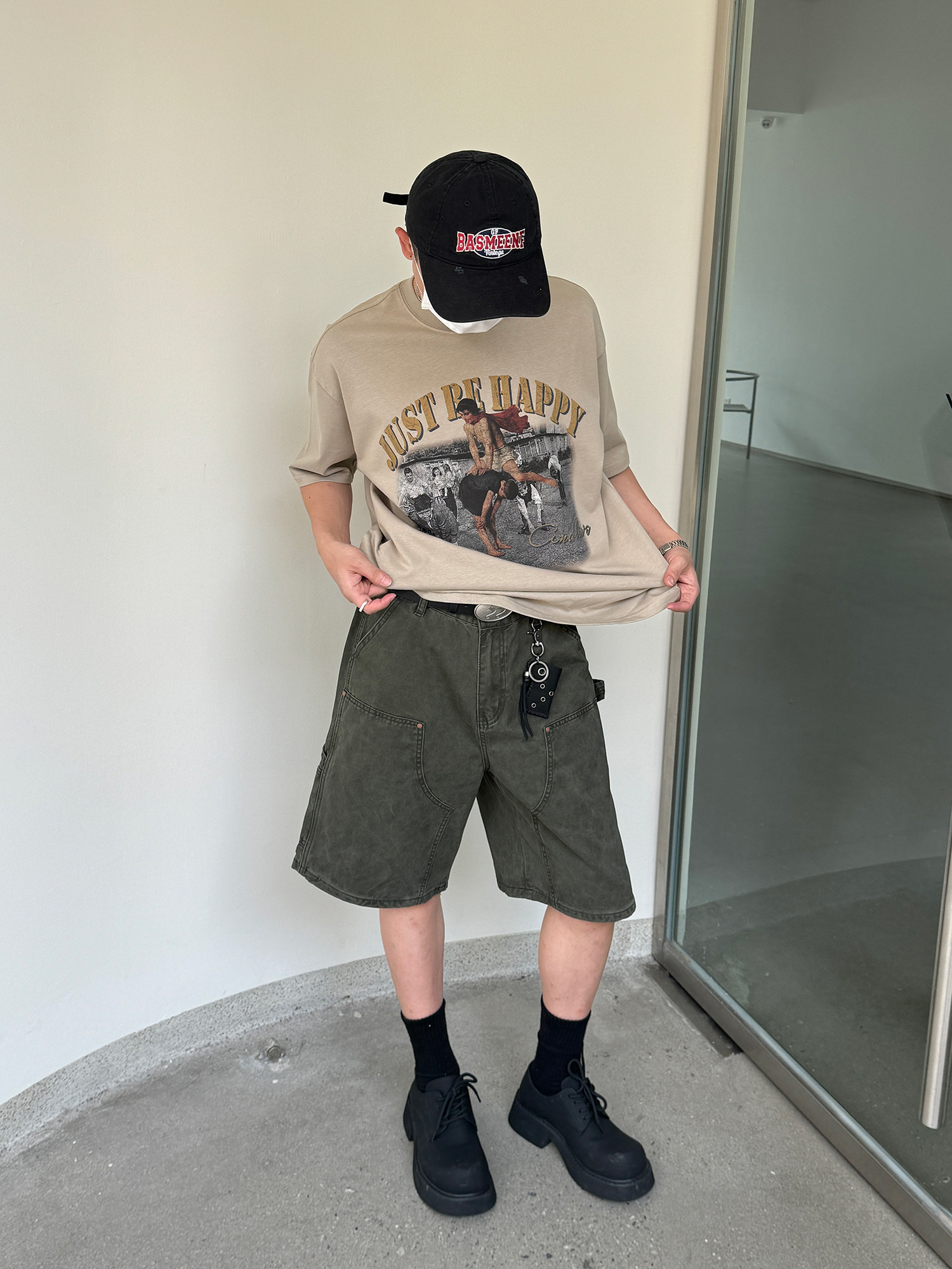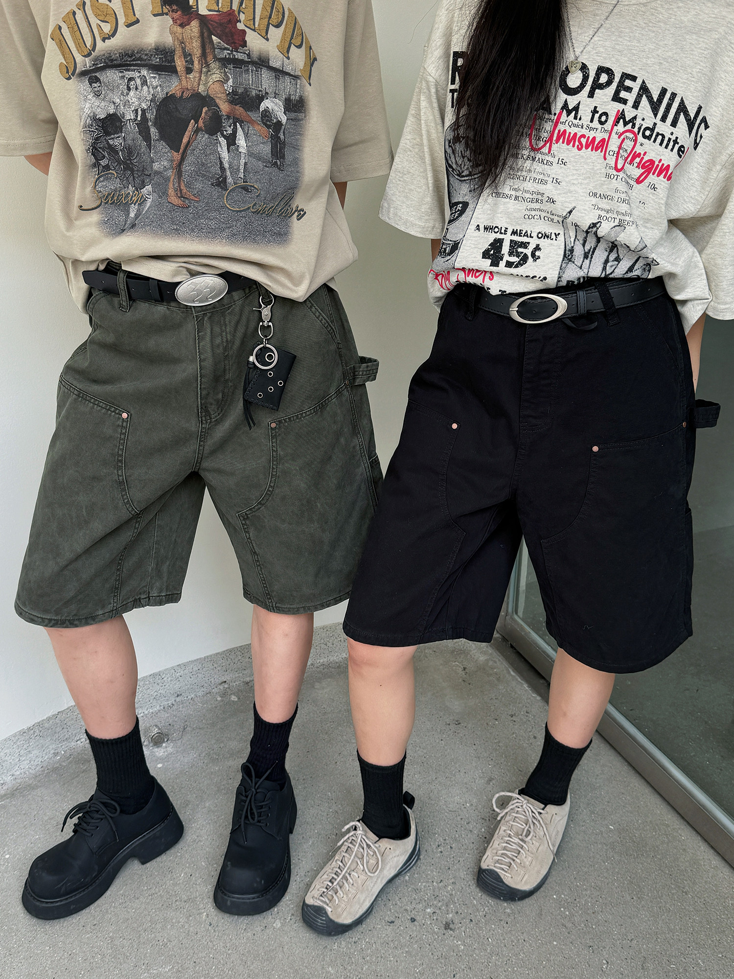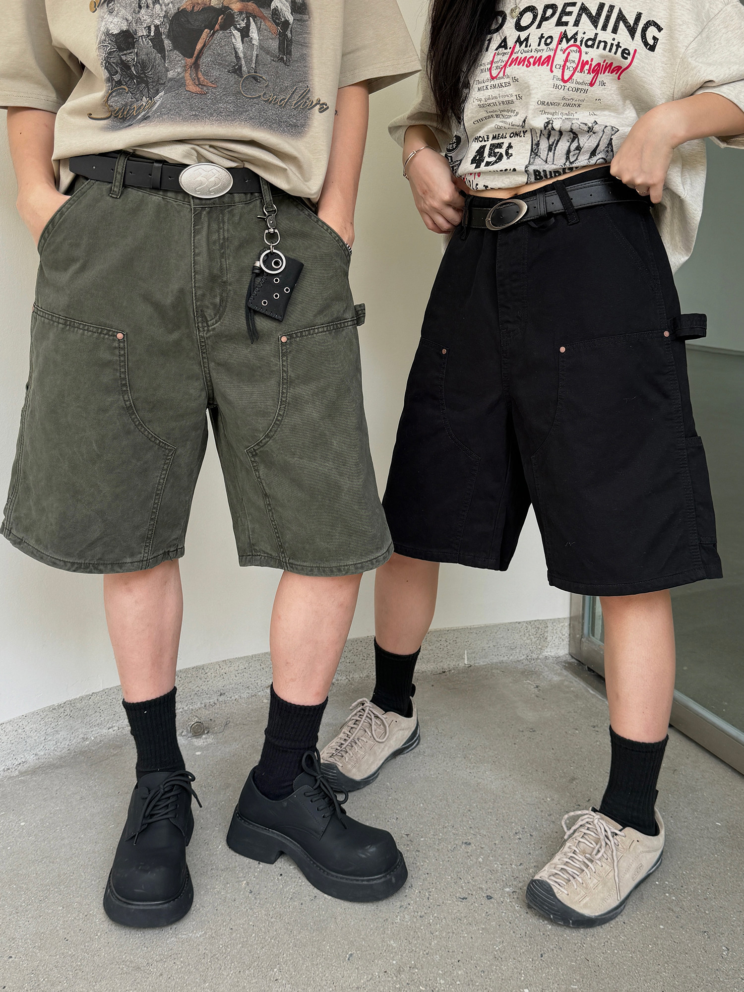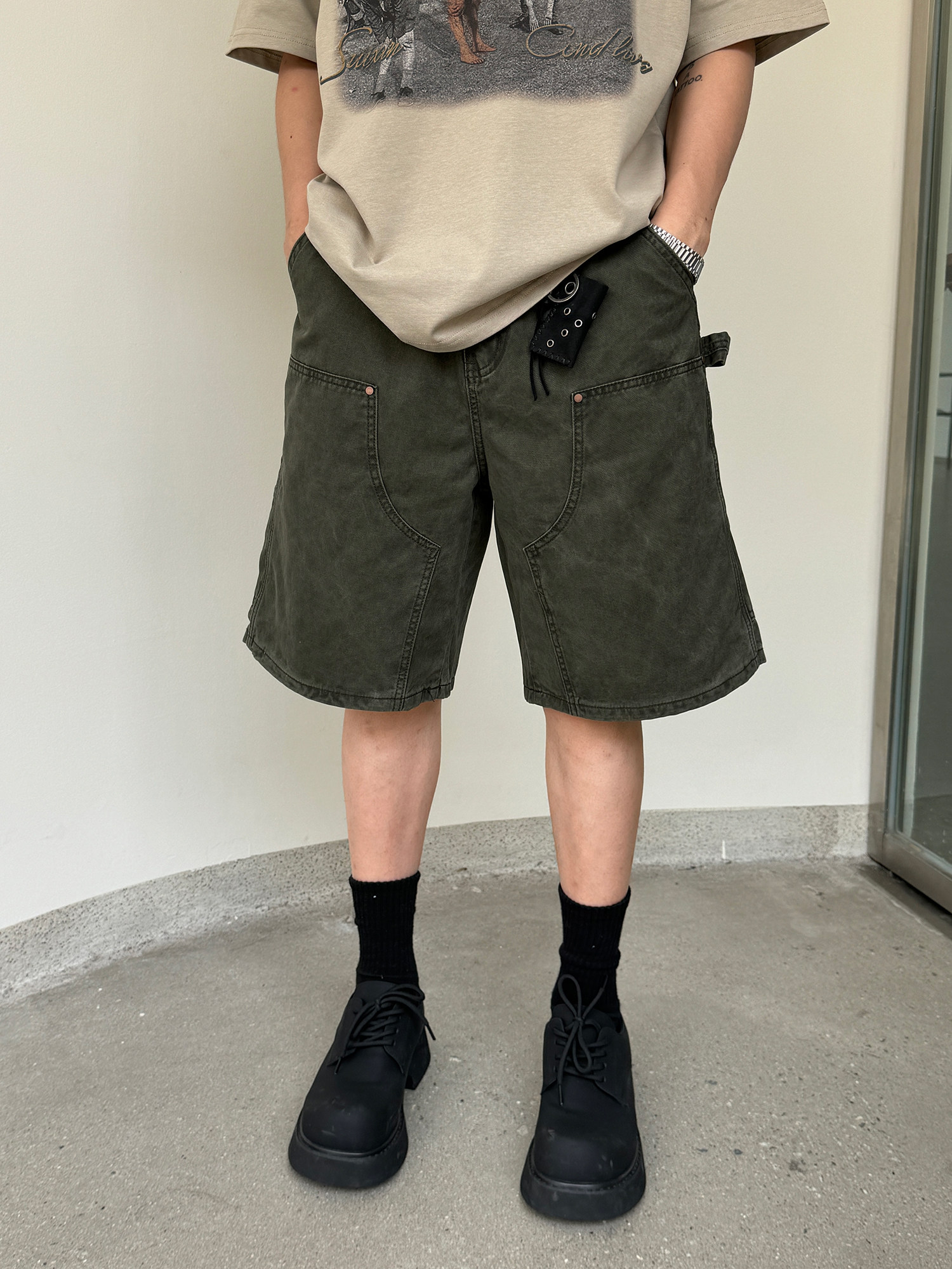 19Studio Wayneprince Washed Vintage Multi-Pocket Lumberjack Pants Workwear Loose Wide-Leg Casual Shorts