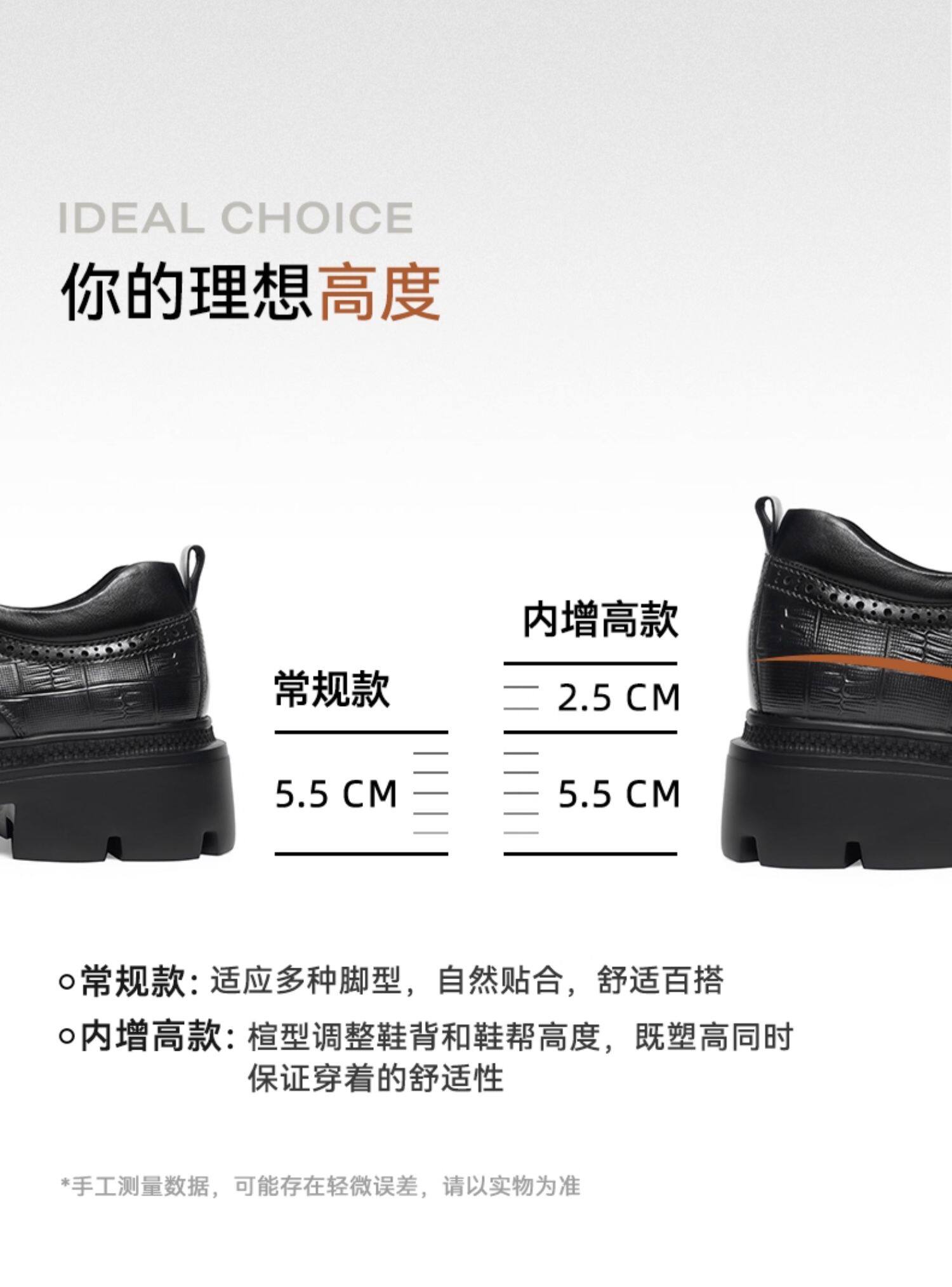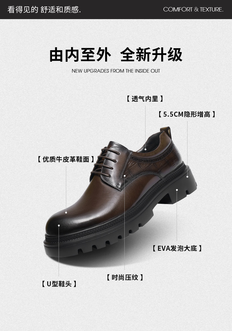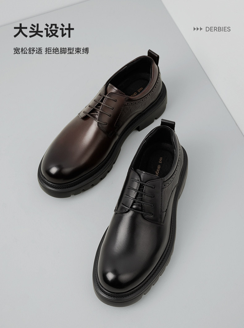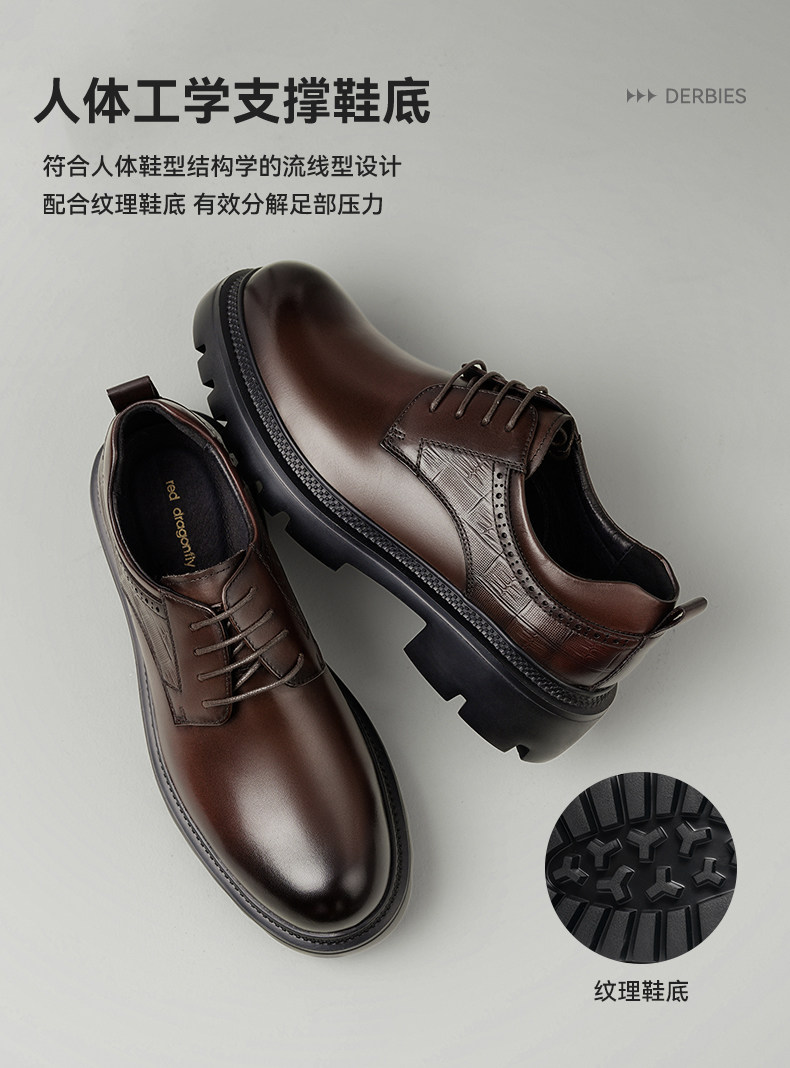 Red Dragonfly Men's Leather Shoes New Style Men's Shoes Thick-Soled Derby Shoes with Internal Height Increase Formal Leather Shoes Large Toe Wedding Groom Shoes