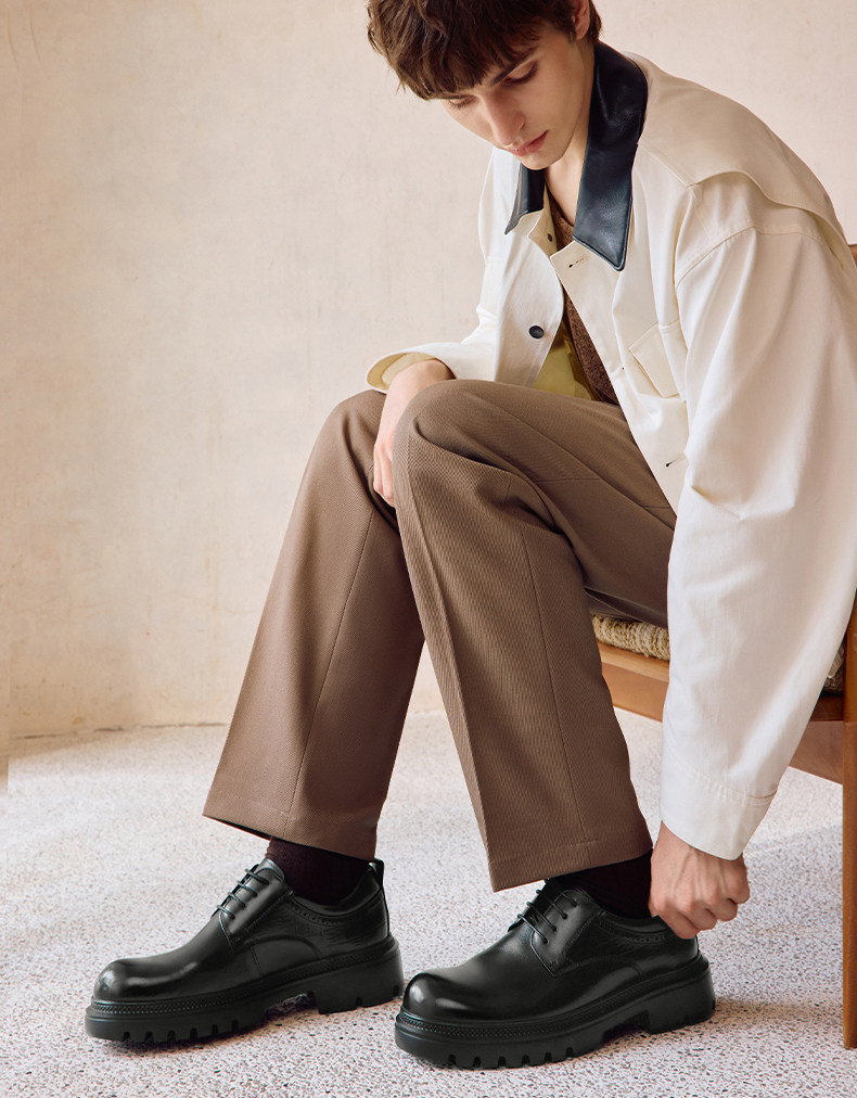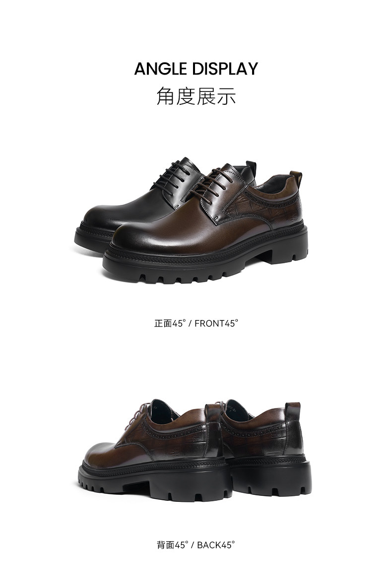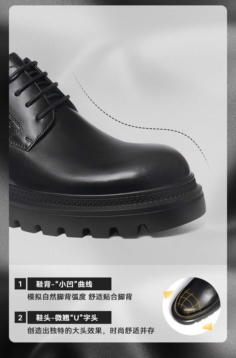 Red Dragonfly Men's Leather Shoes New Style Men's Shoes Thick-Soled Derby Shoes with Internal Height Increase Formal Leather Shoes Large Toe Wedding Groom Shoes