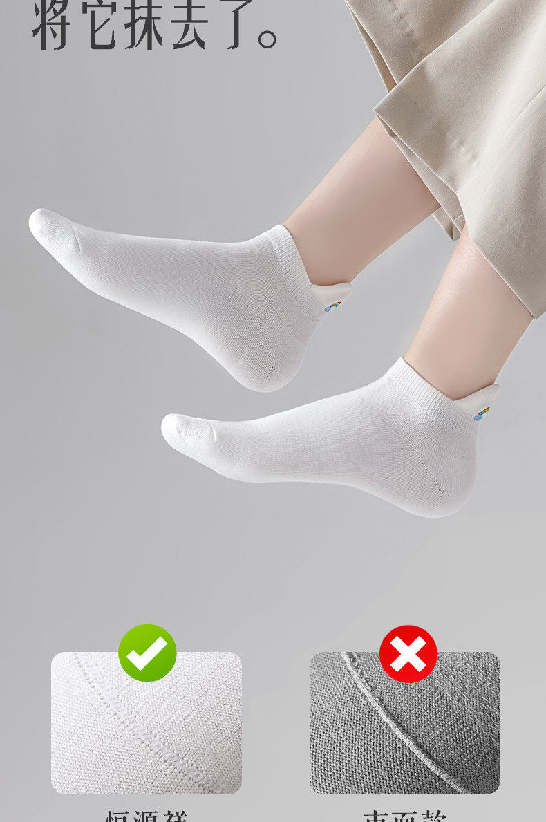 Hengyuanxiang Women's Summer Thin Pure Cotton Seamless No-Show Socks, Antibacterial and Breathable White Short Socks for Summer