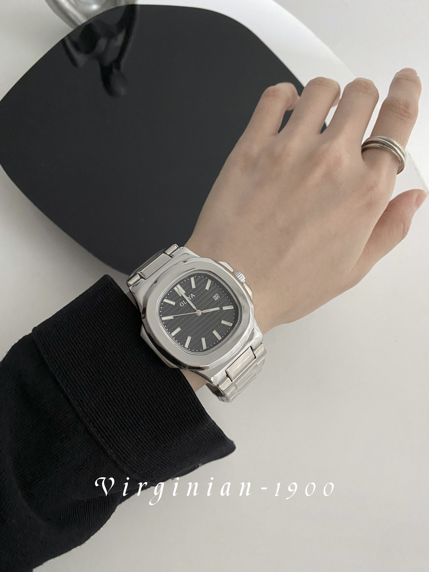 【Virginian1900】Square Nautilus Simple and Stylish Luminous Calendar Couple's Watch for Men and Women