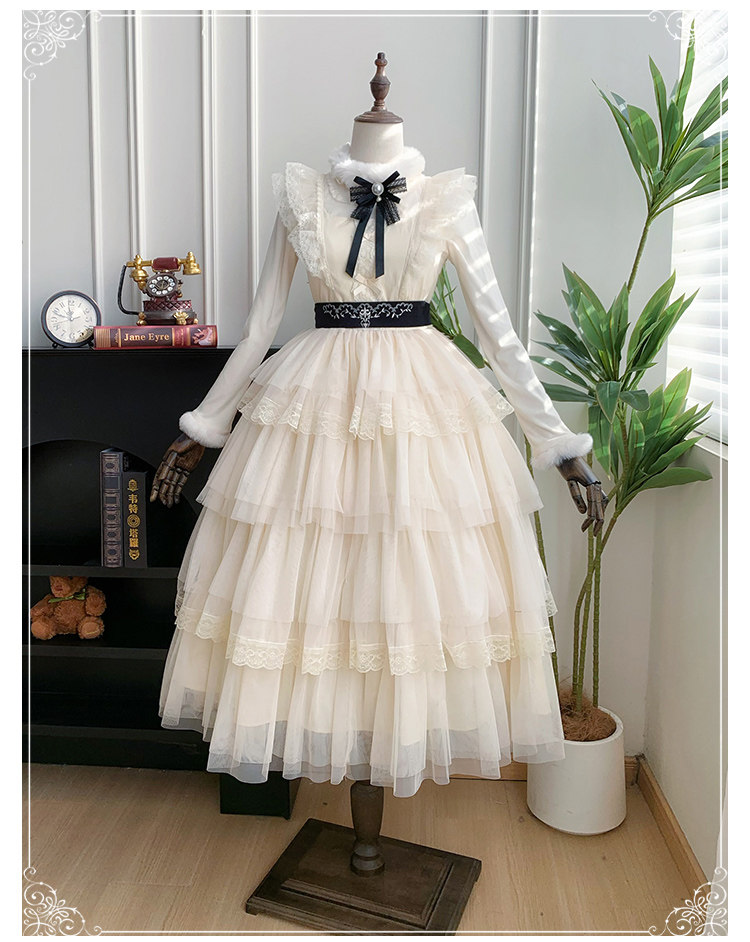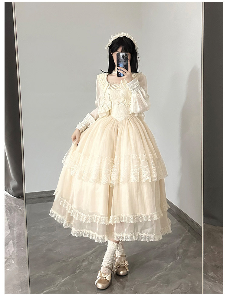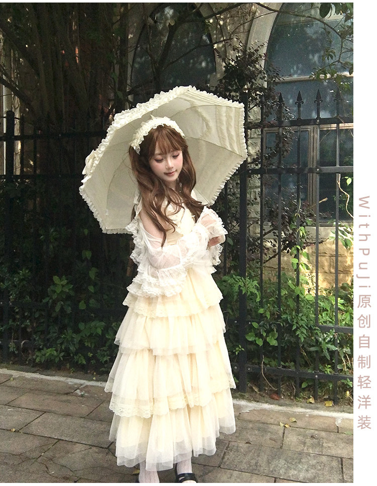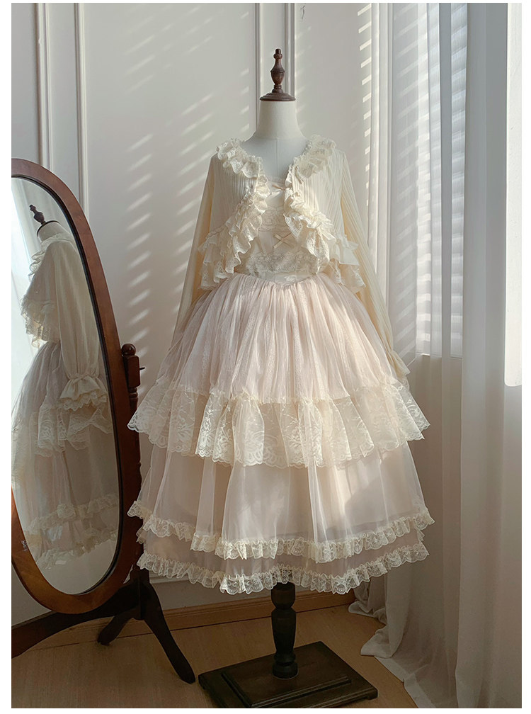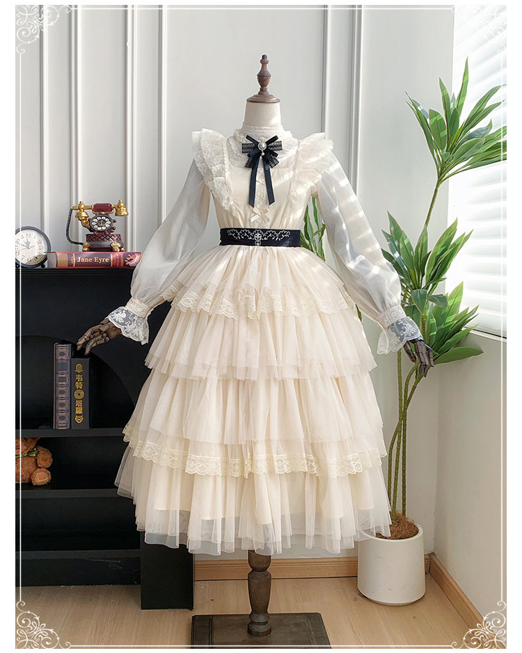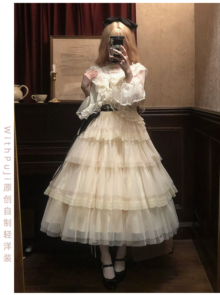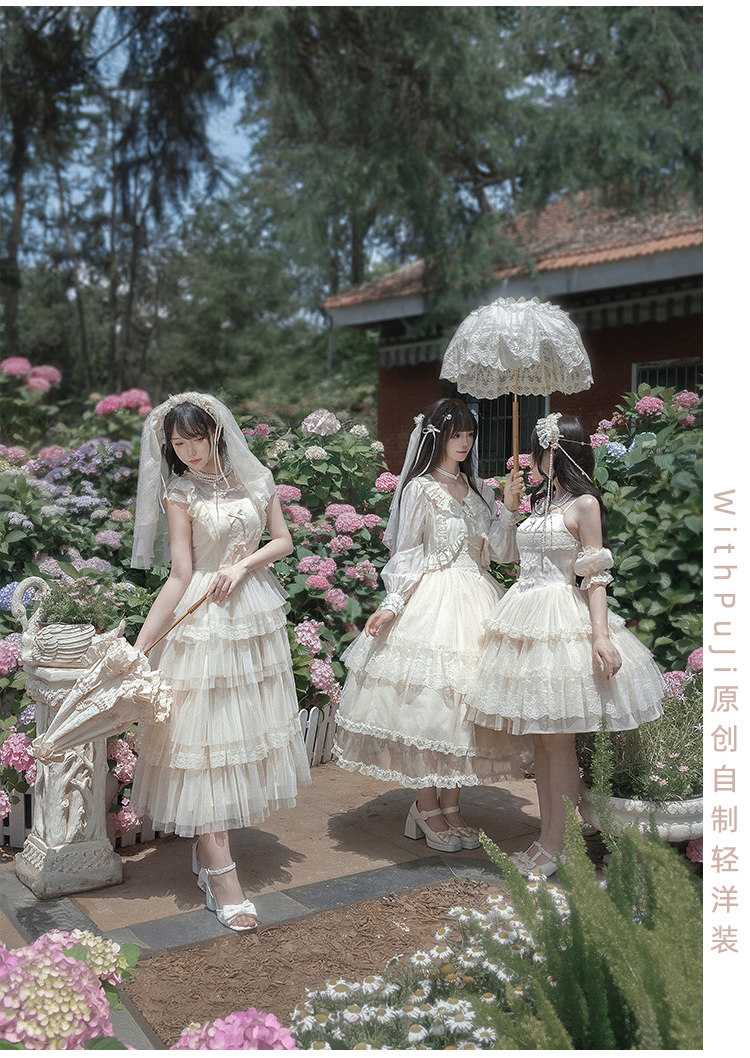 【Ivory Tower】Withpuji Original Design Cla Dreamy Large Skirt with Tulle Op/Jsk Three-Piece Lolita Dress