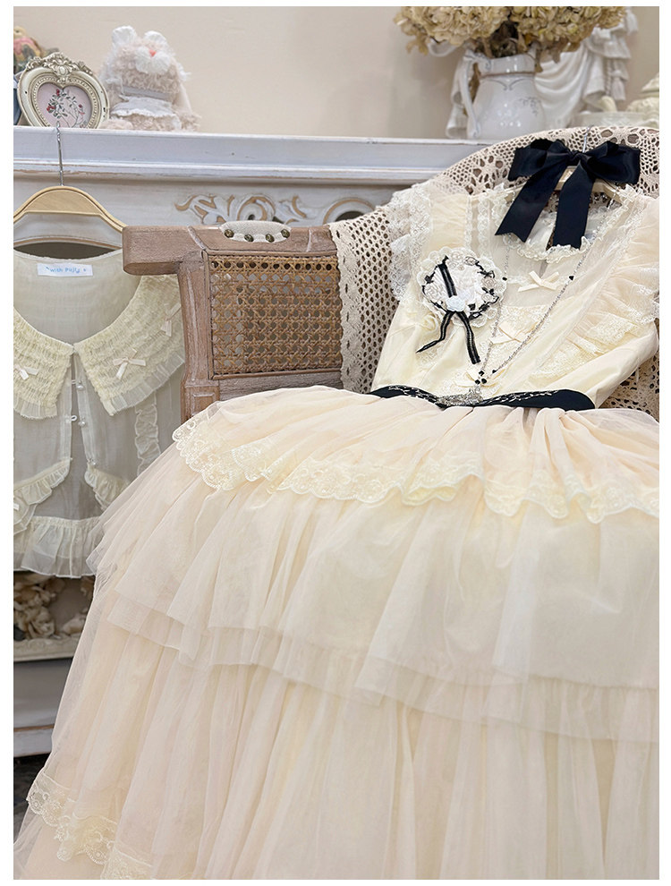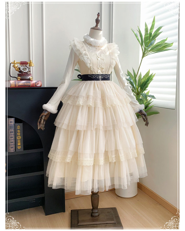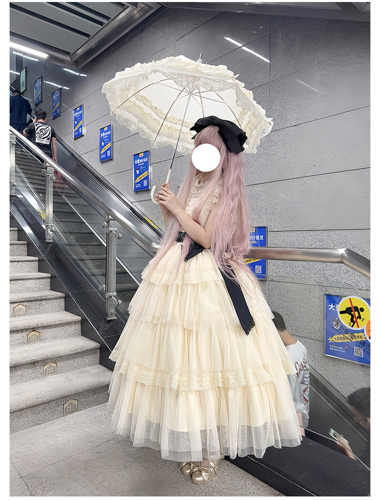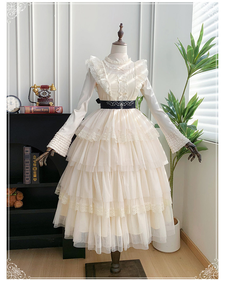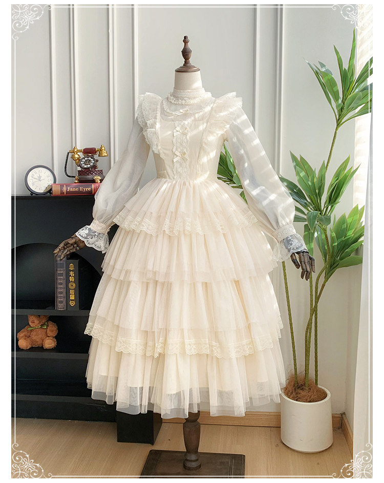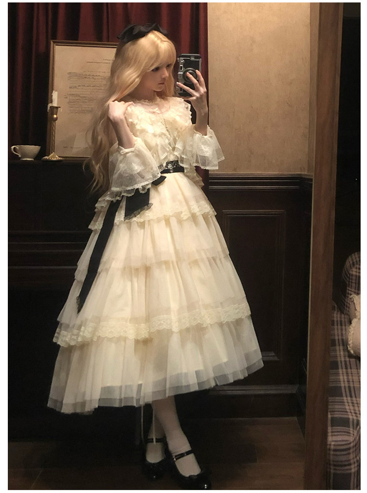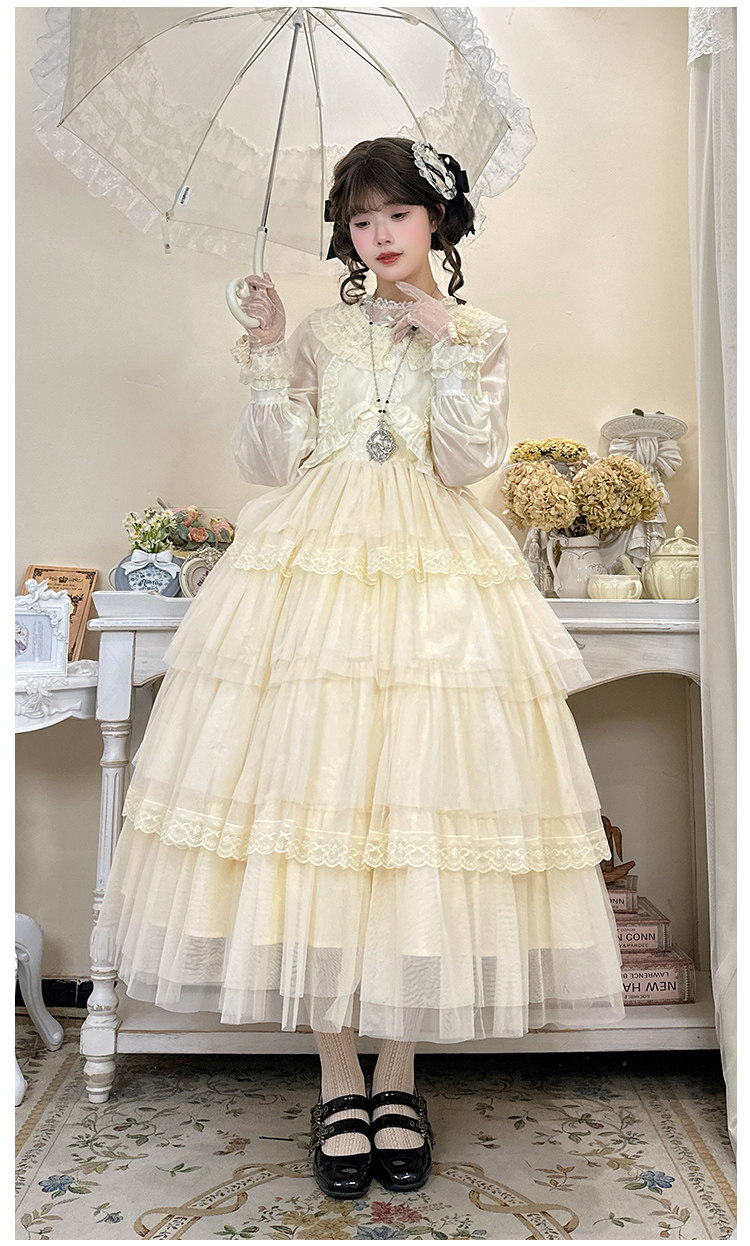 【Ivory Tower】Withpuji Original Design Cla Dreamy Large Skirt with Tulle Op/Jsk Three-Piece Lolita Dress
