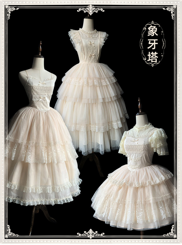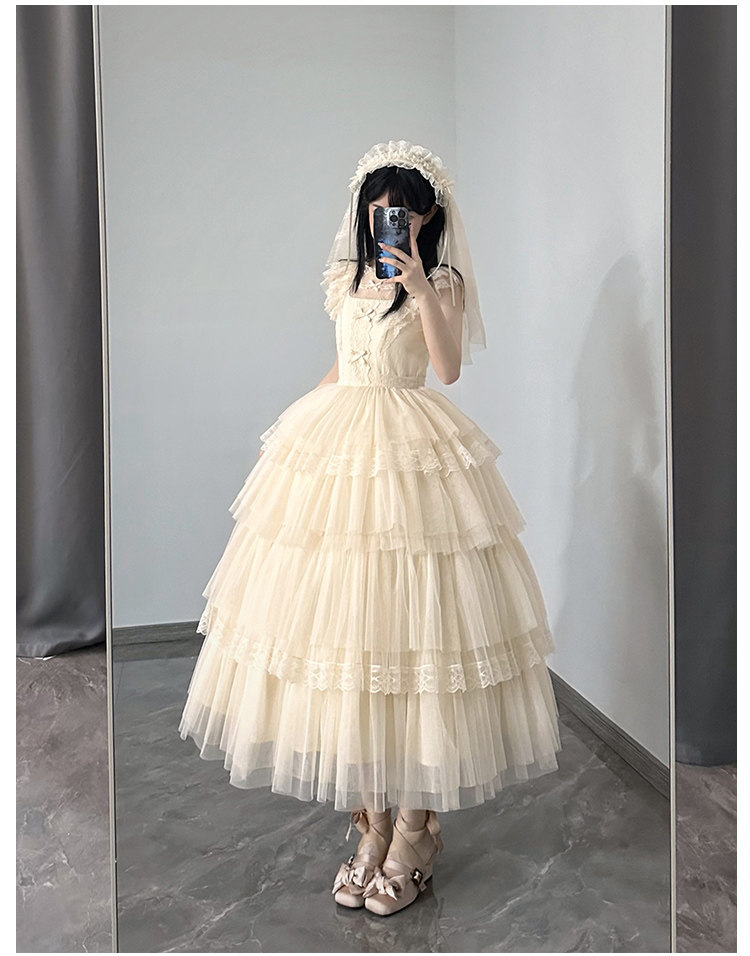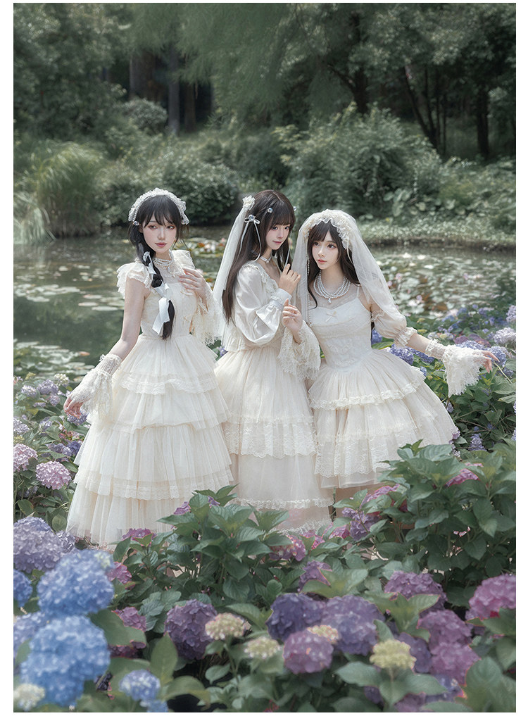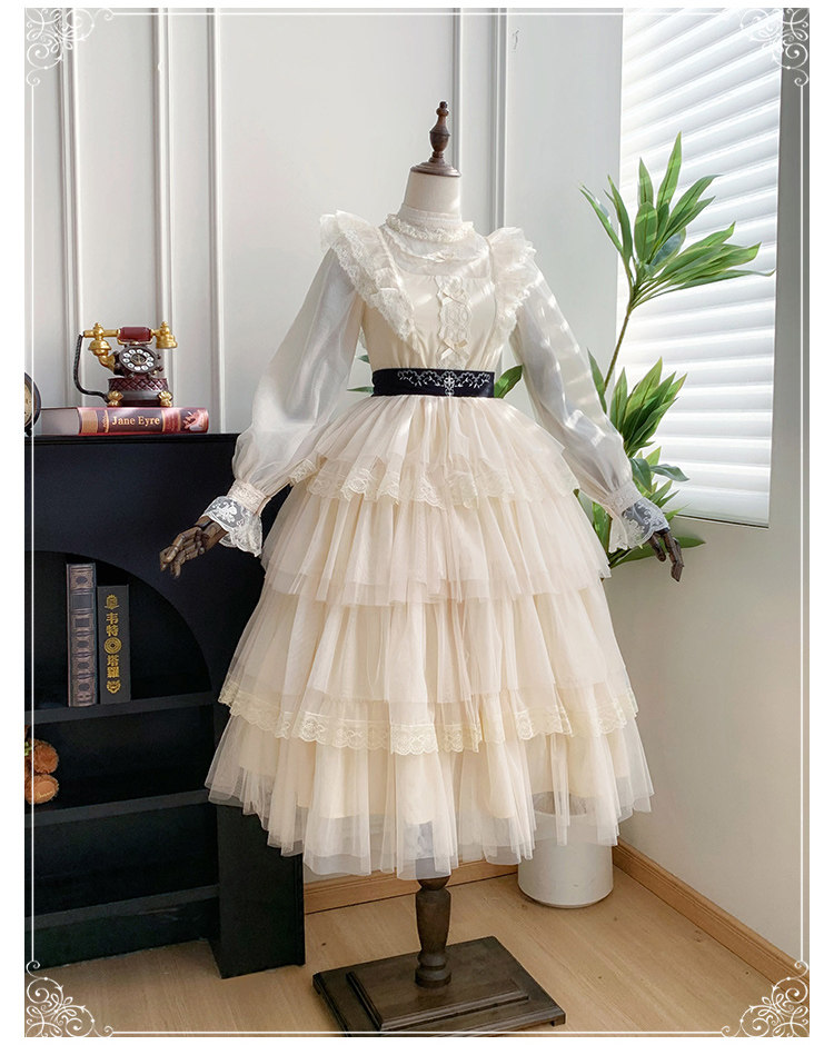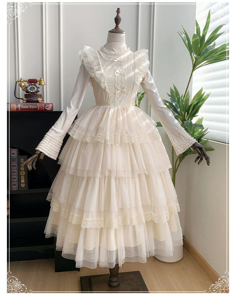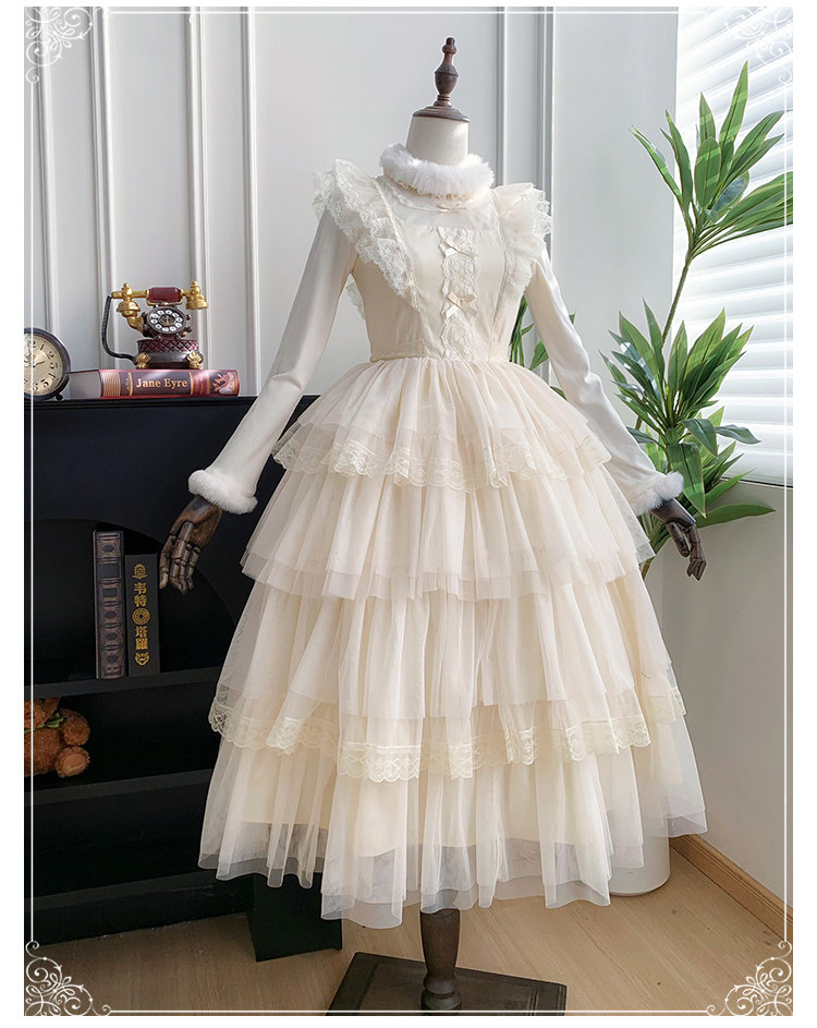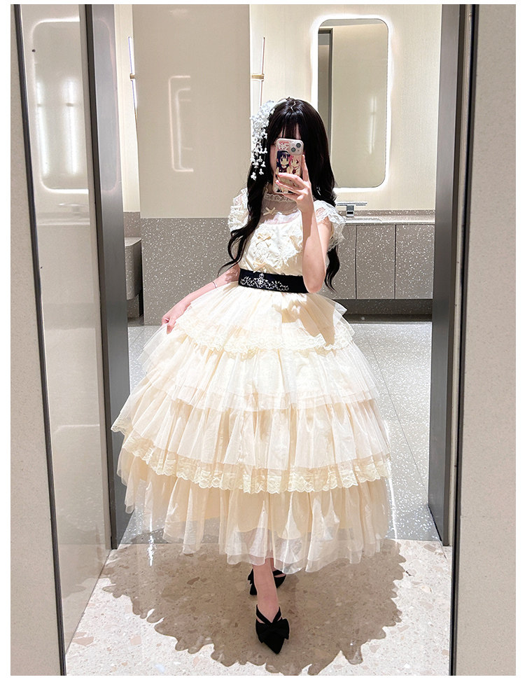 【Ivory Tower】Withpuji Original Design Cla Dreamy Large Skirt with Tulle Op/Jsk Three-Piece Lolita Dress