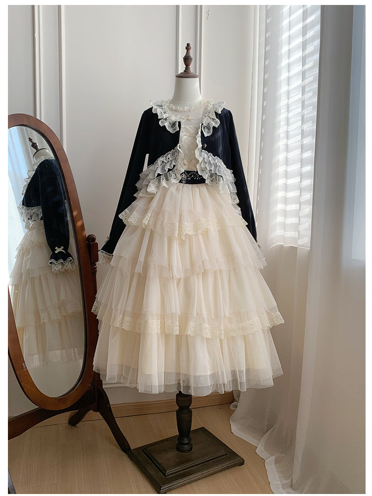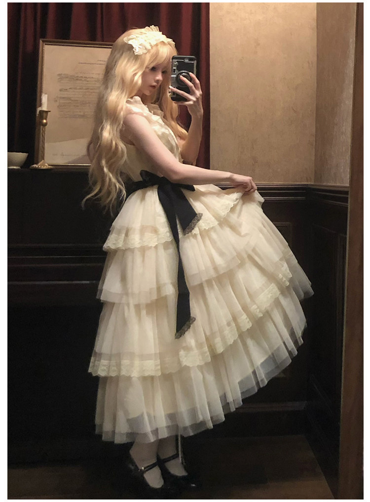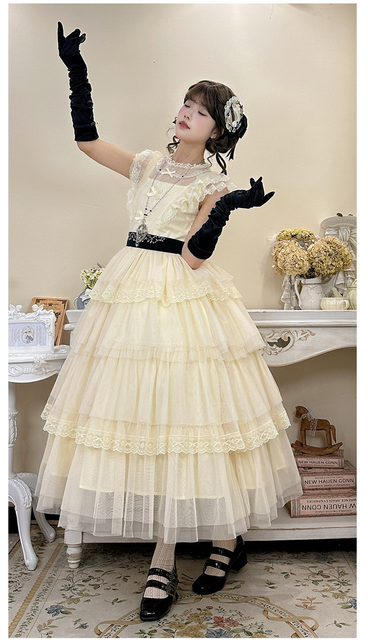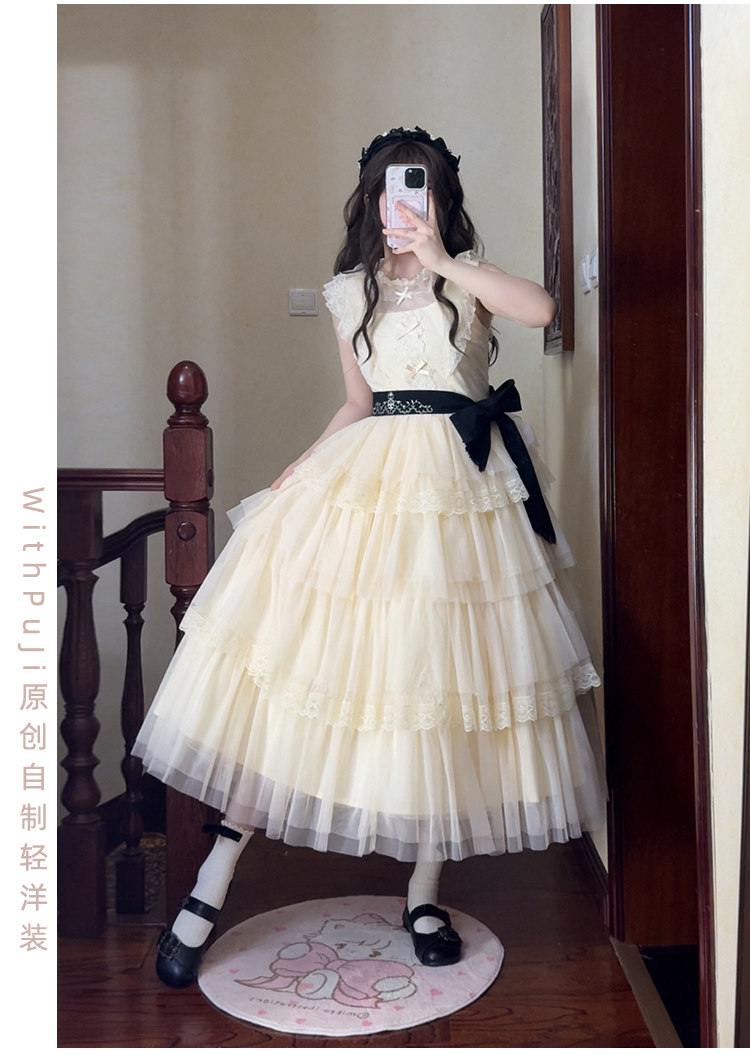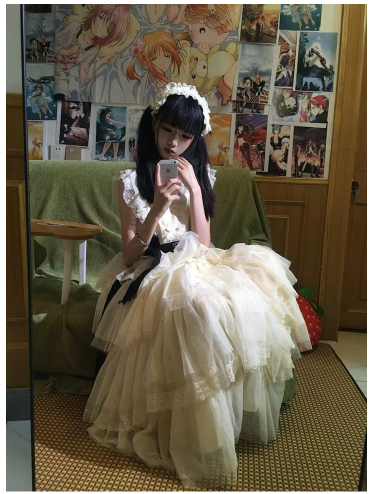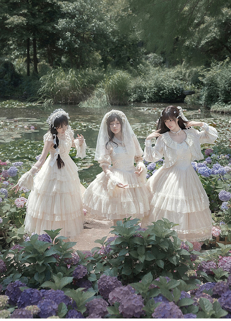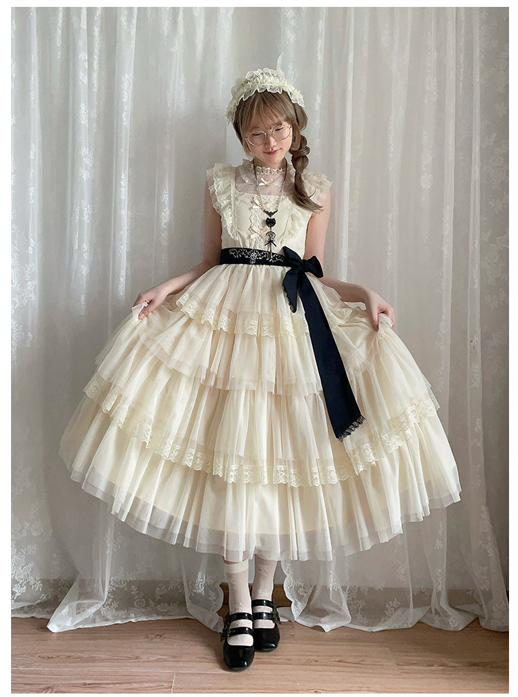 【Ivory Tower】Withpuji Original Design Cla Dreamy Large Skirt with Tulle Op/Jsk Three-Piece Lolita Dress