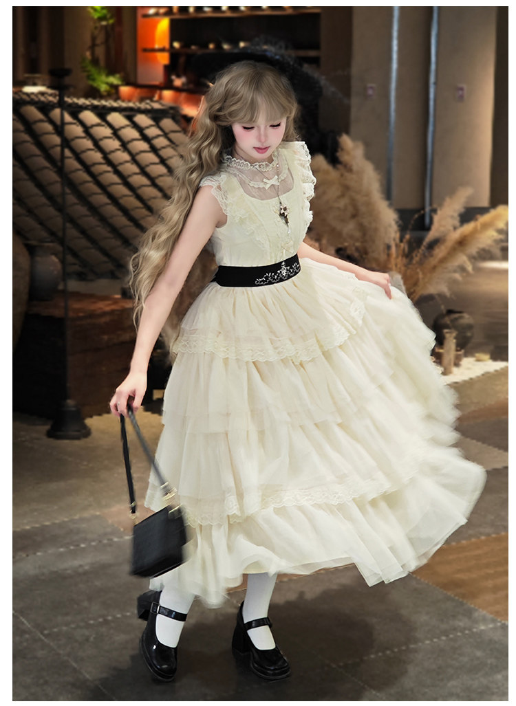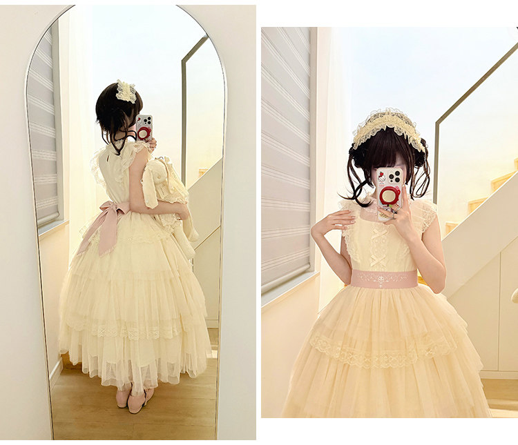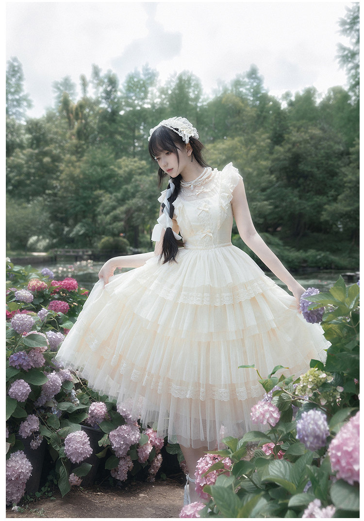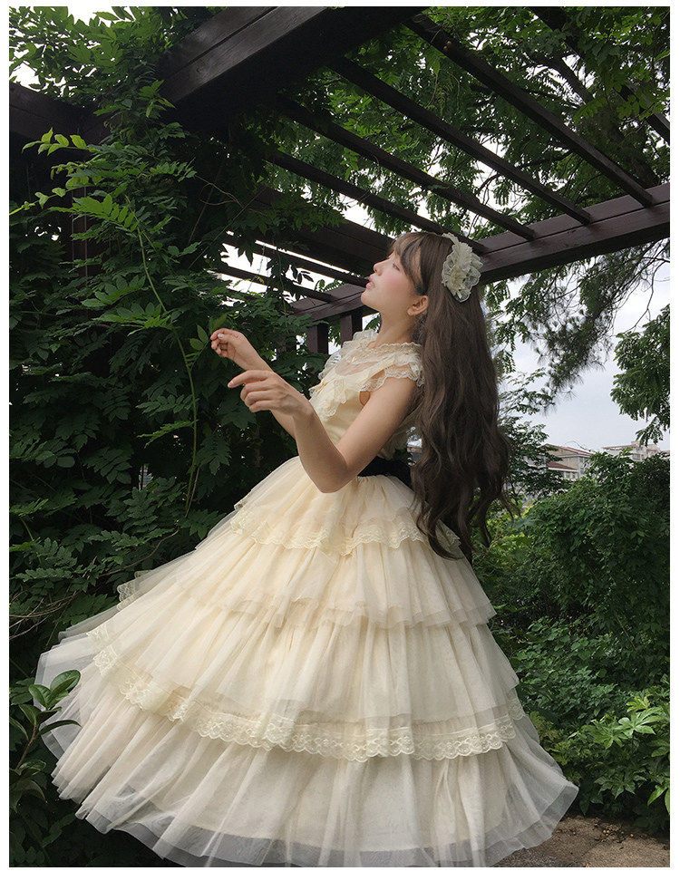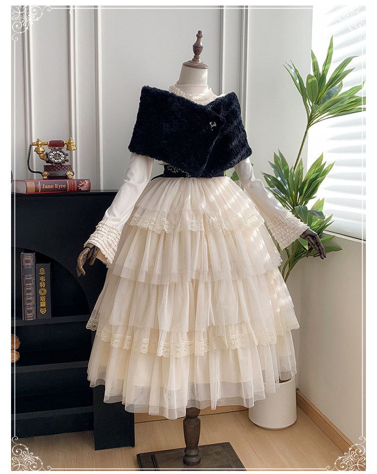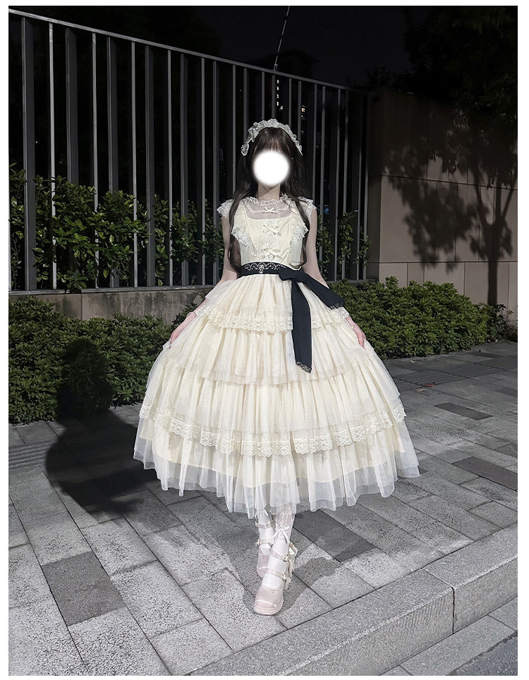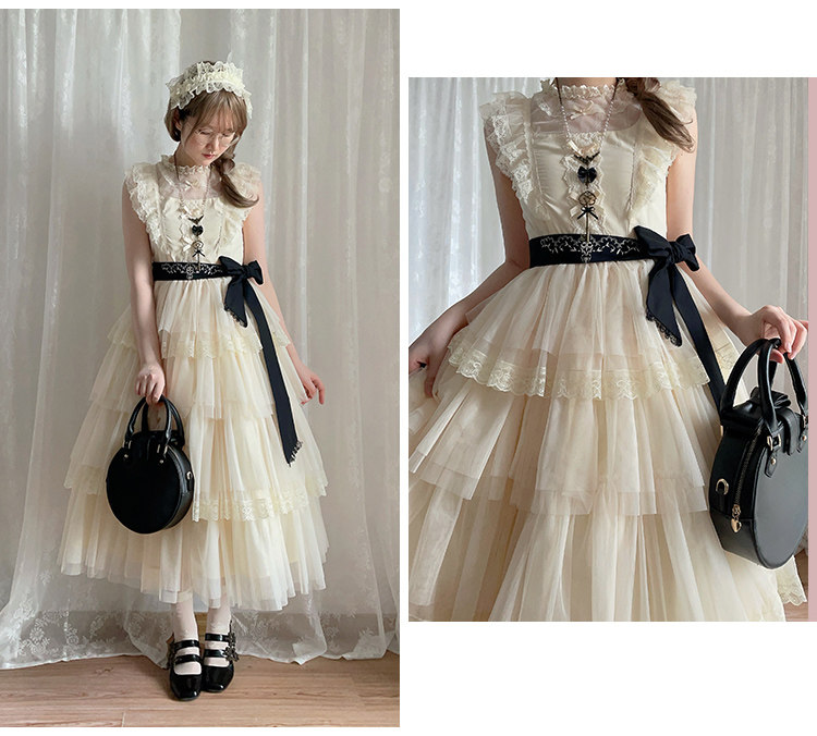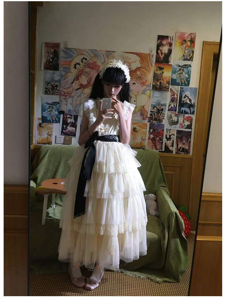 【Ivory Tower】Withpuji Original Design Cla Dreamy Large Skirt with Tulle Op/Jsk Three-Piece Lolita Dress