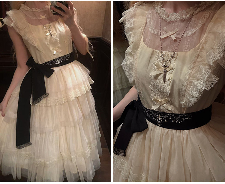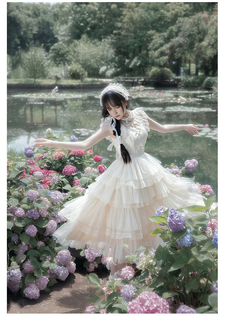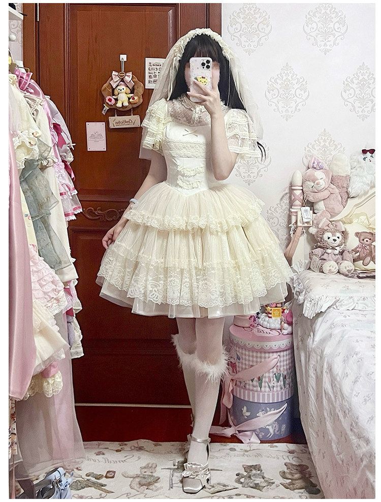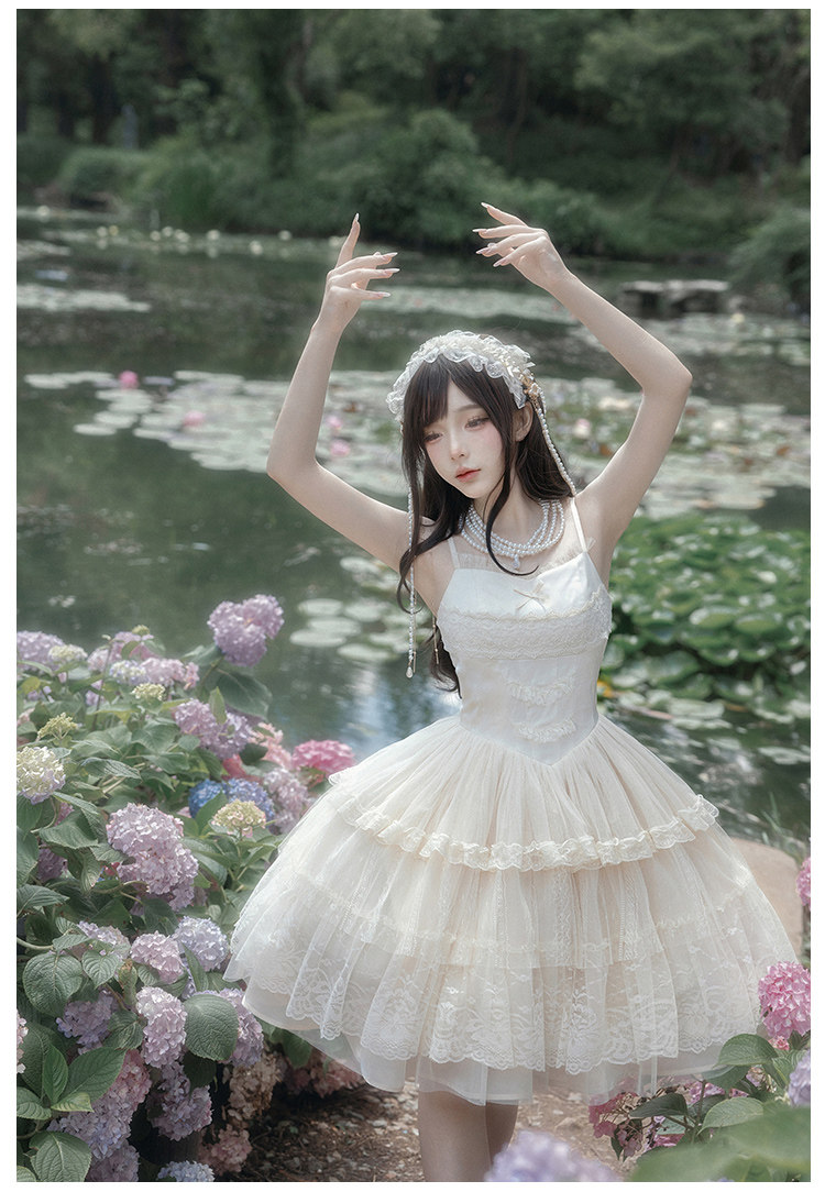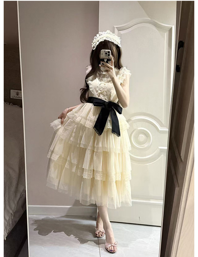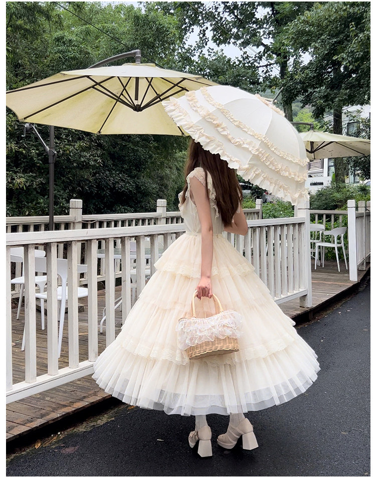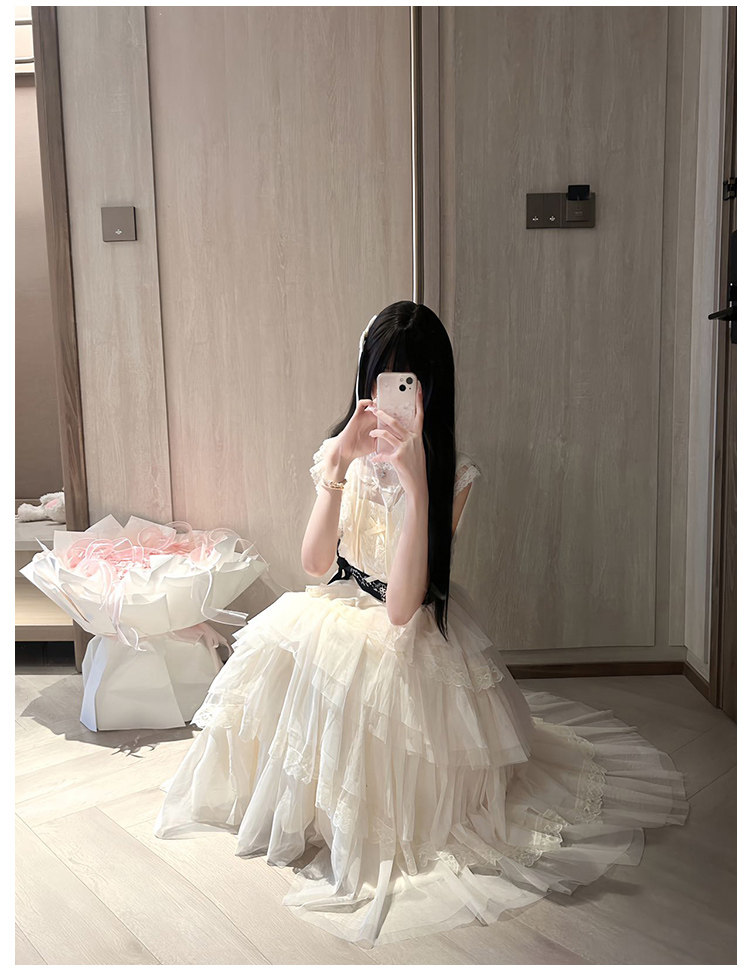 【Ivory Tower】Withpuji Original Design Cla Dreamy Large Skirt with Tulle Op/Jsk Three-Piece Lolita Dress