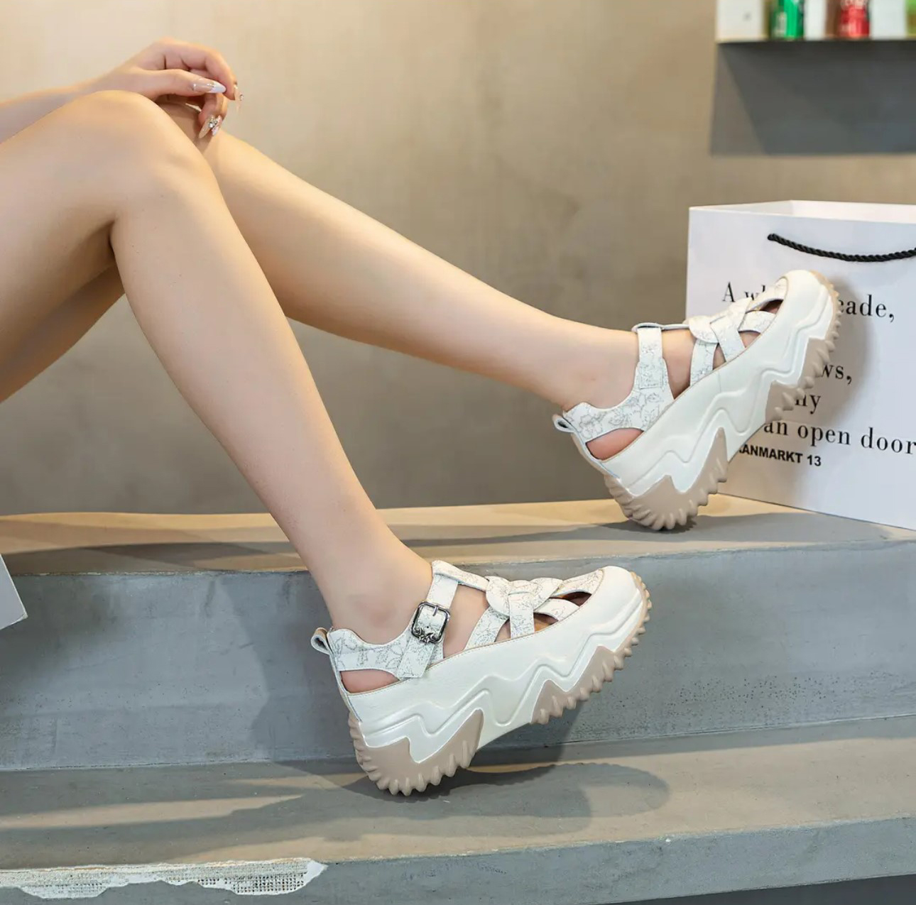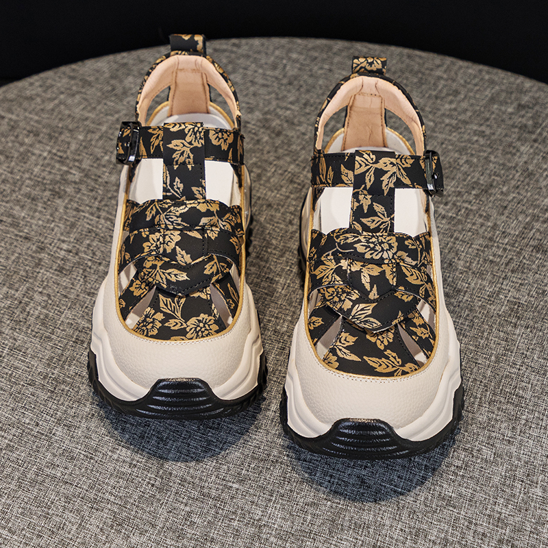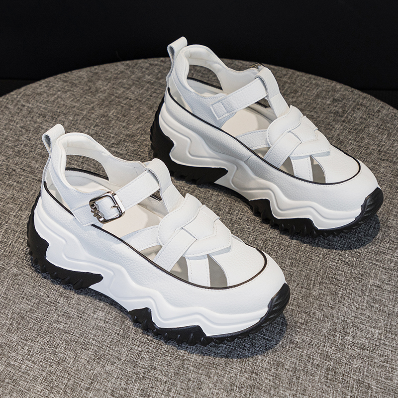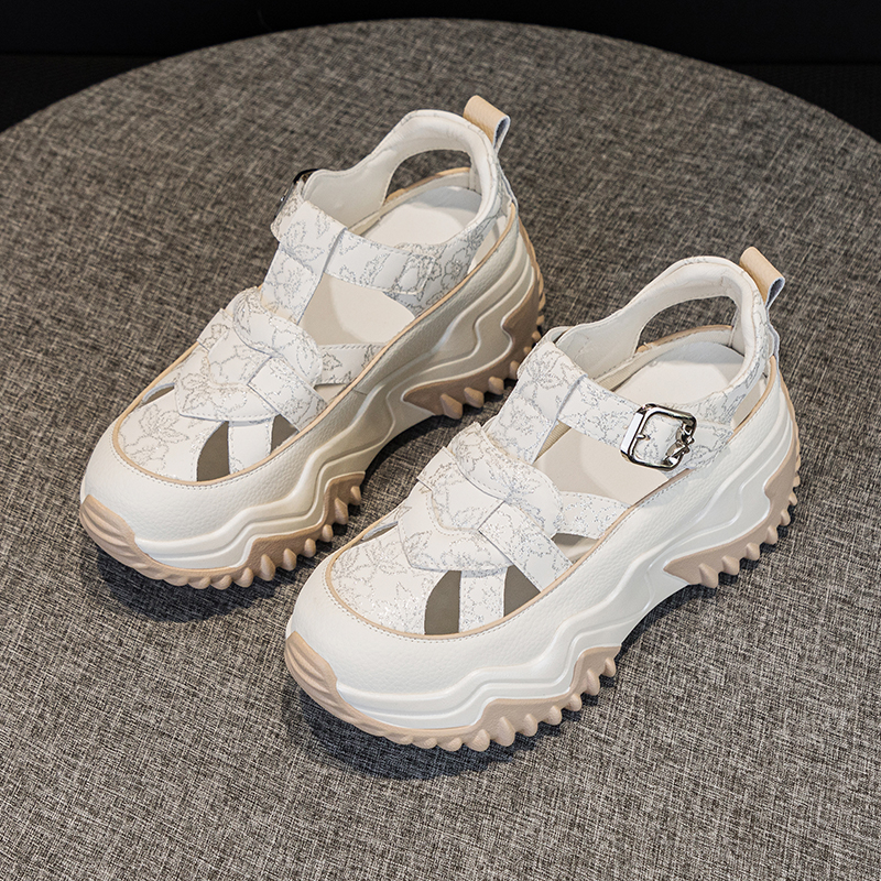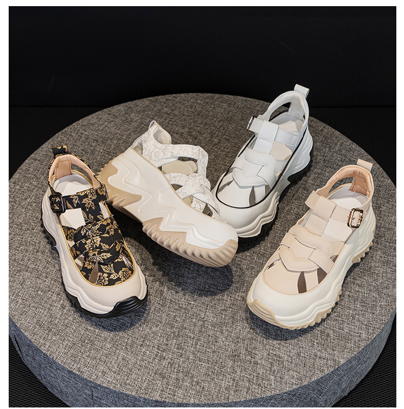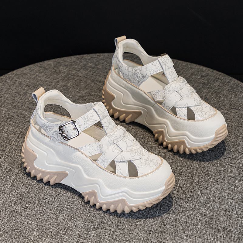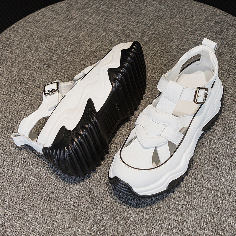 Women's Sandals 2025 New Summer Genuine Leather Closed-Toe Clogs Versatile Thick-Soled Height-Increasing Sports Casual Roman Sandals