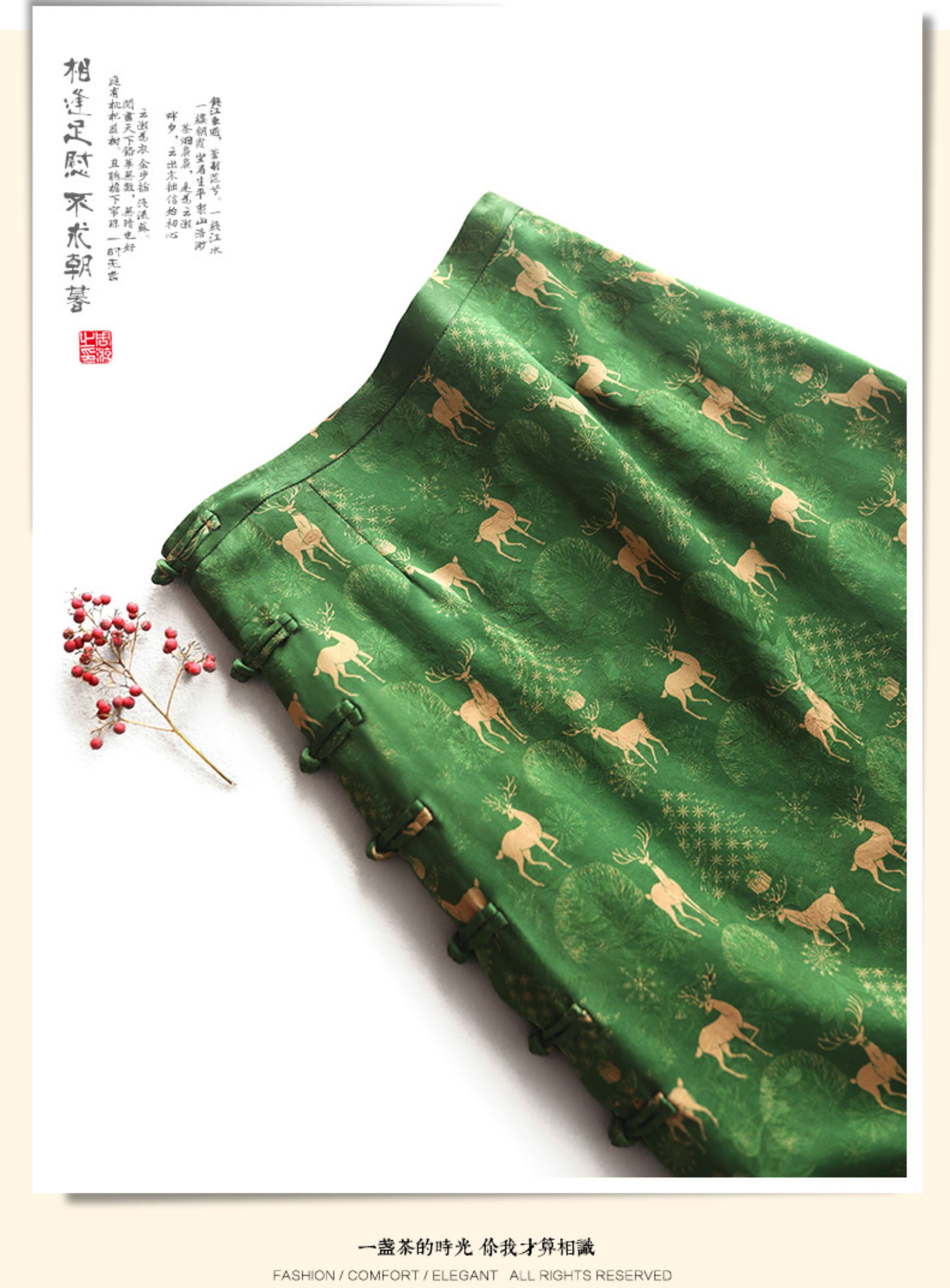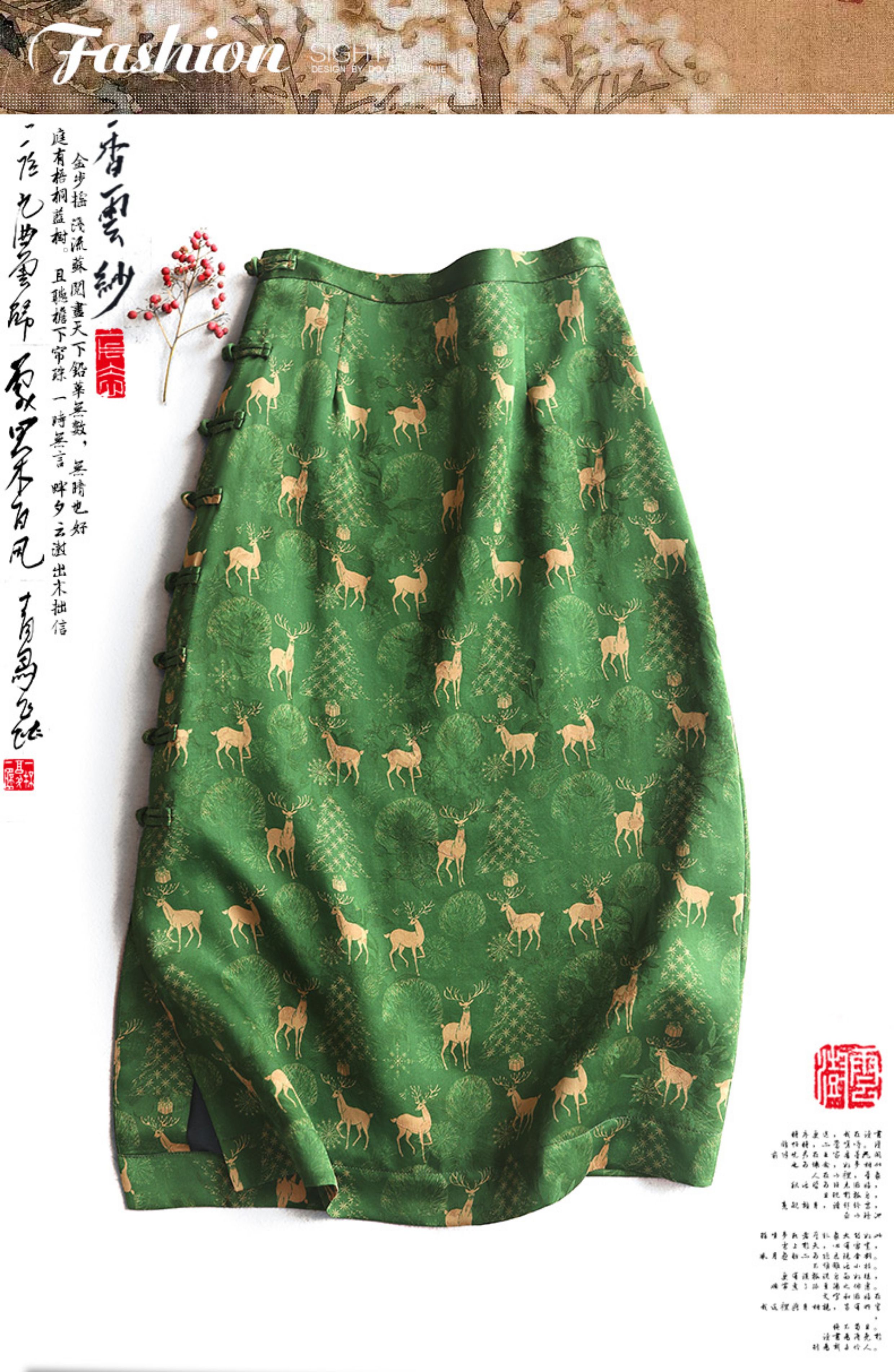 Yunshu Original Floral Fragrant Cloud Silk New Chinese Style National Style Silk Mulberry Silk Printed Buttoned Half Skirt for Women Summer