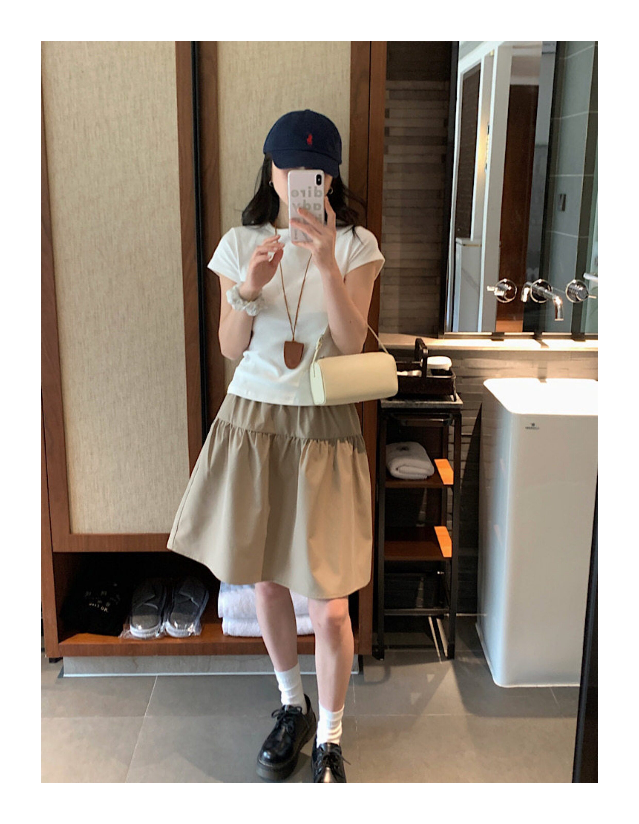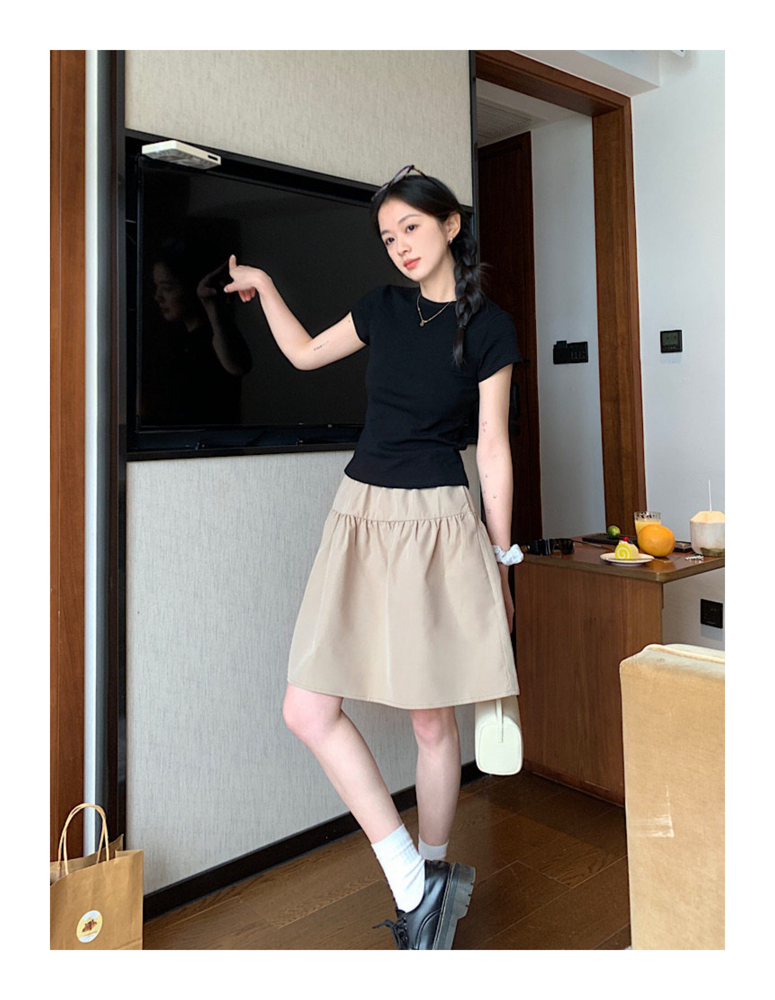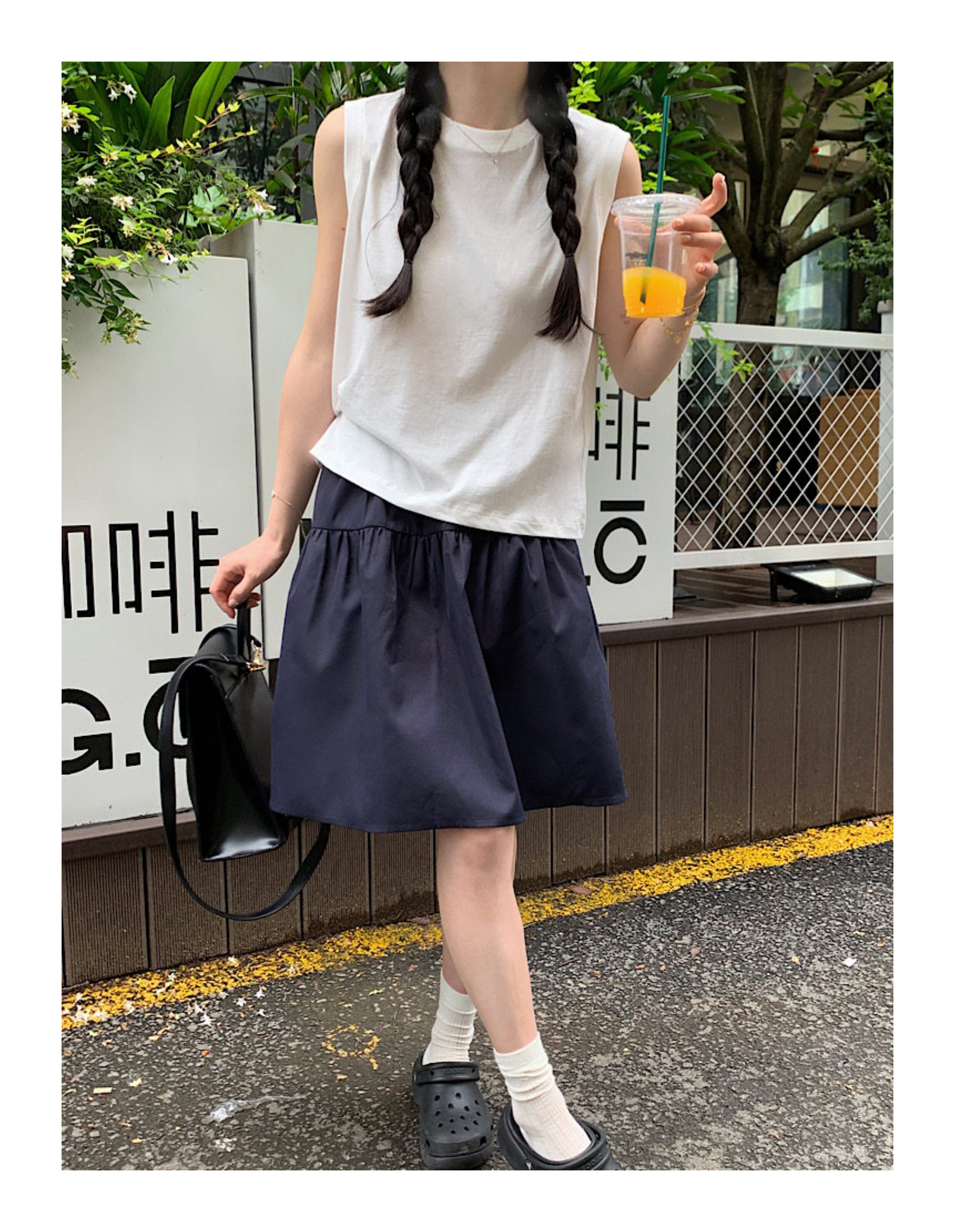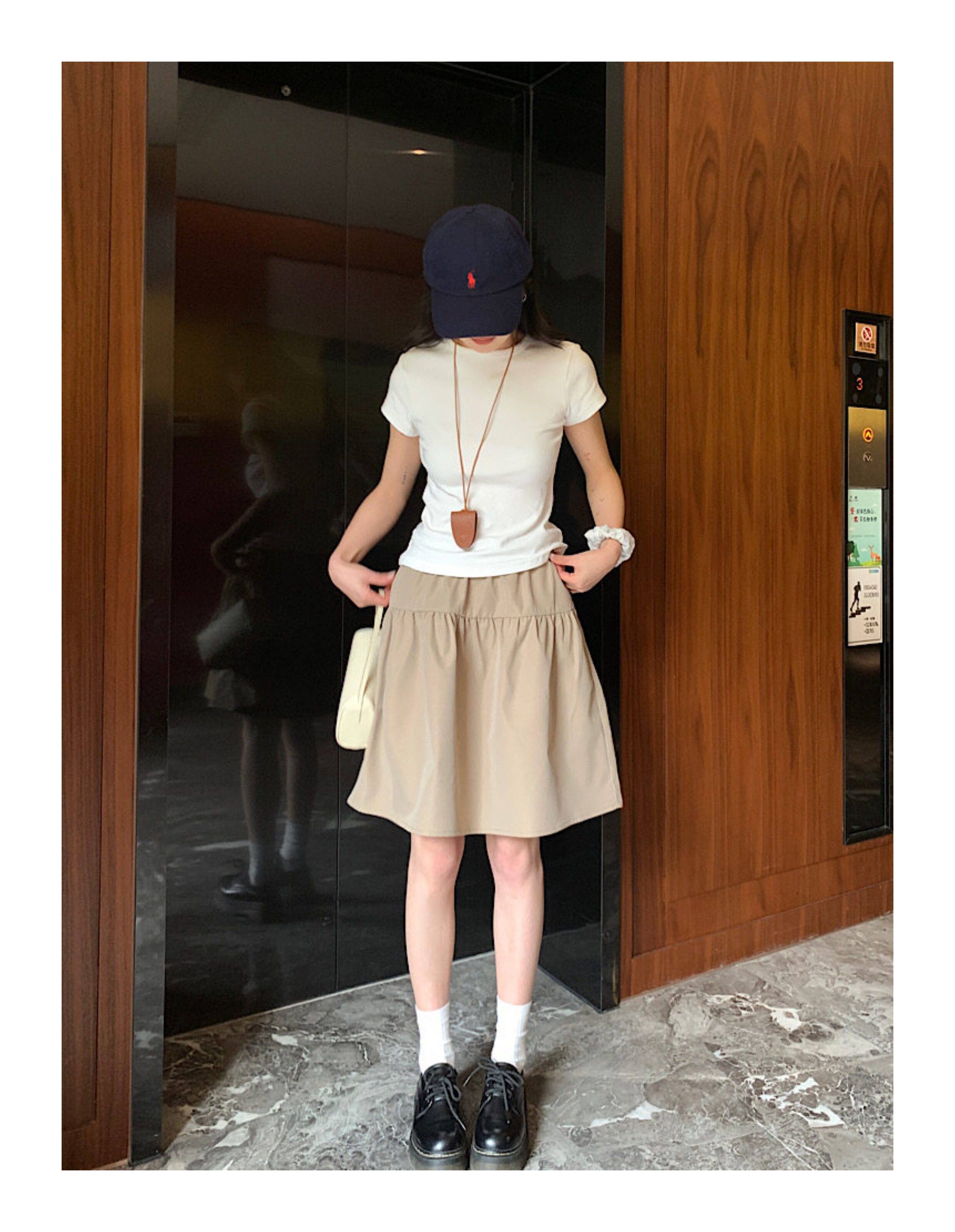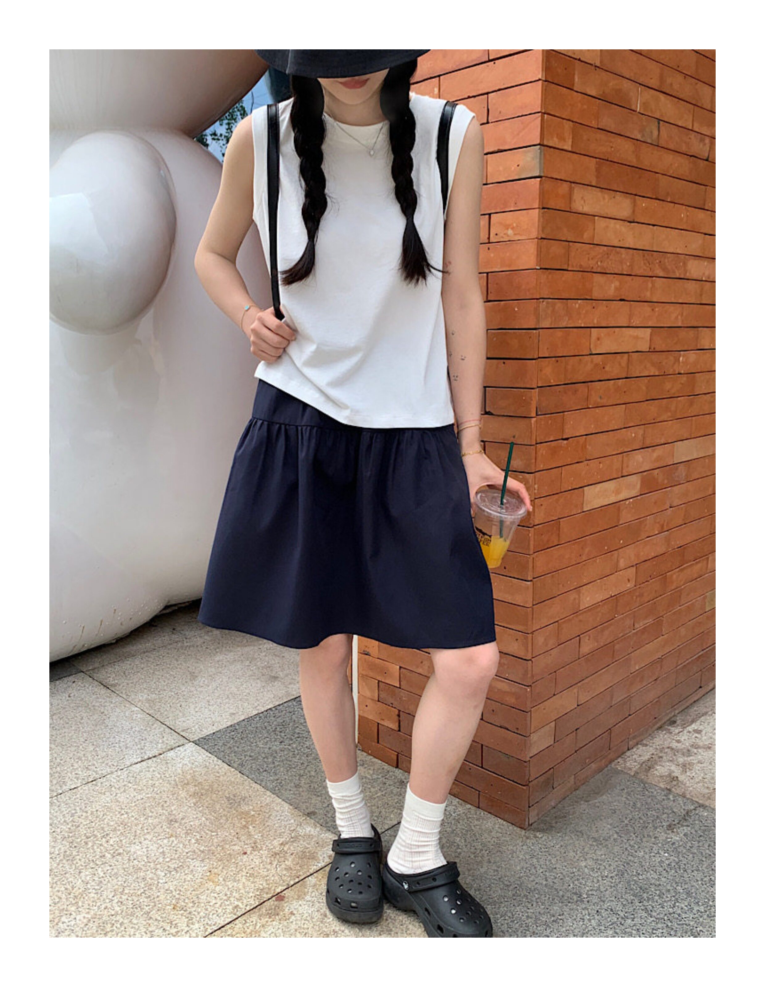 Ookstudios Japanese-Style Casual Elastic Waist Skirt Short Skirt for Women 2026 Spring and Summer New Versatile Slimming Sports Skirt