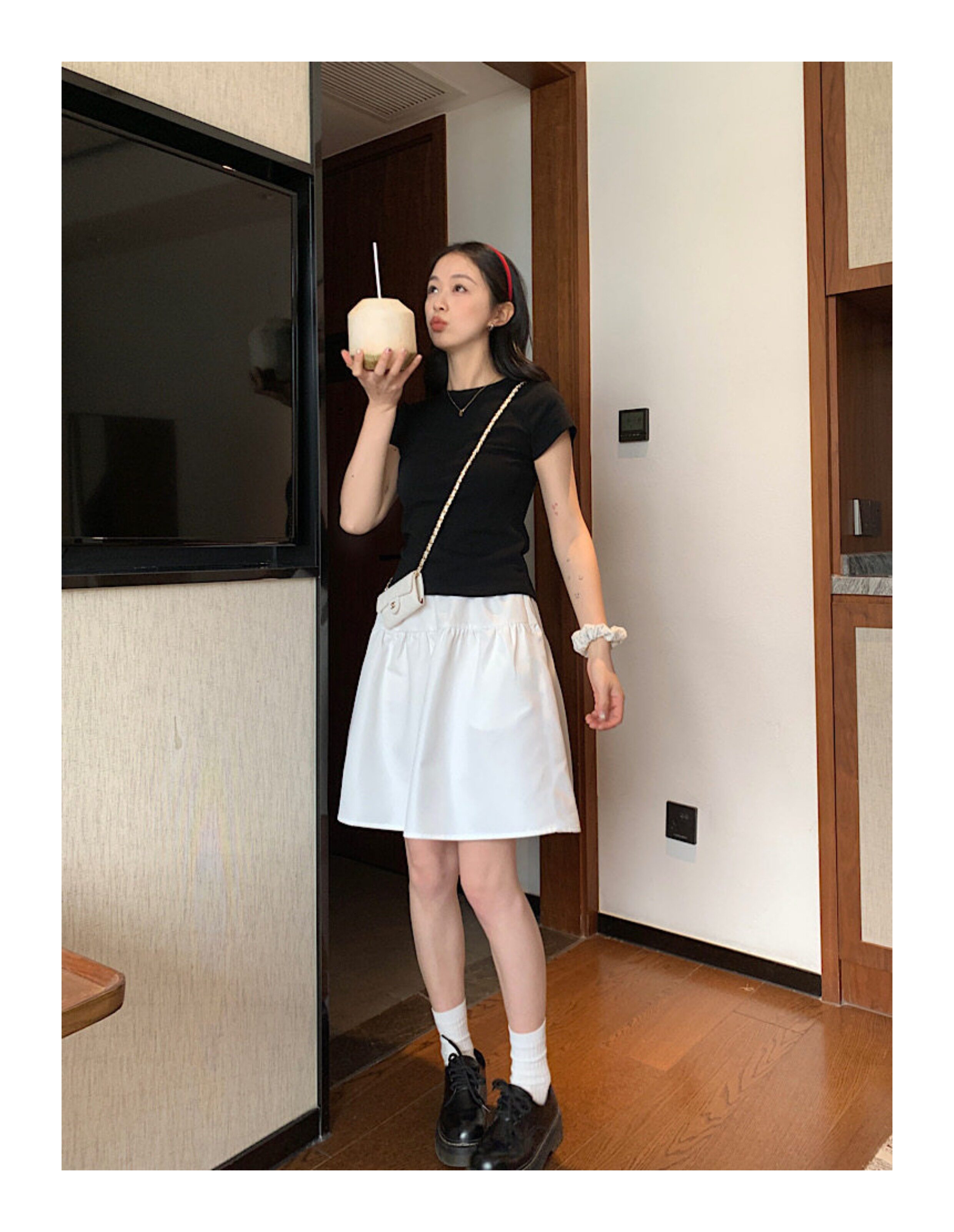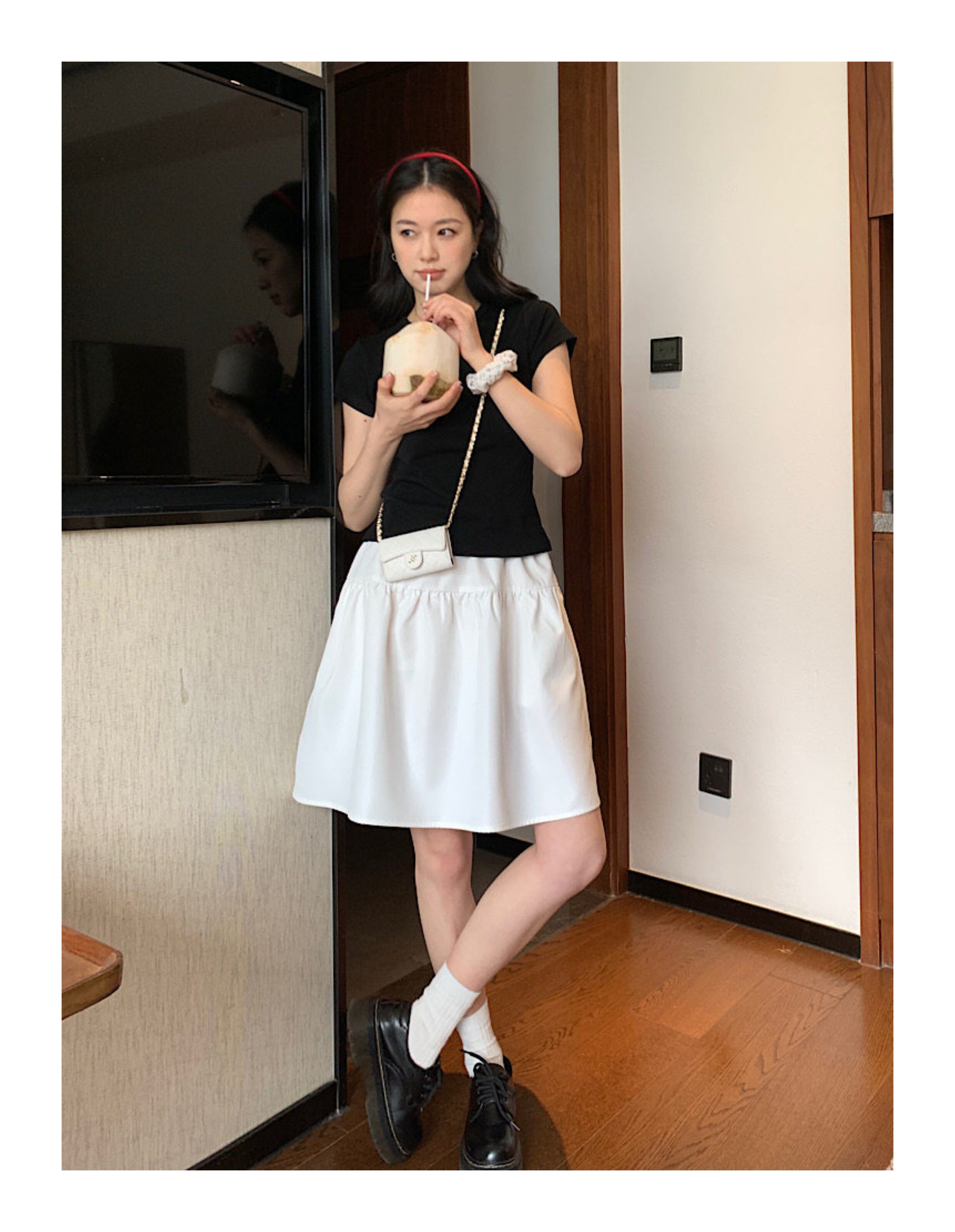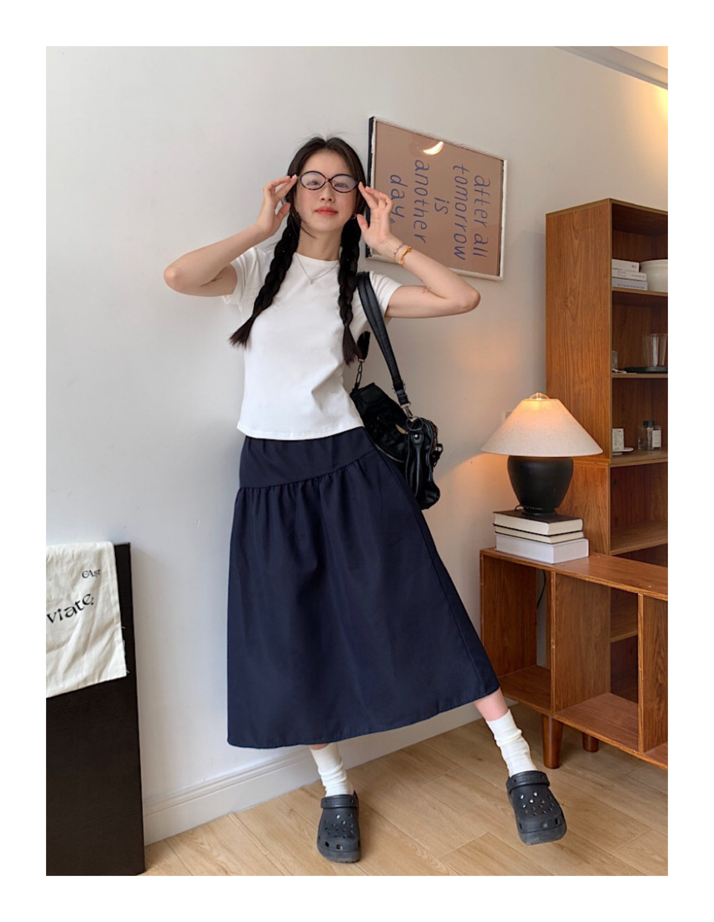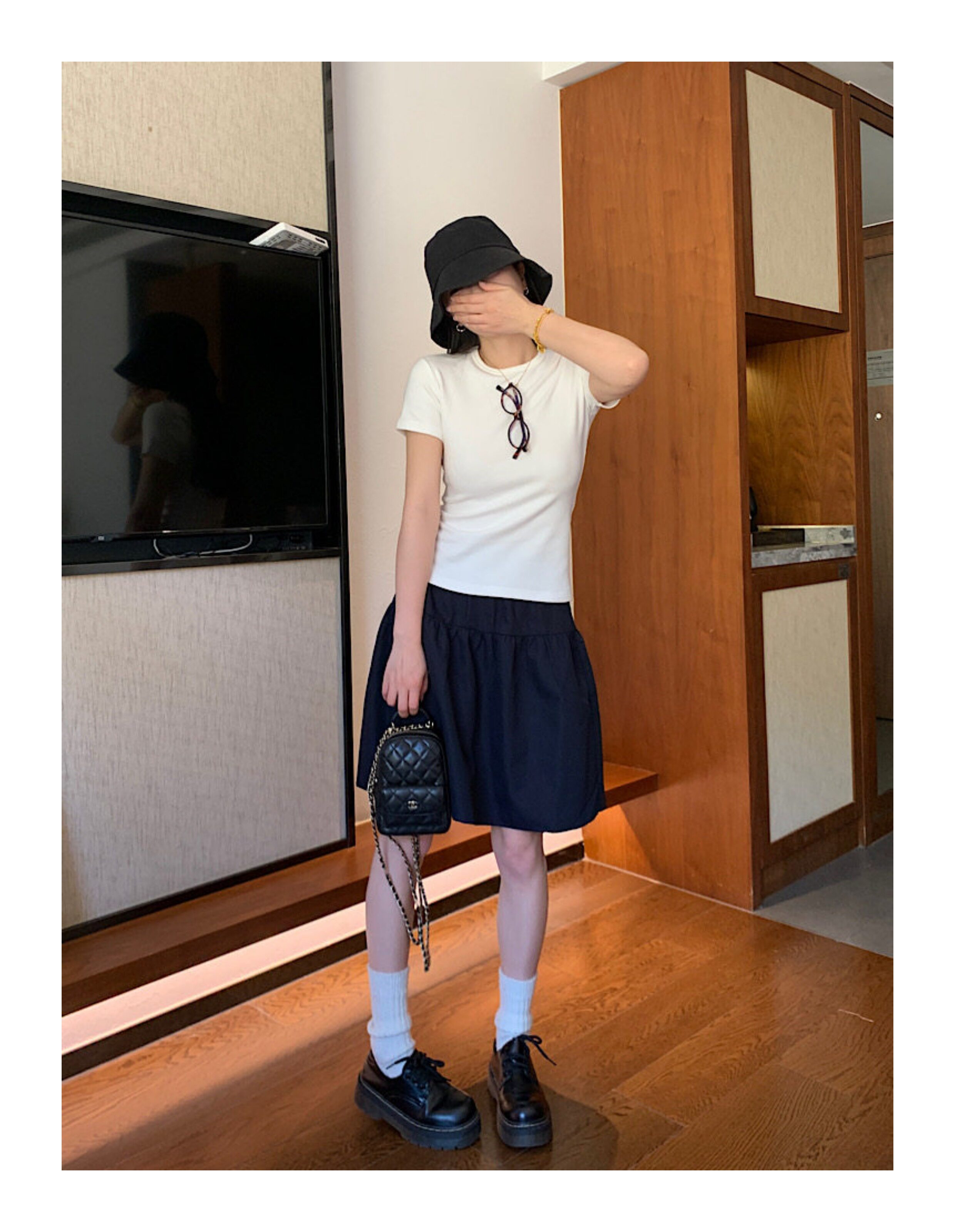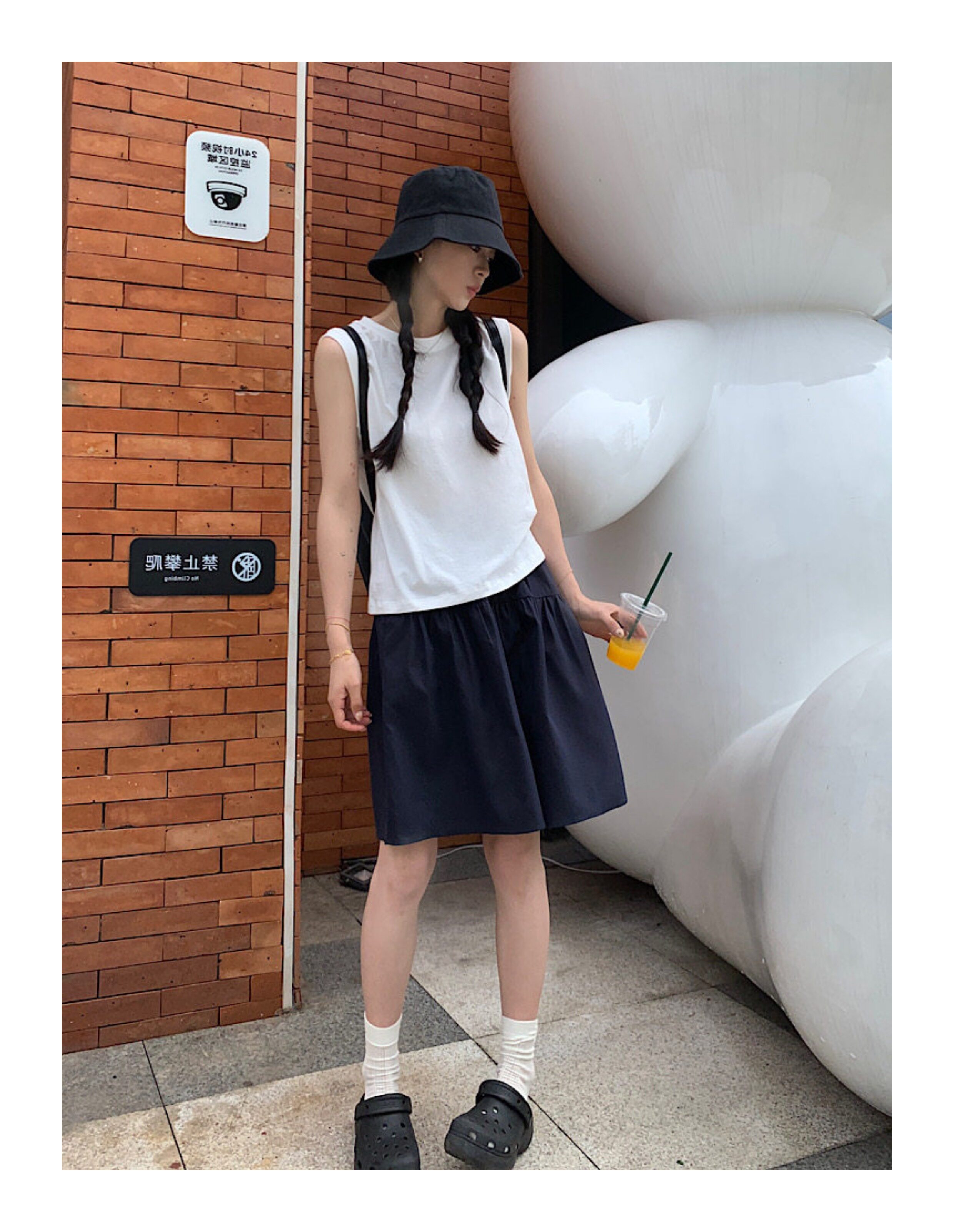 Ookstudios Japanese-Style Casual Elastic Waist Skirt Short Skirt for Women 2026 Spring and Summer New Versatile Slimming Sports Skirt