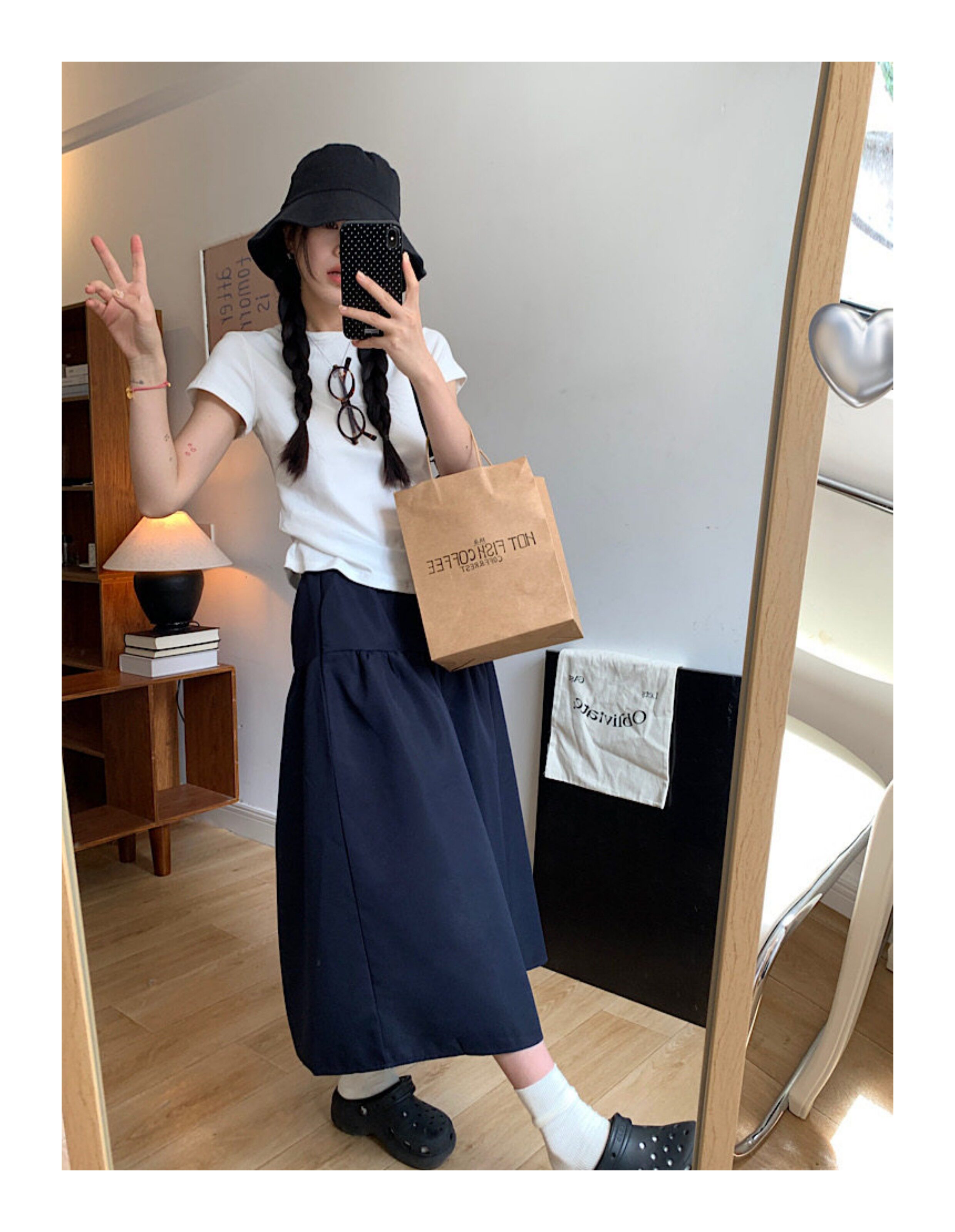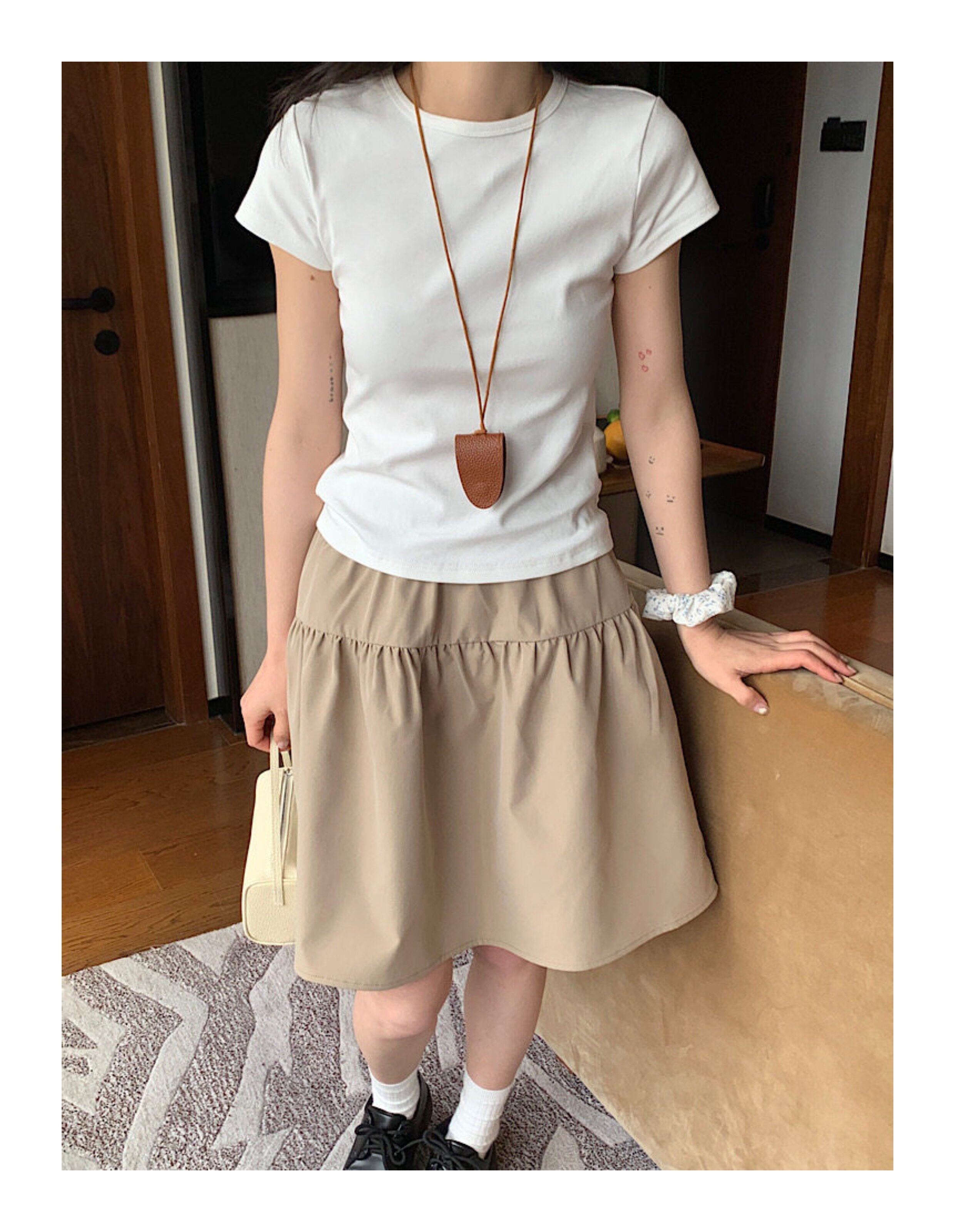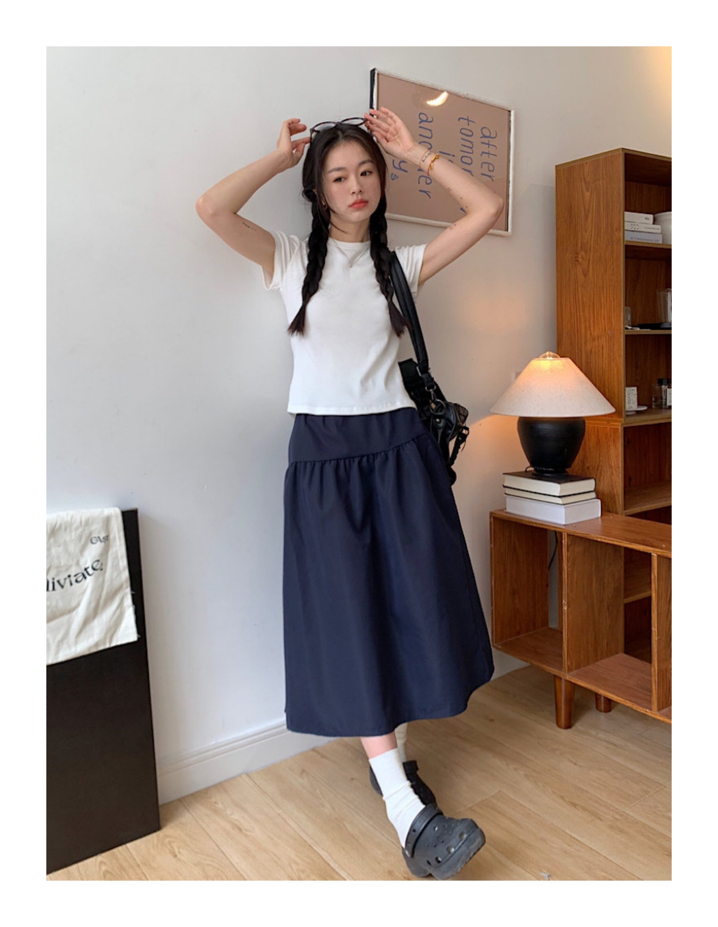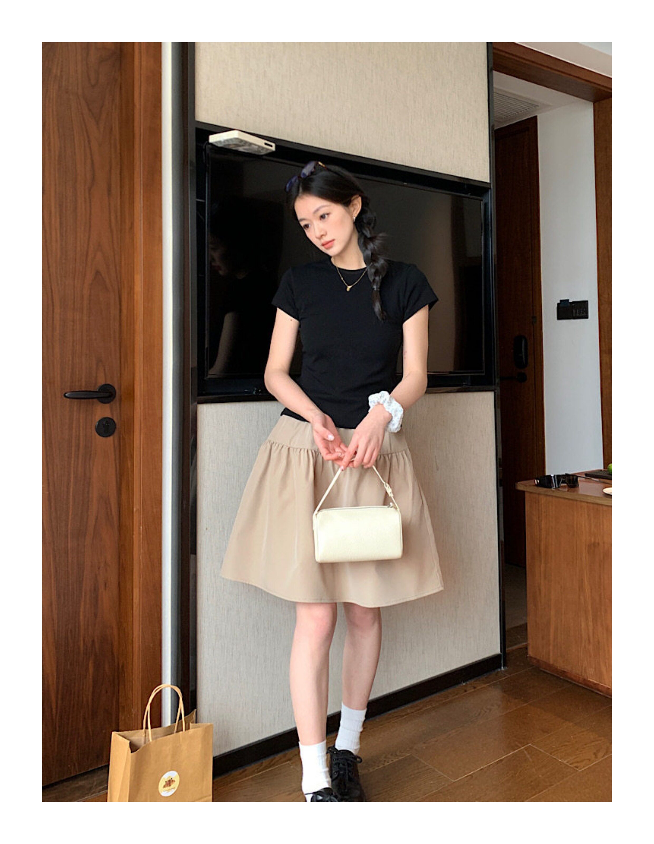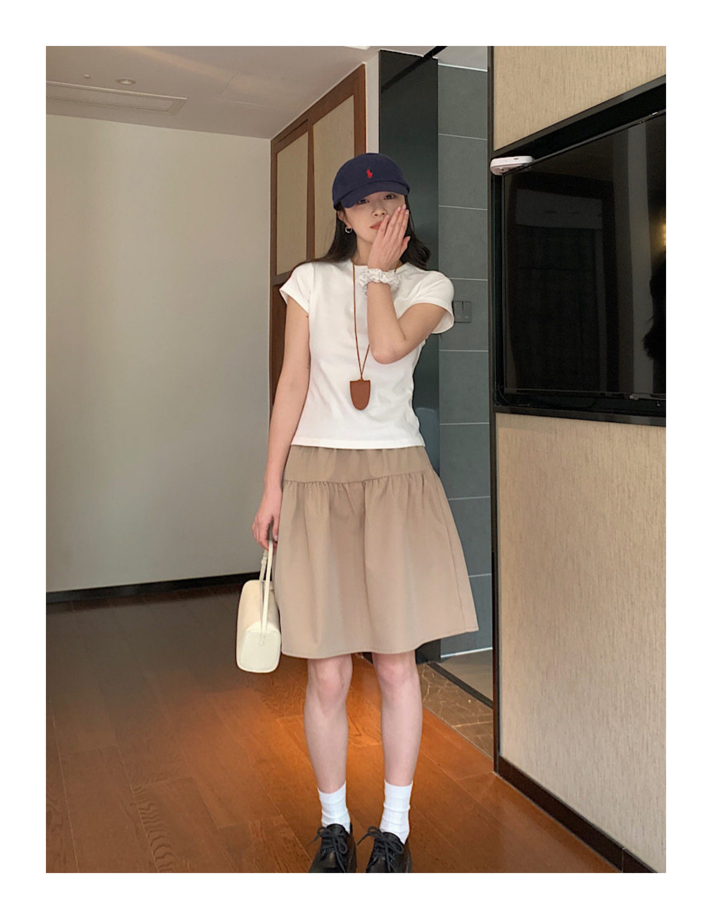 Ookstudios Japanese-Style Casual Elastic Waist Skirt Short Skirt for Women 2026 Spring and Summer New Versatile Slimming Sports Skirt