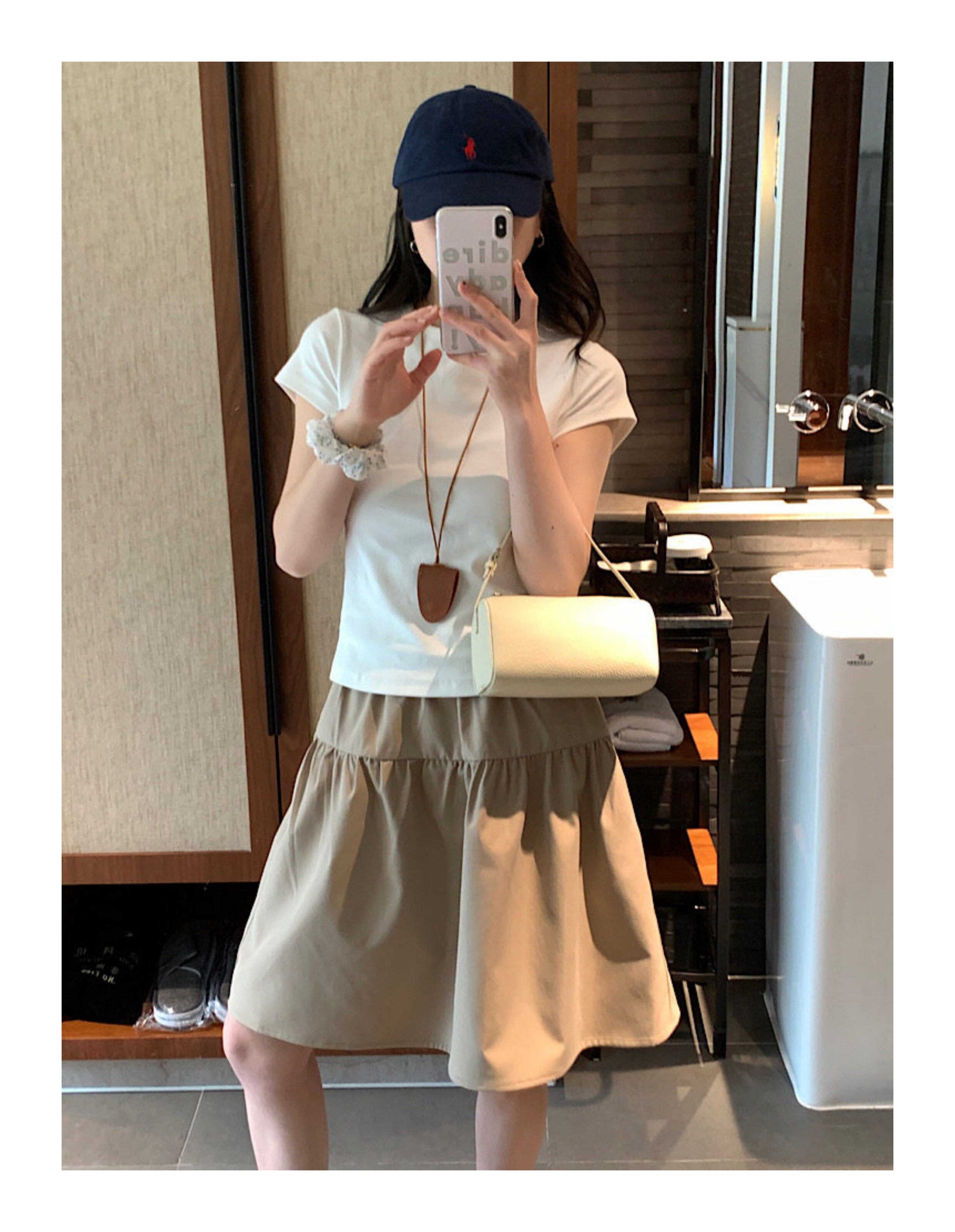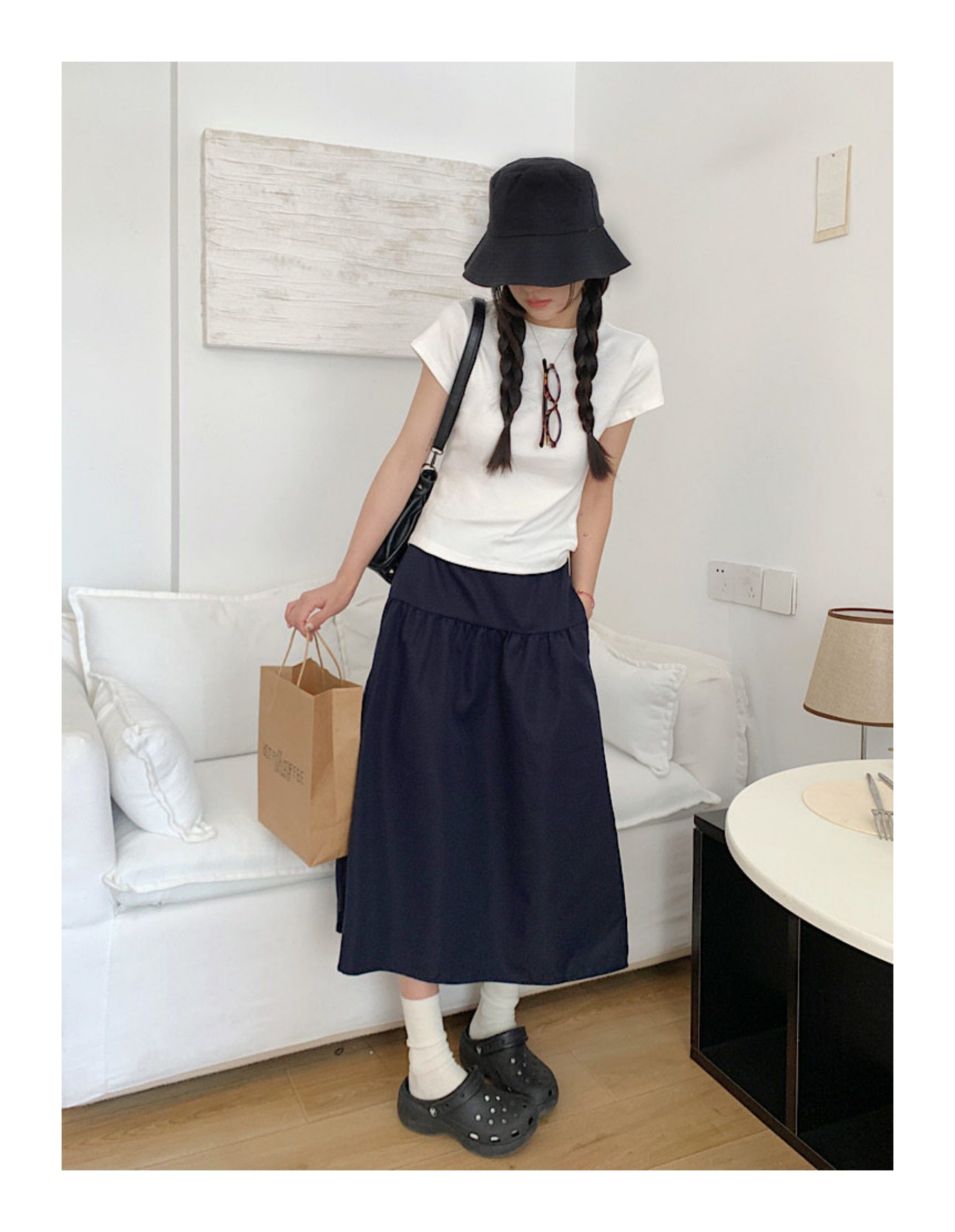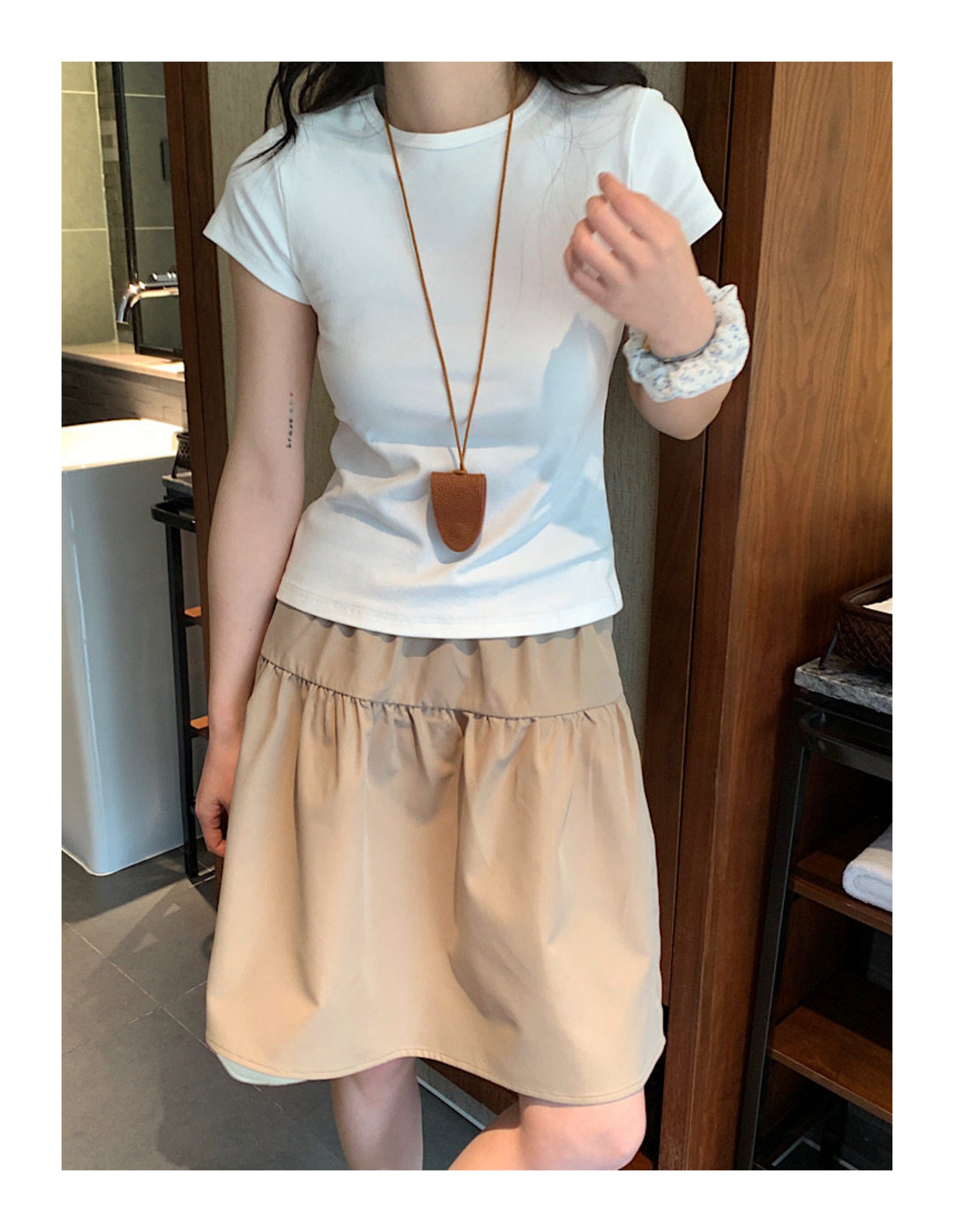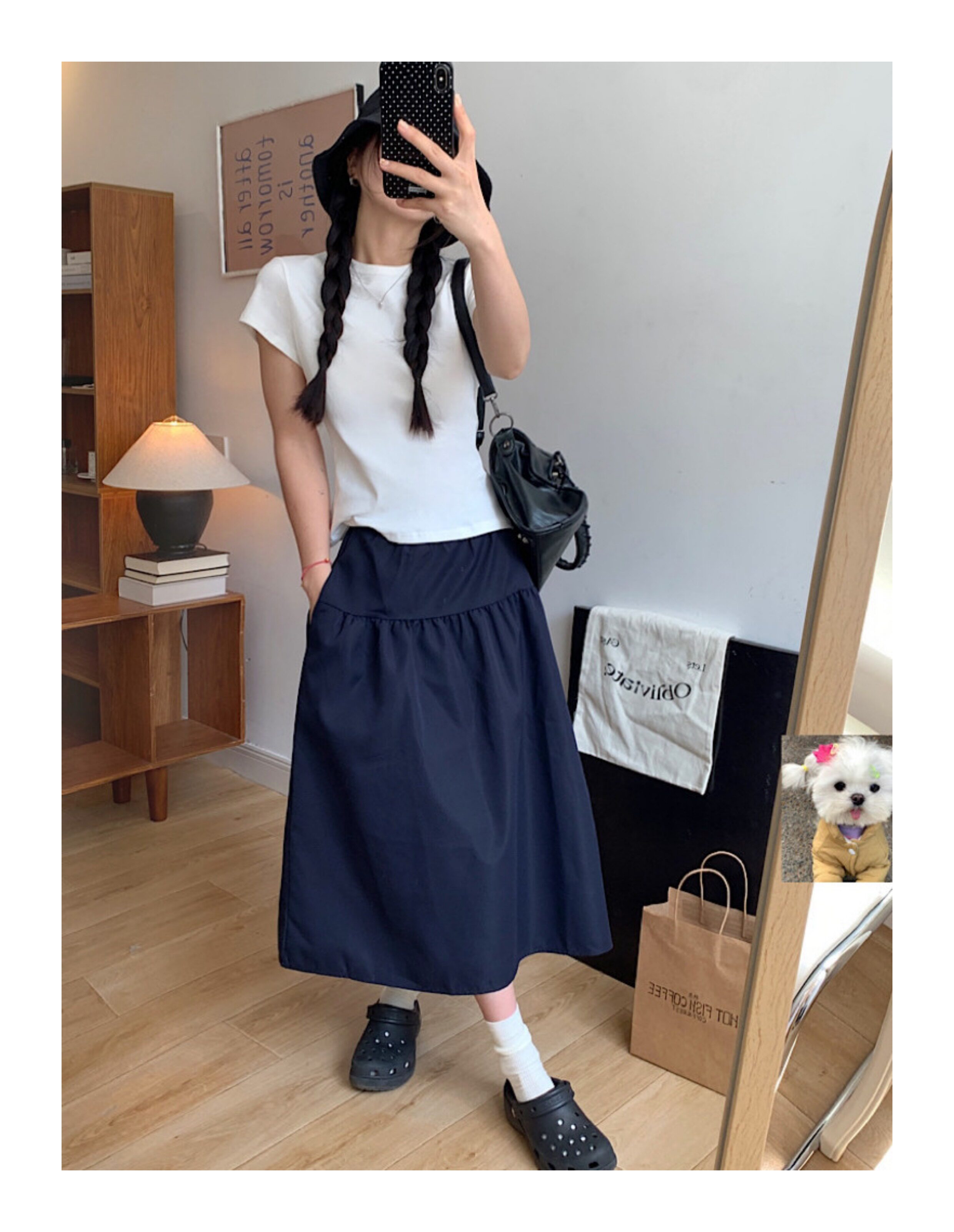Ookstudios Japanese-Style Casual Elastic Waist Skirt Short Skirt for Women 2026 Spring and Summer New Versatile Slimming Sports Skirt