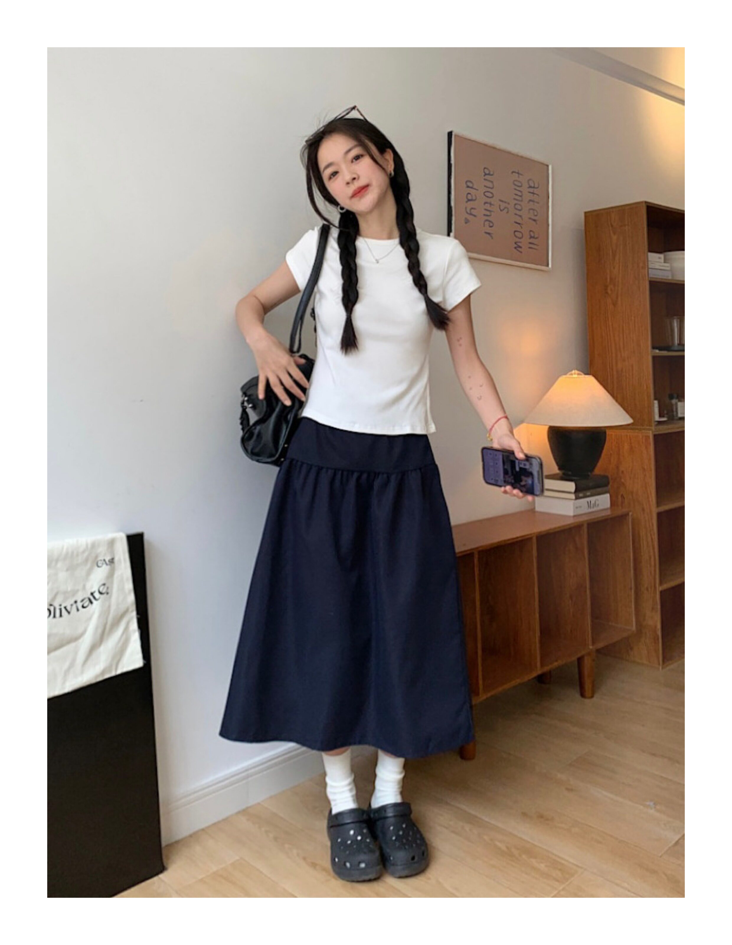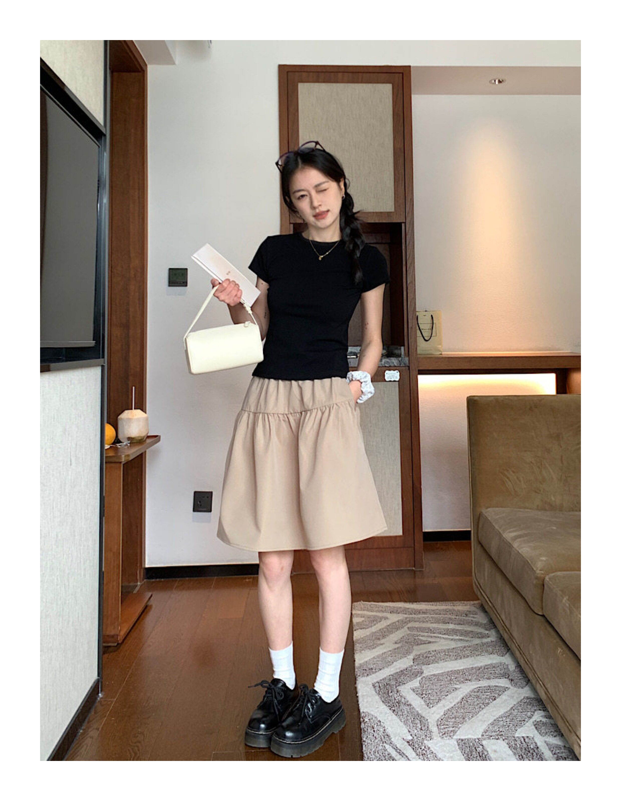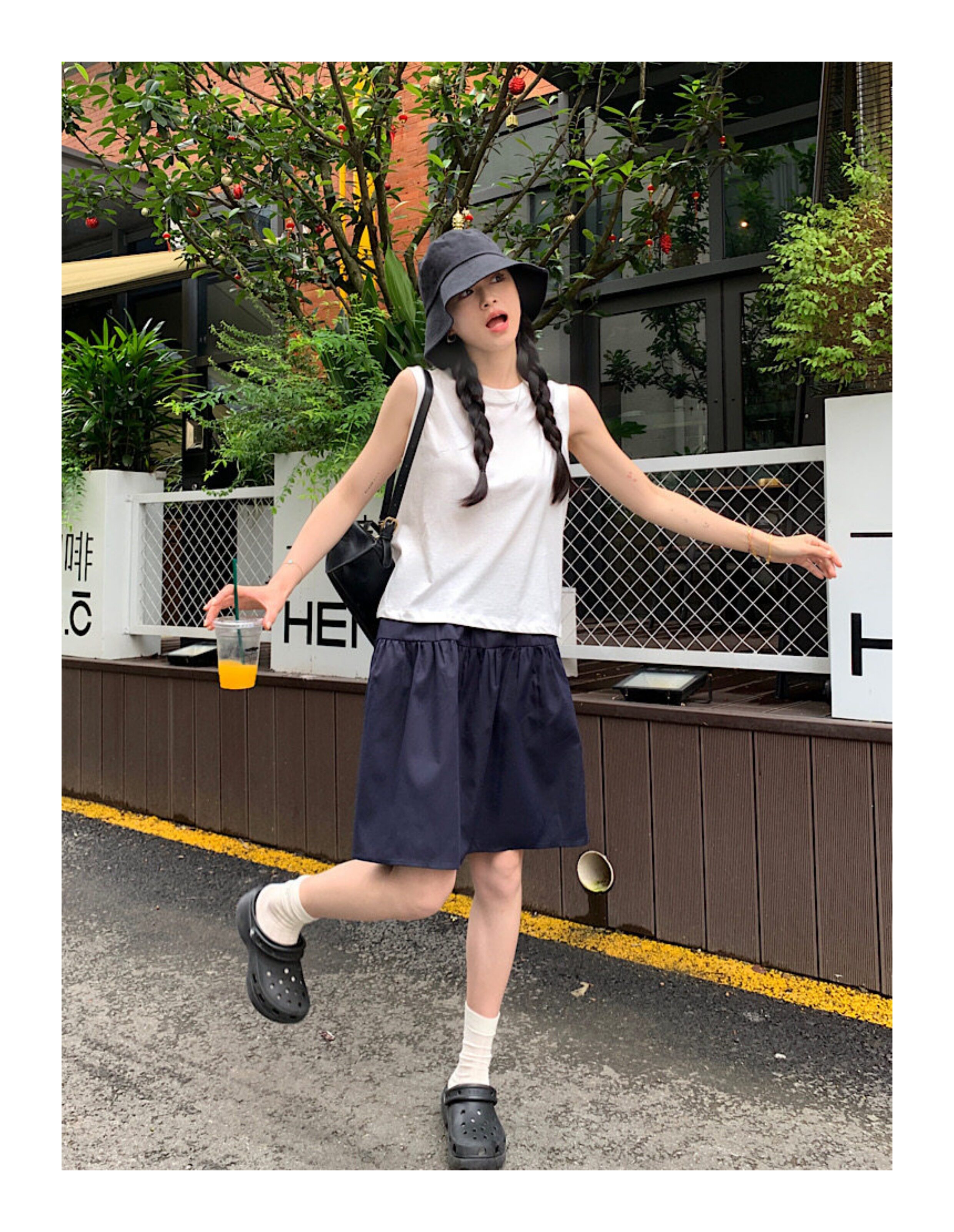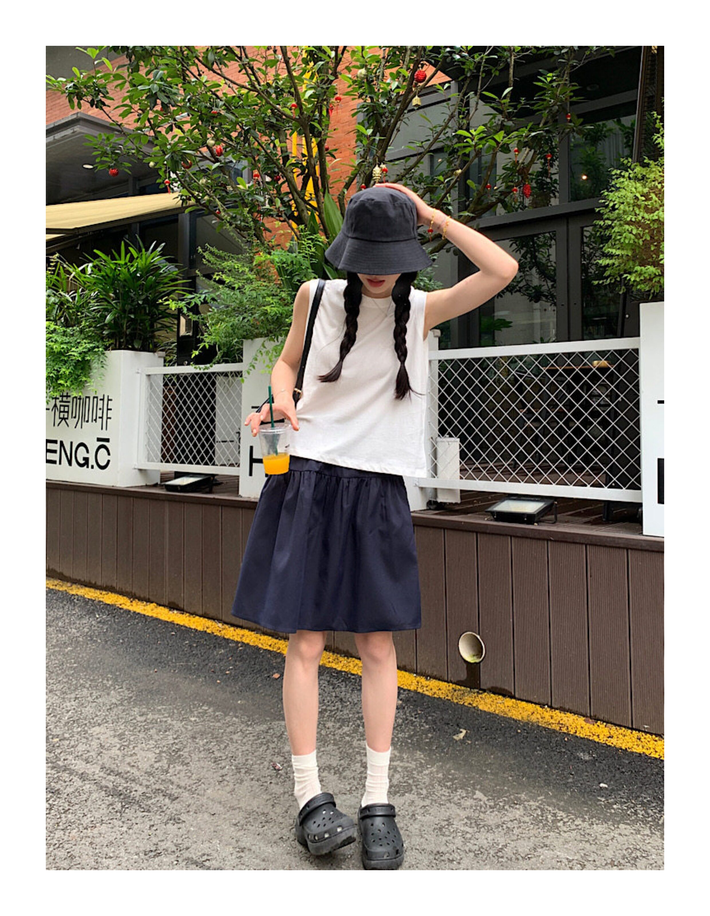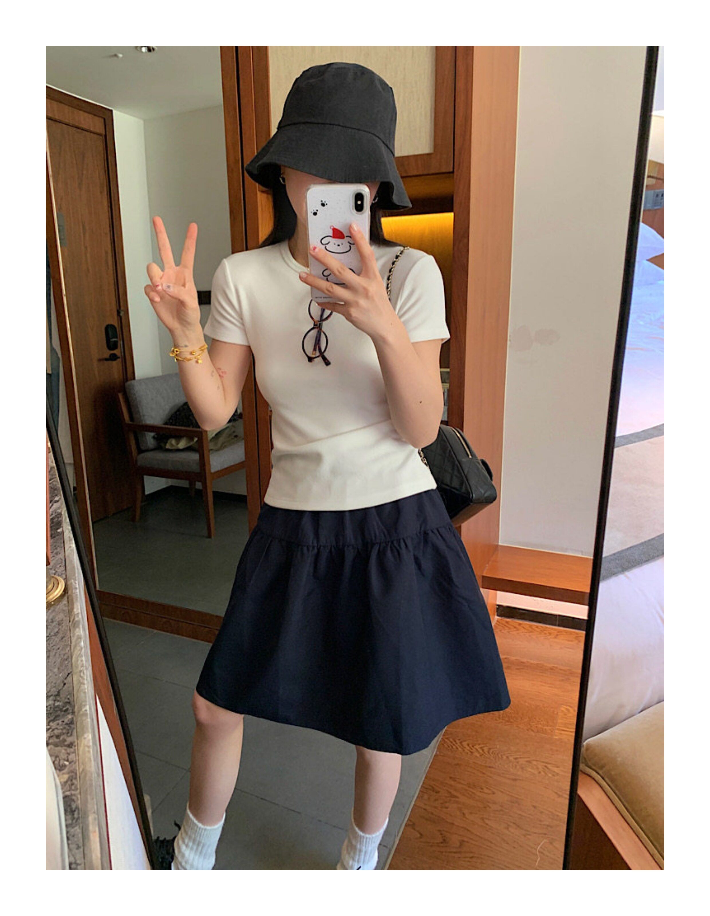 Ookstudios Japanese-Style Casual Elastic Waist Skirt Short Skirt for Women 2026 Spring and Summer New Versatile Slimming Sports Skirt