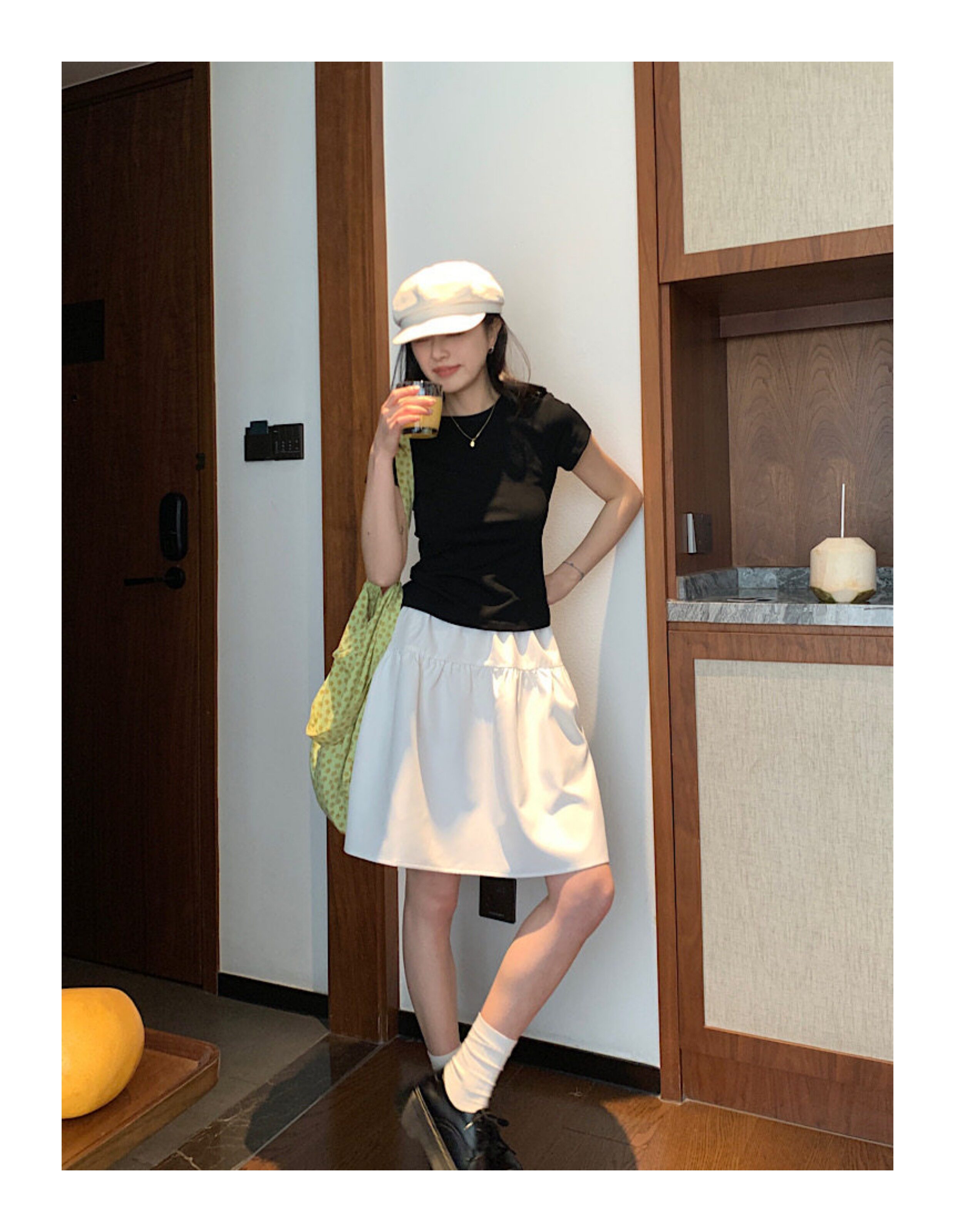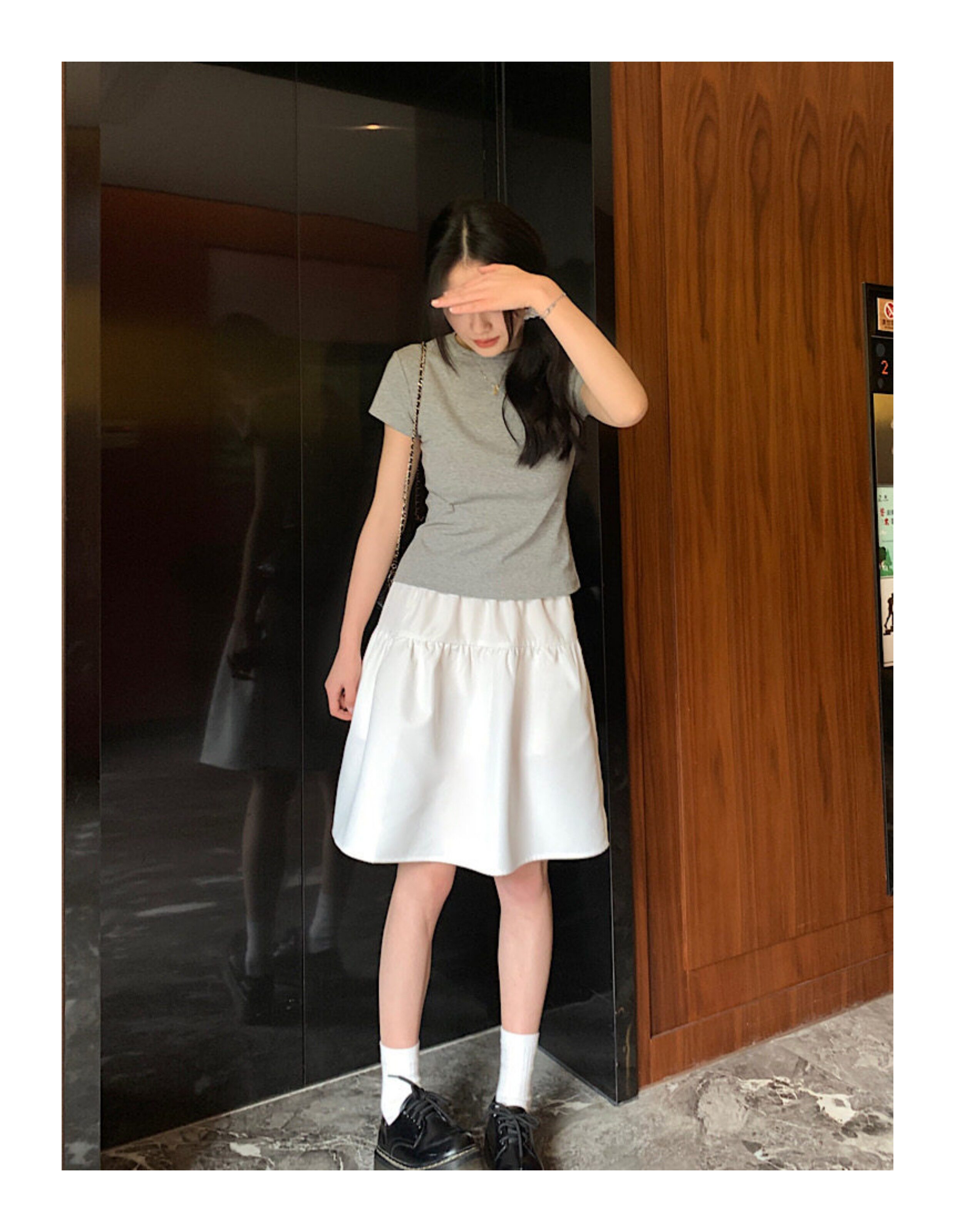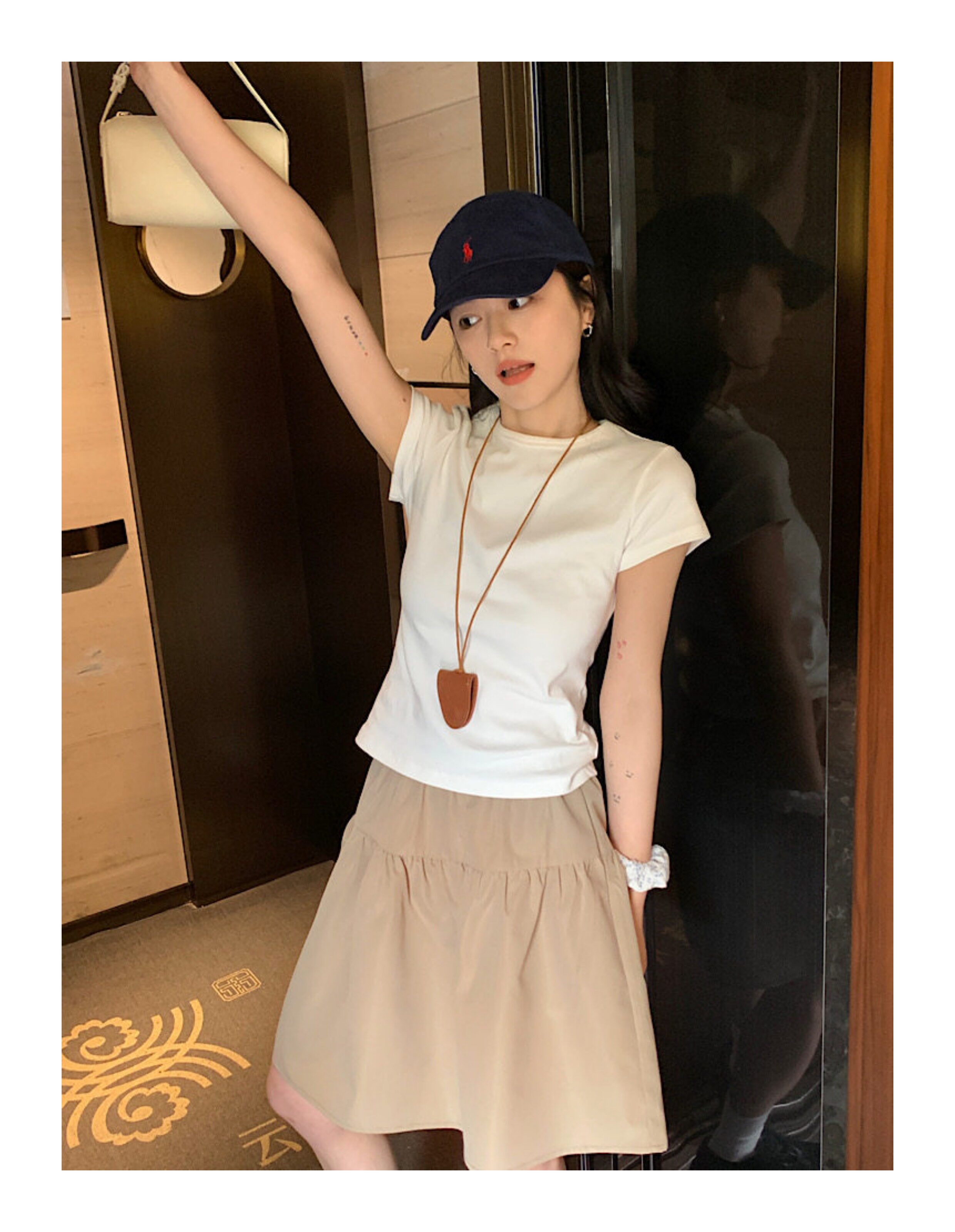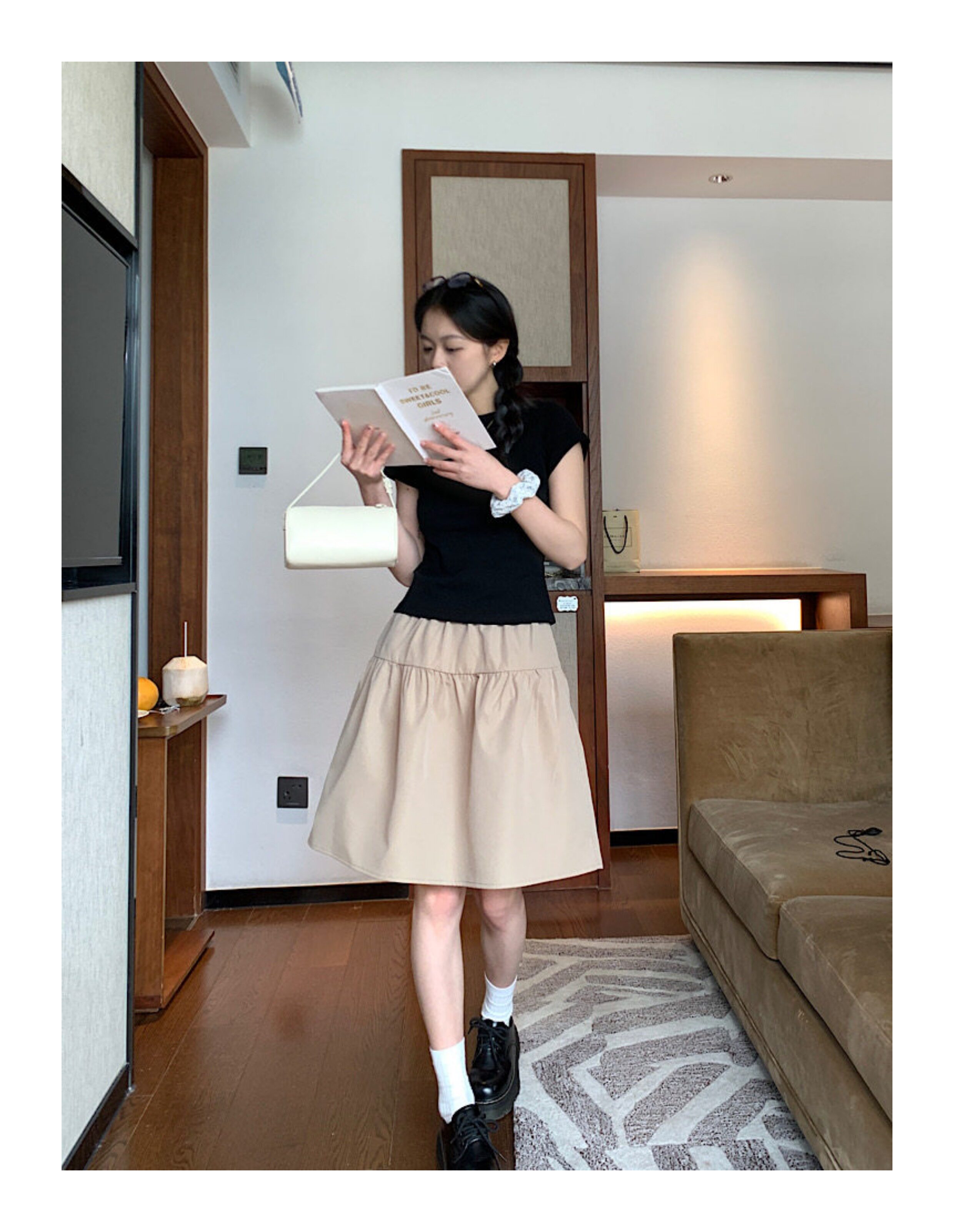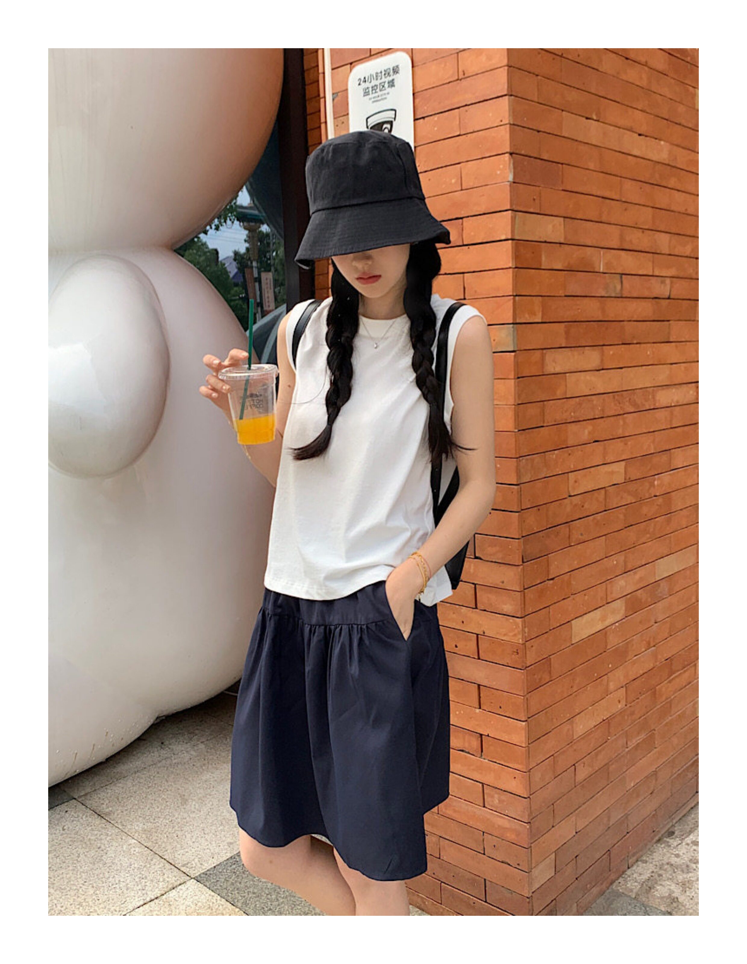 Ookstudios Japanese-Style Casual Elastic Waist Skirt Short Skirt for Women 2026 Spring and Summer New Versatile Slimming Sports Skirt