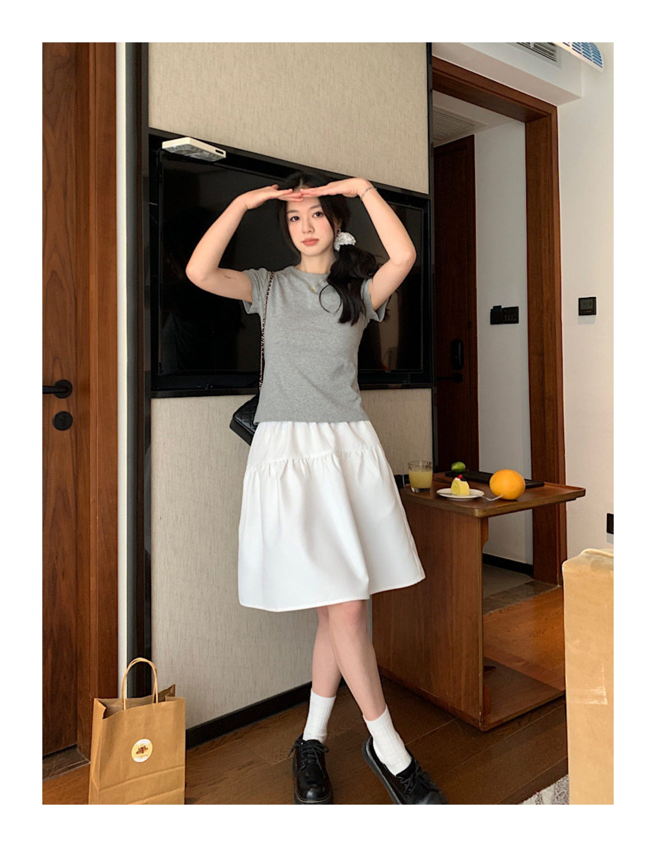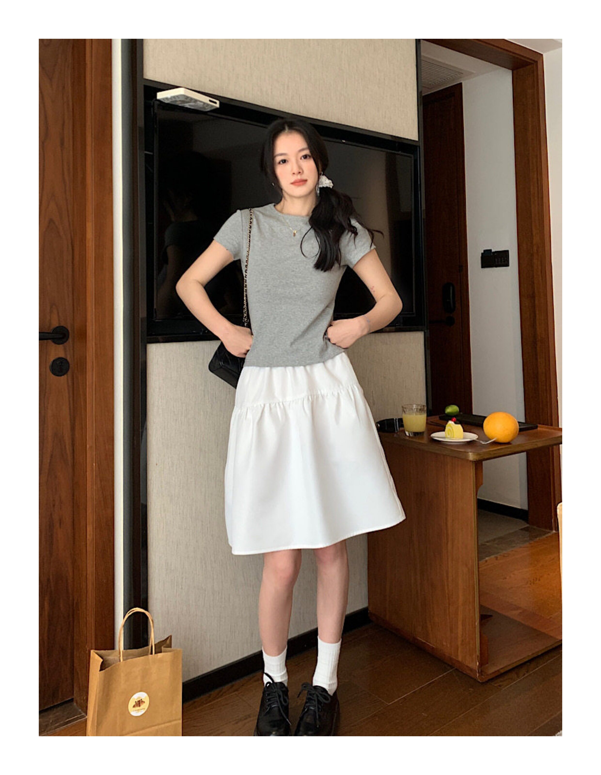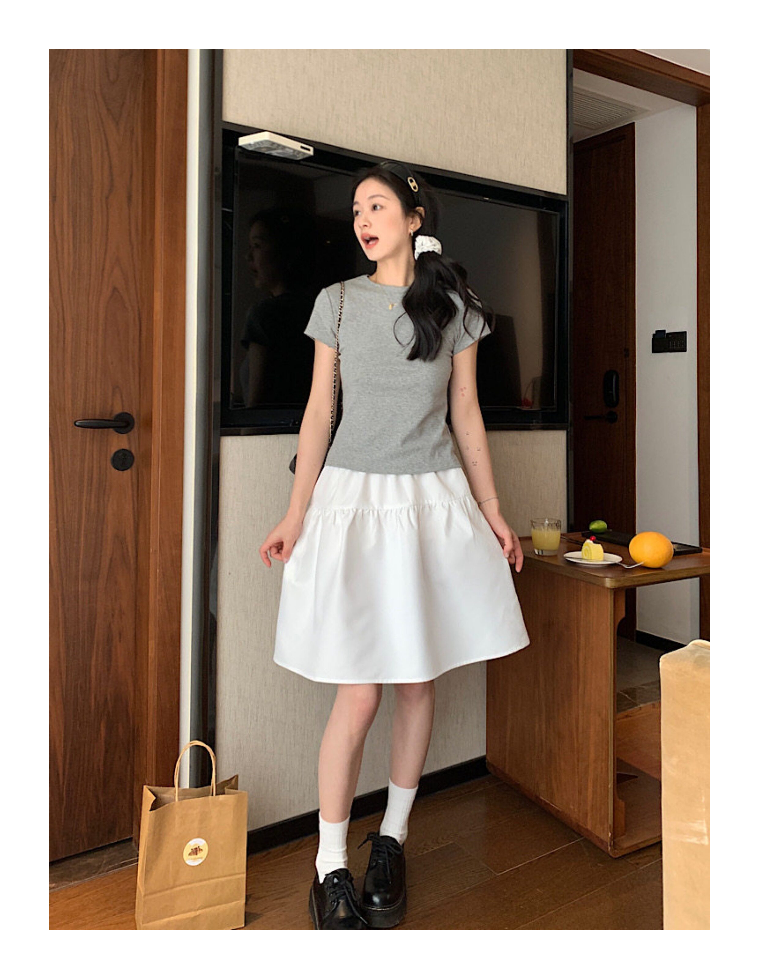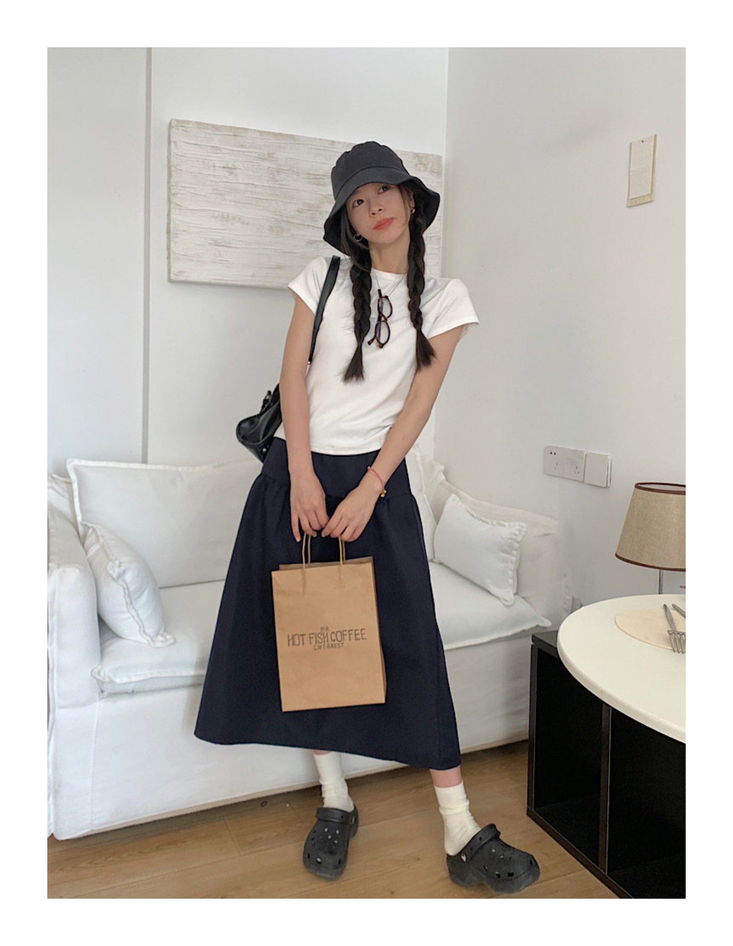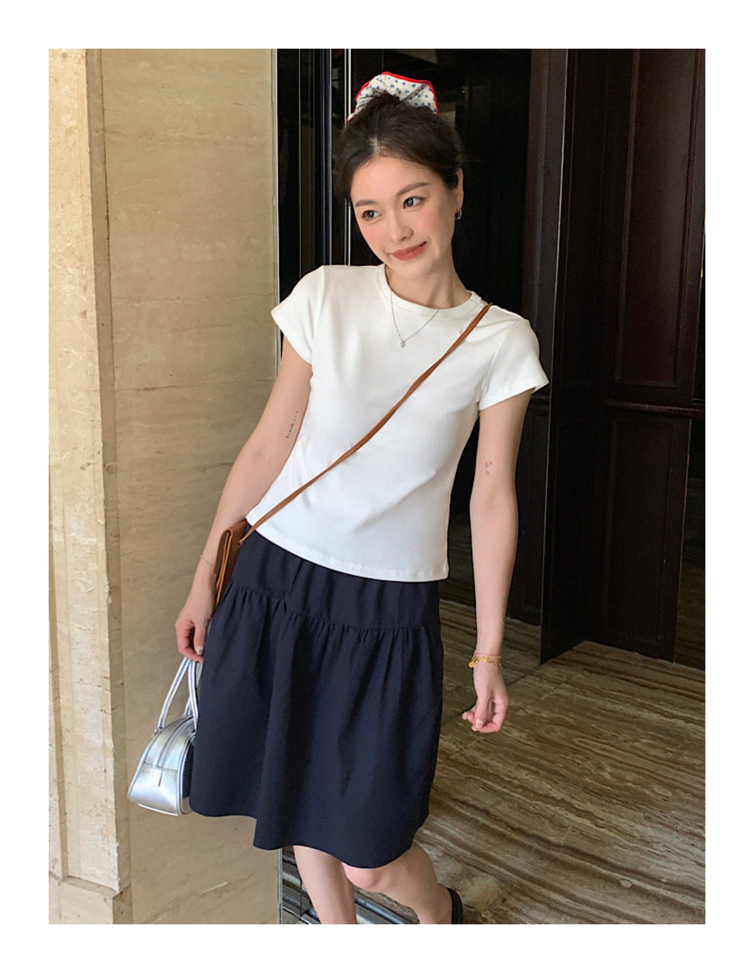 Ookstudios Japanese-Style Casual Elastic Waist Skirt Short Skirt for Women 2026 Spring and Summer New Versatile Slimming Sports Skirt