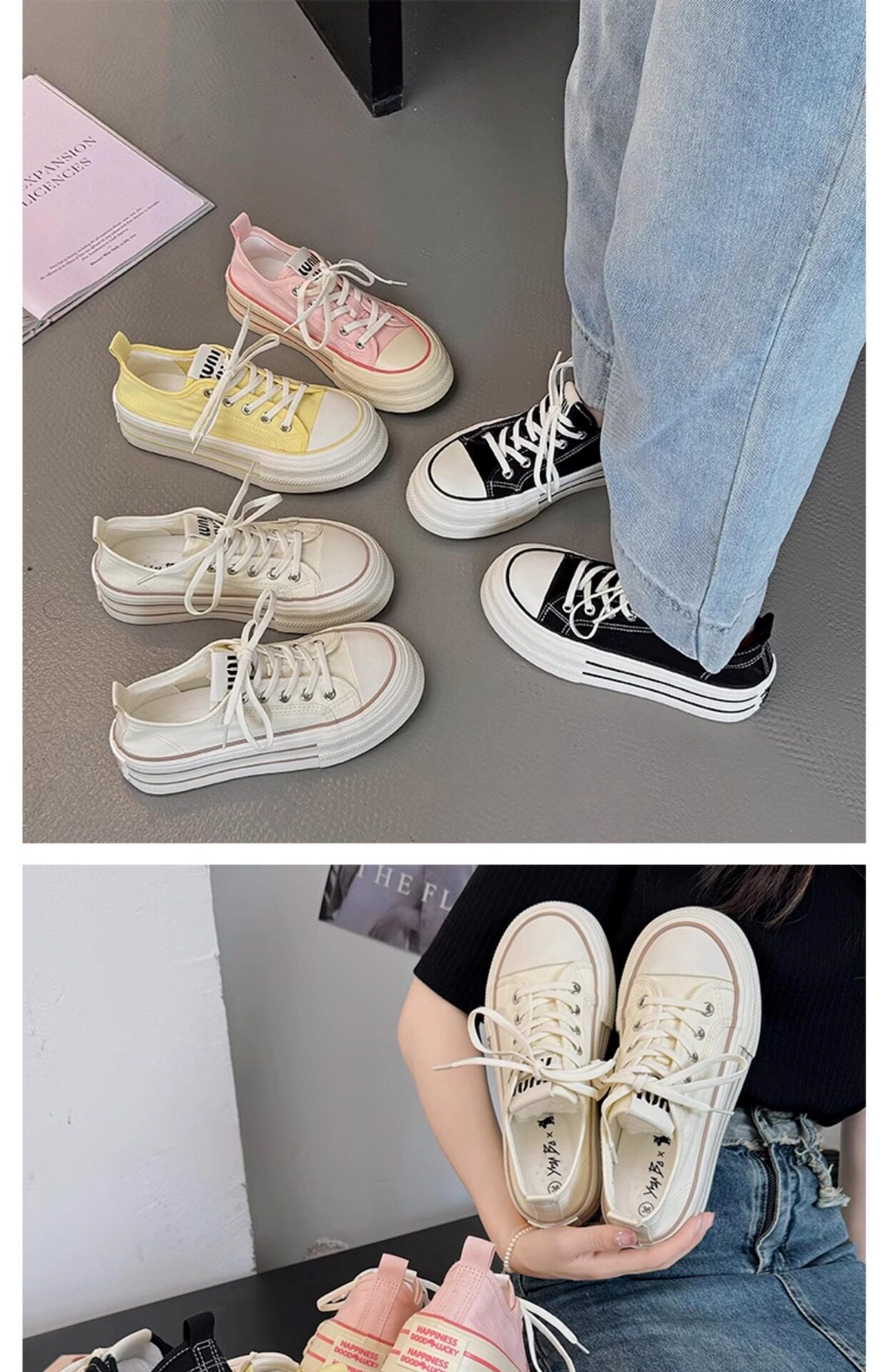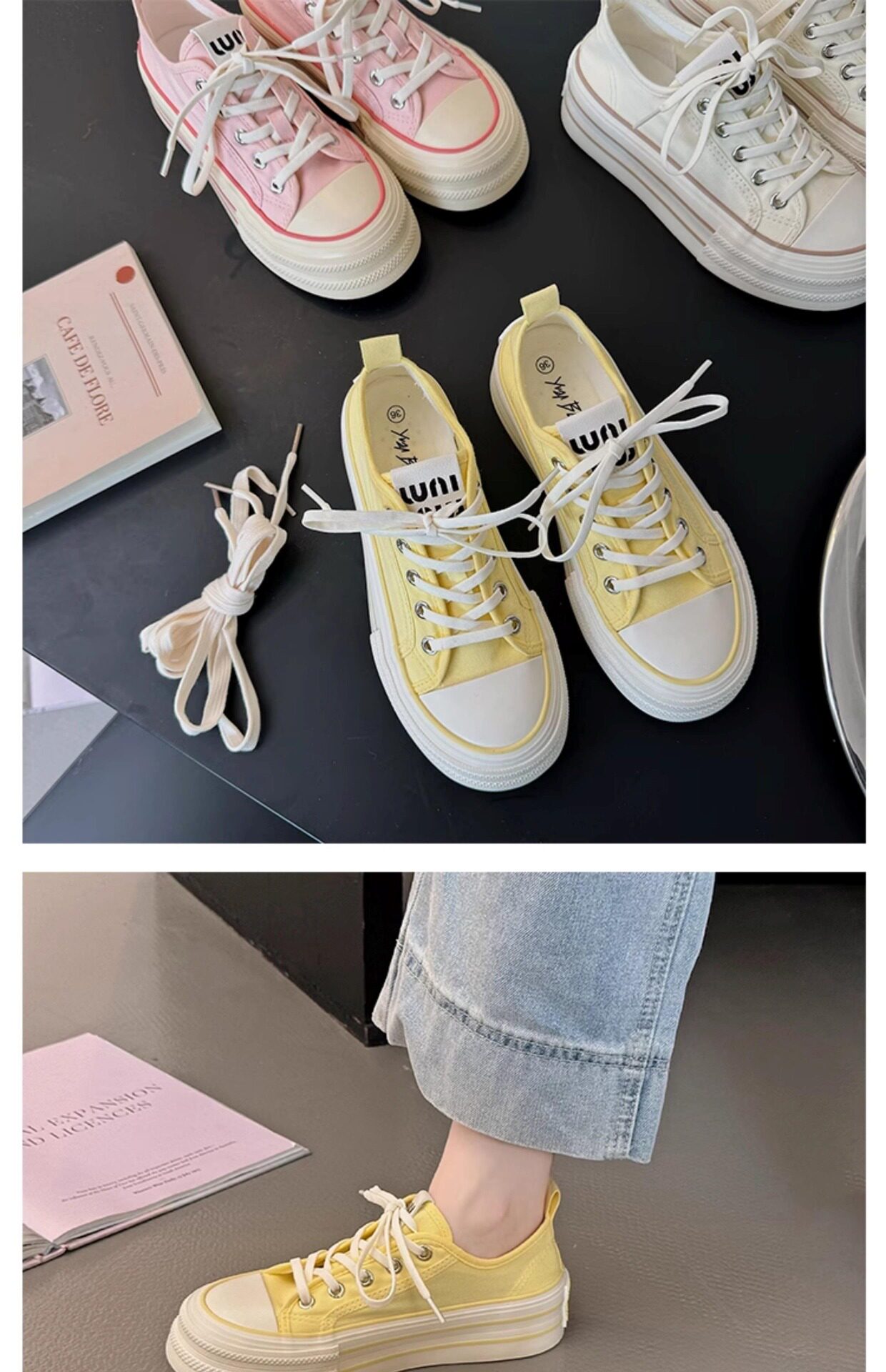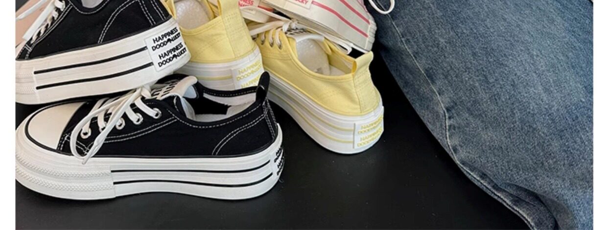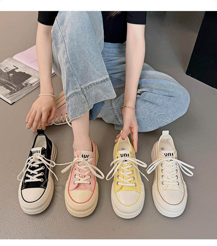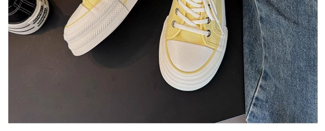 Yellow Thick-Soled Canvas Shoes for Women 2026 New Spring and Autumn Height-Increasing Casual Versatile Sneakers Lightweight White Shoes Cloth Shoes