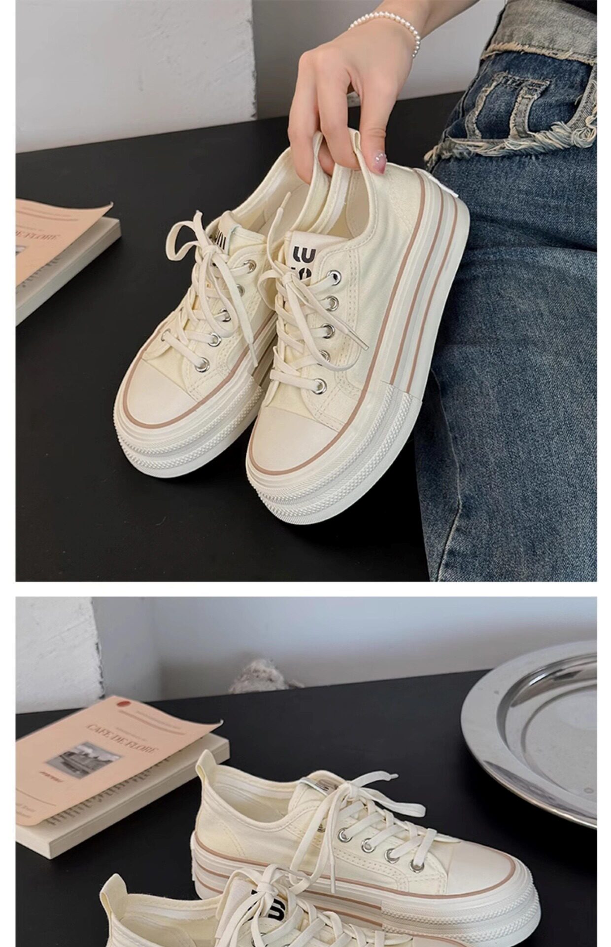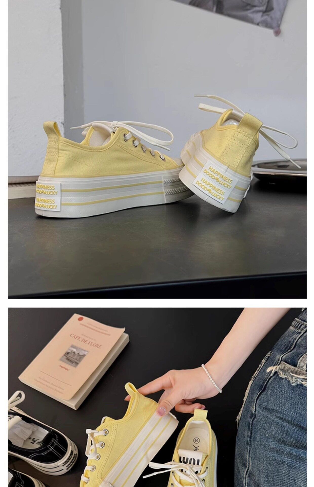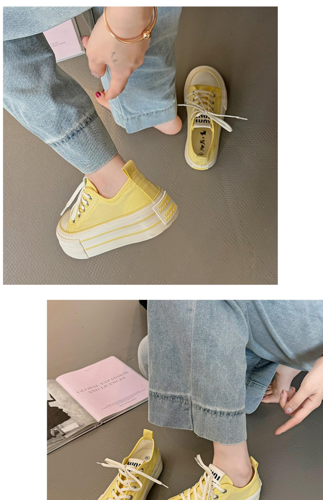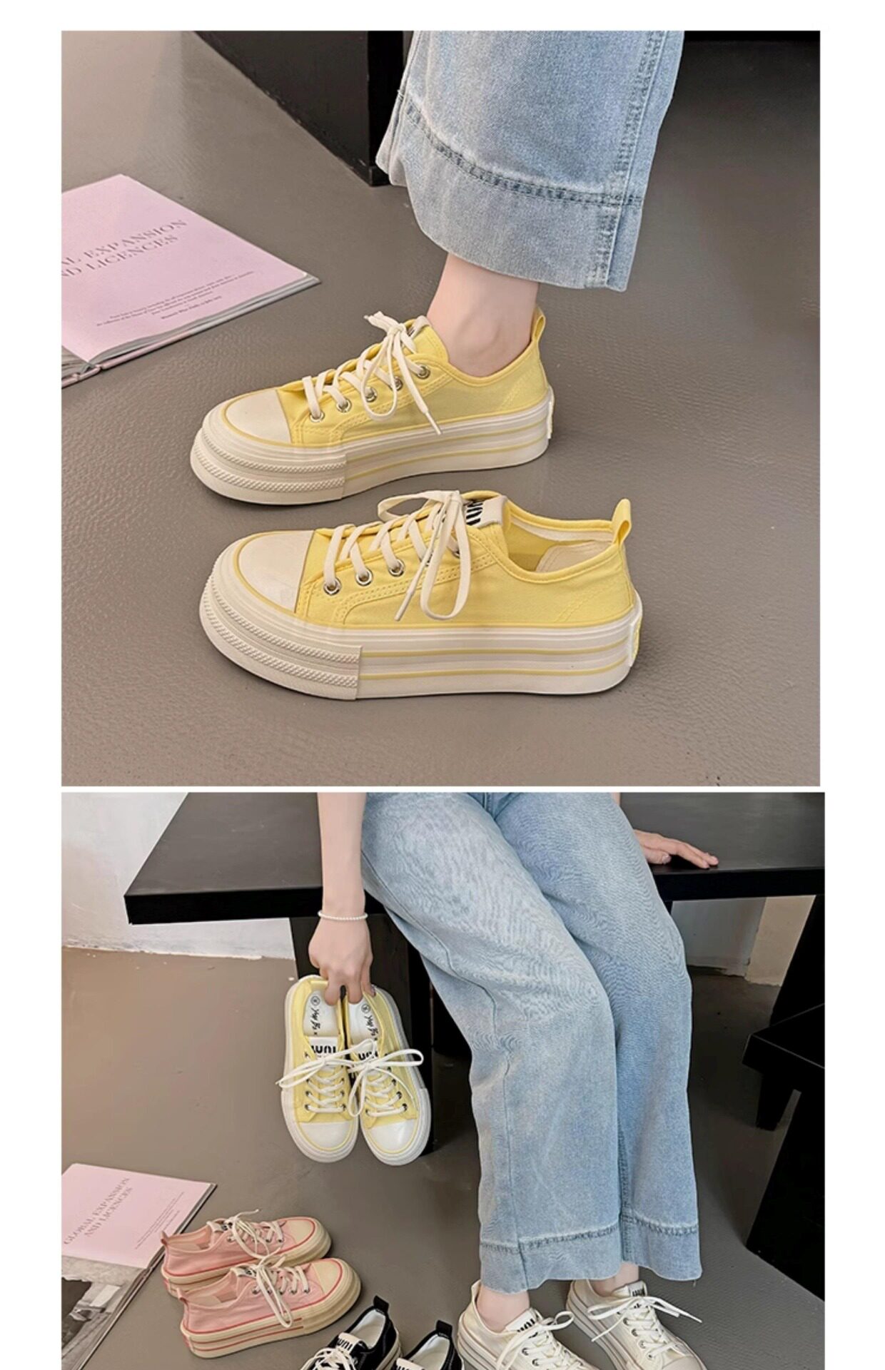 Yellow Thick-Soled Canvas Shoes for Women 2026 New Spring and Autumn Height-Increasing Casual Versatile Sneakers Lightweight White Shoes Cloth Shoes