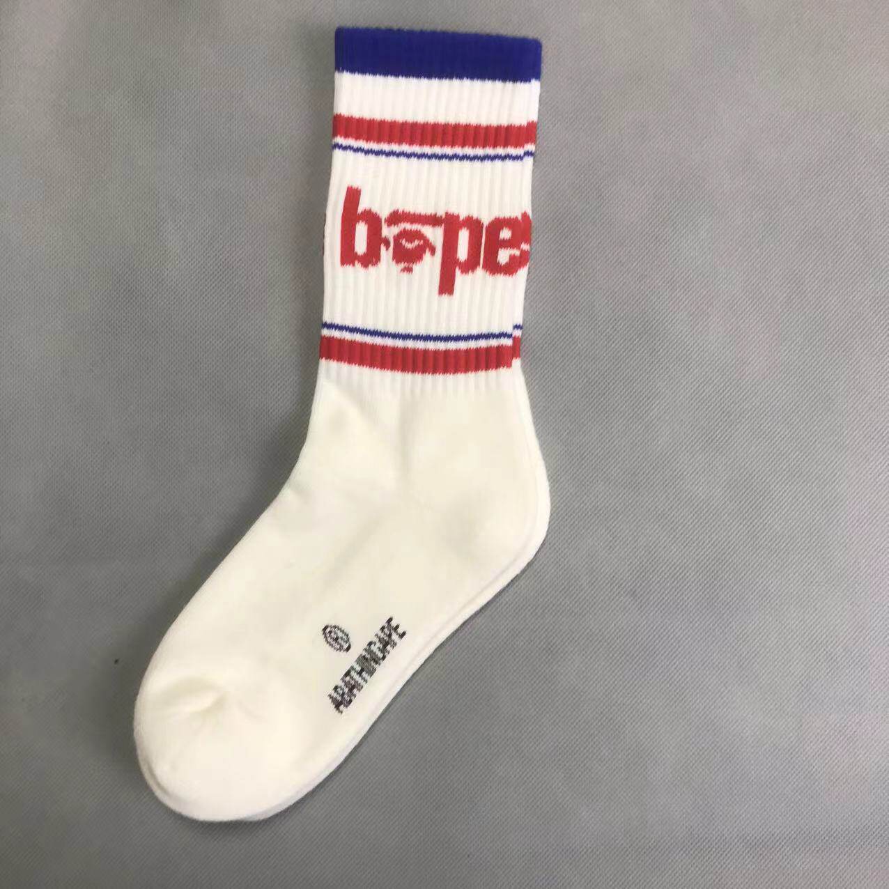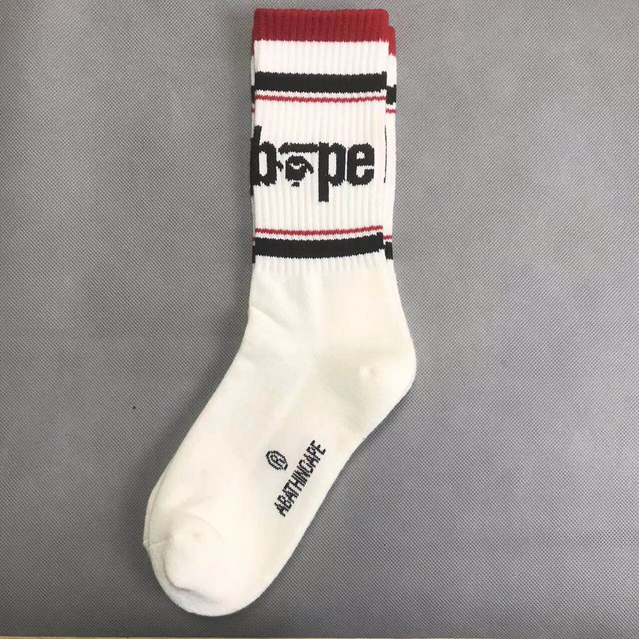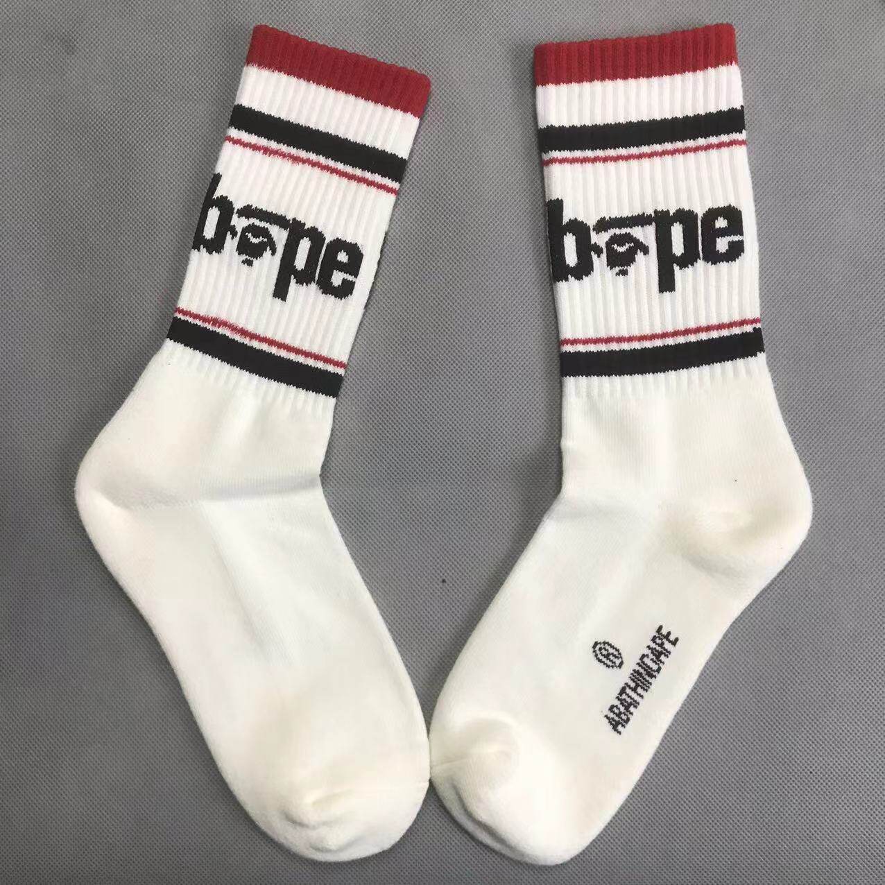 New Trendy Brand Ba Ape Head Socks for Men and Women, Pure Cotton Towel Bottom Sports Socks, White High-Top Basketball Socks