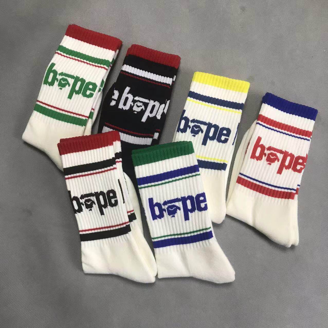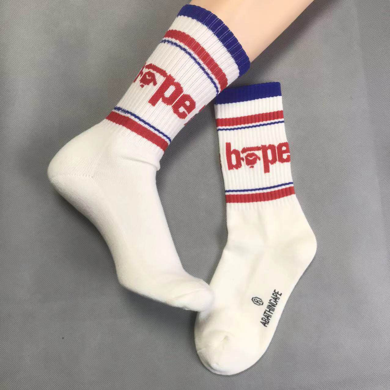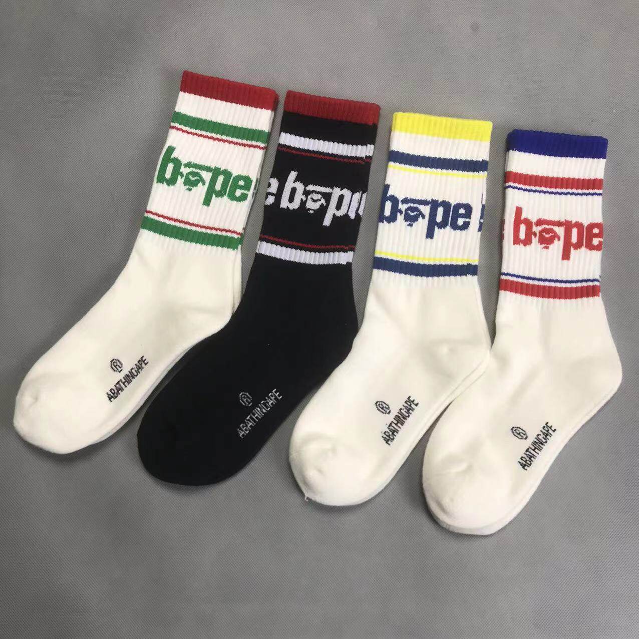 New Trendy Brand Ba Ape Head Socks for Men and Women, Pure Cotton Towel Bottom Sports Socks, White High-Top Basketball Socks