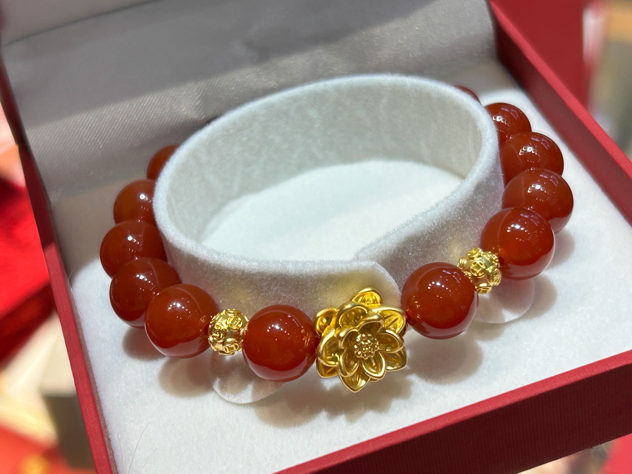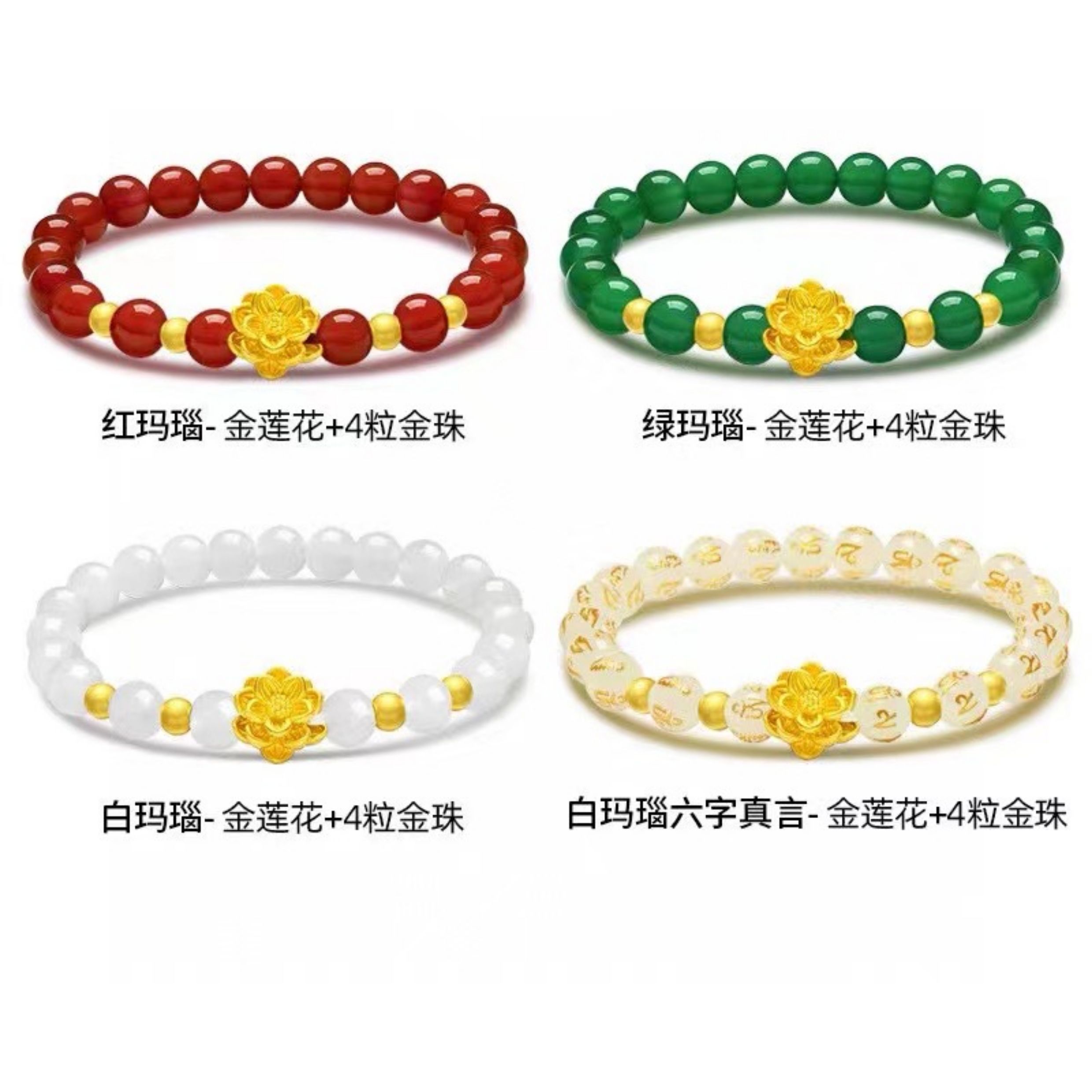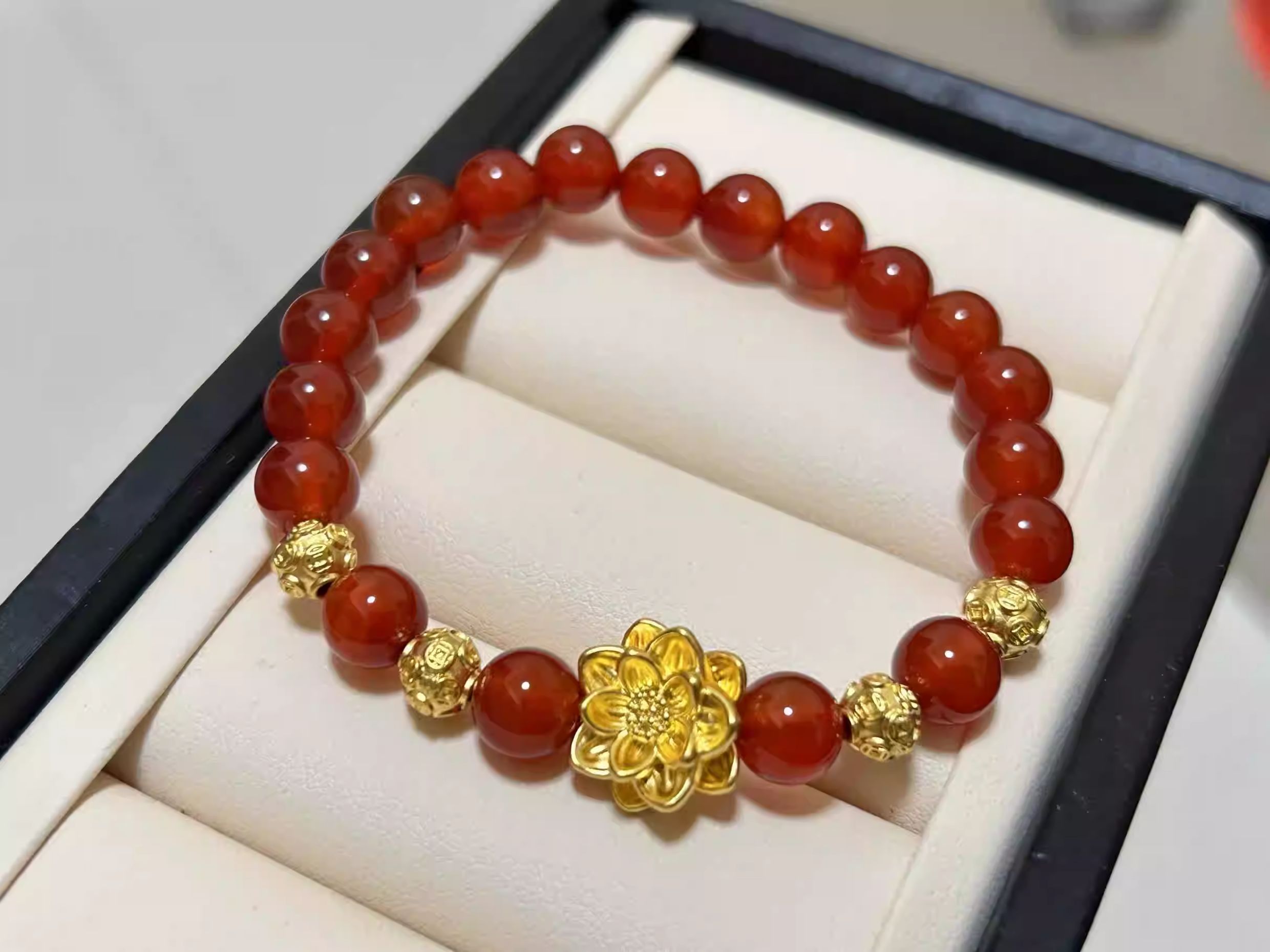 Water Shell Gold Pure Gold 999 New Red Agate Bracelet Gold Lotus Bracelet Mother's Day Gift Women's Coin Beads