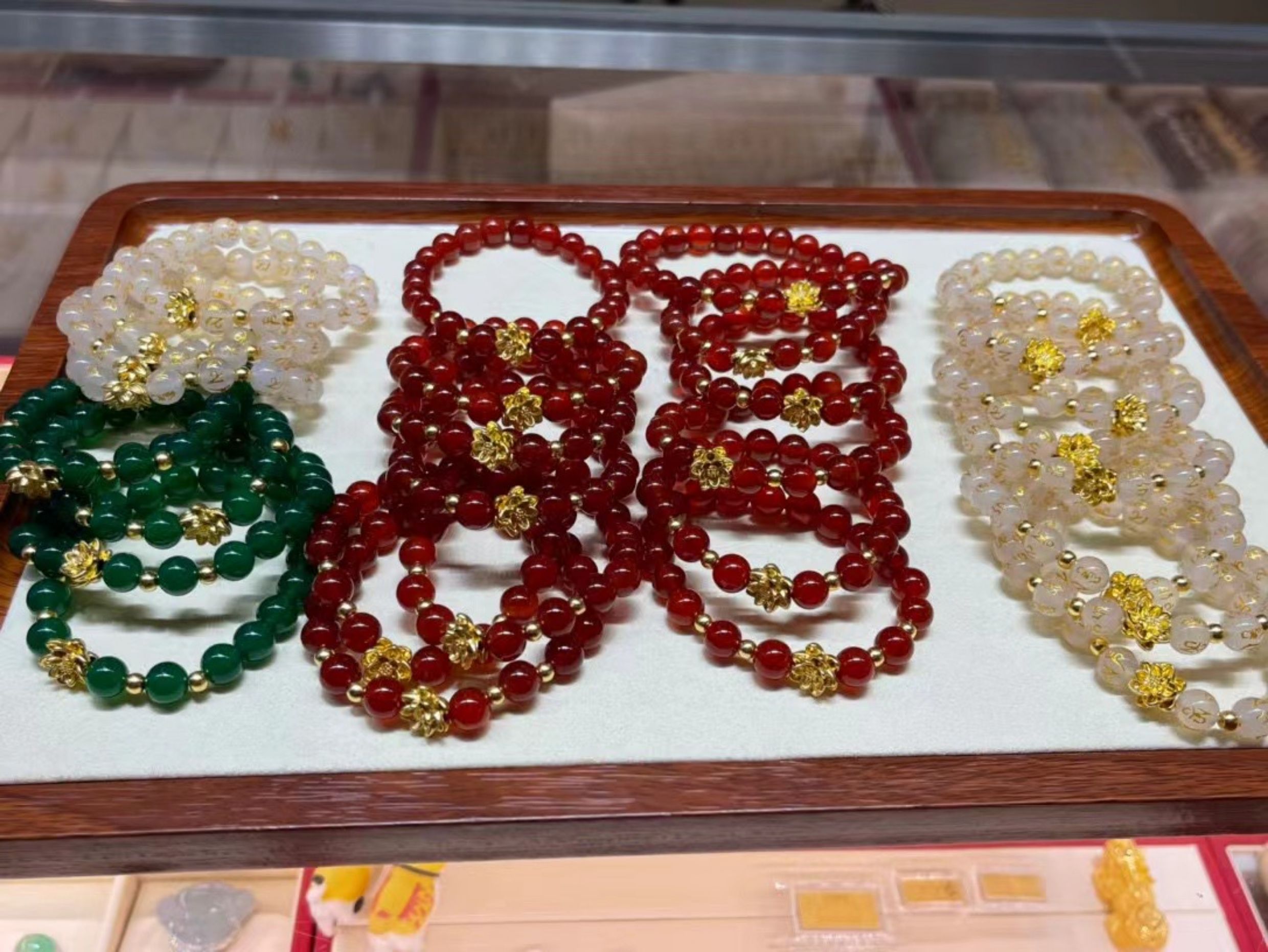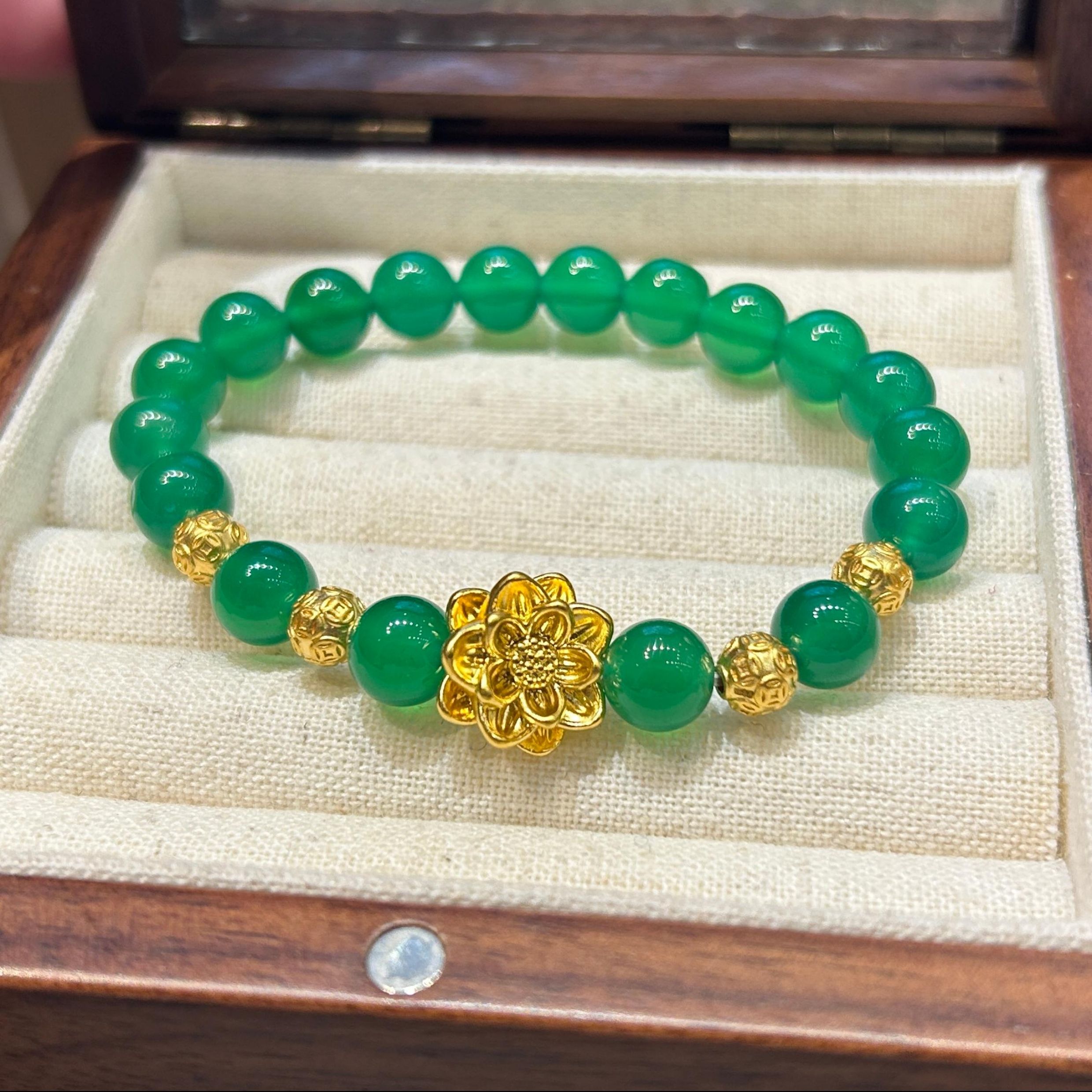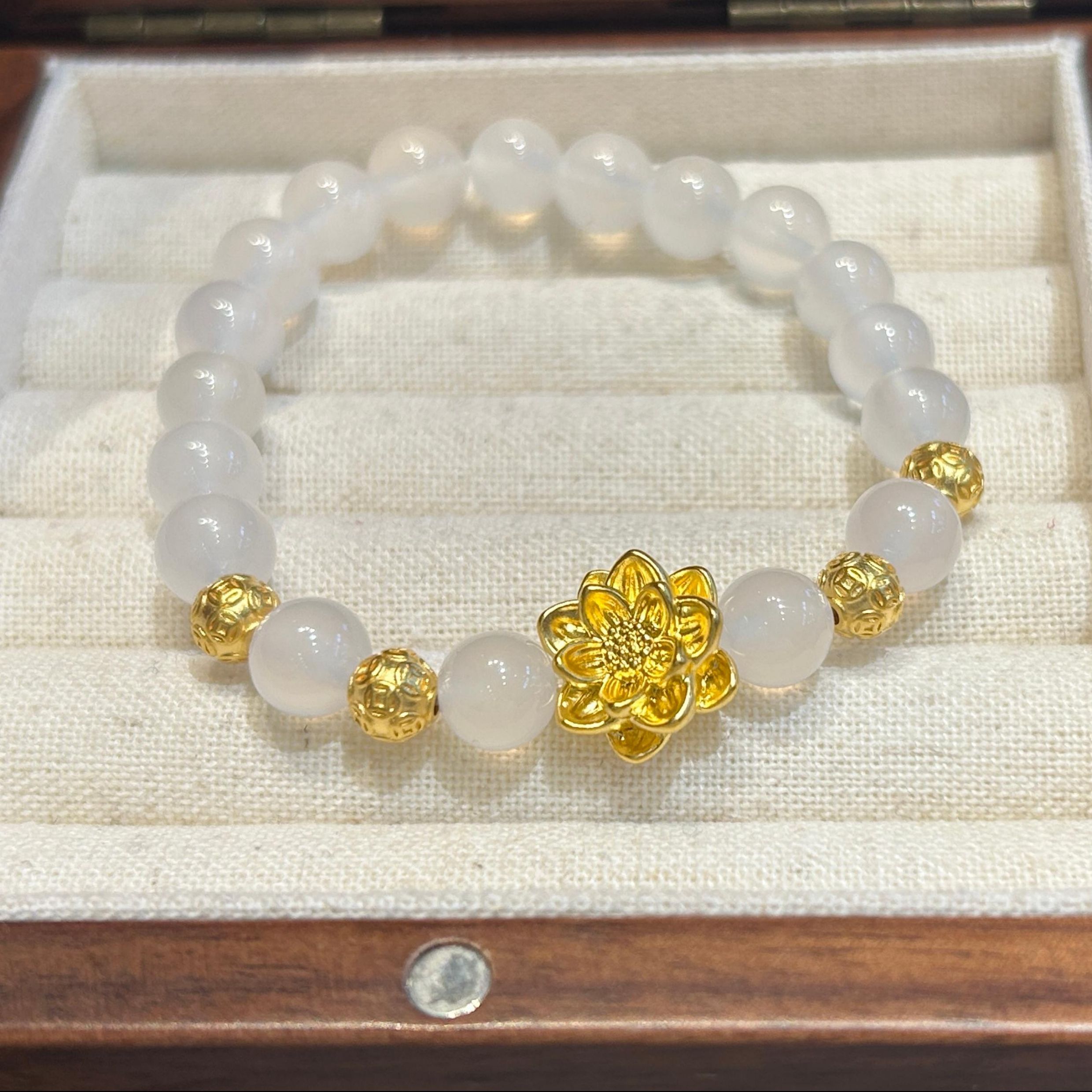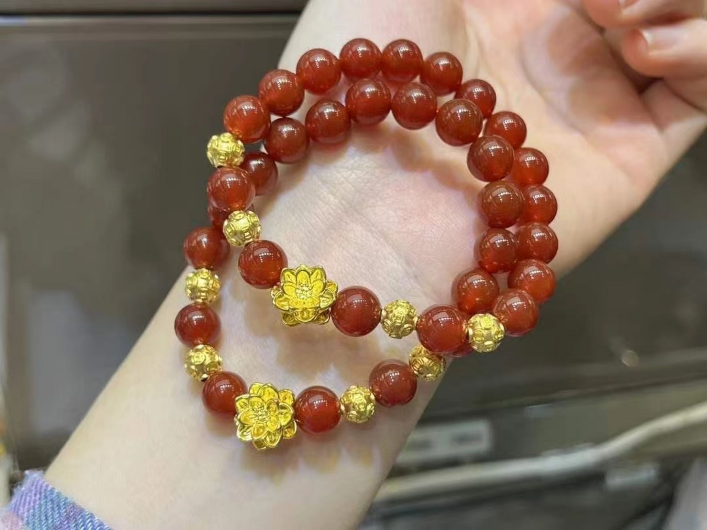 Water Shell Gold Pure Gold 999 New Red Agate Bracelet Gold Lotus Bracelet Mother's Day Gift Women's Coin Beads