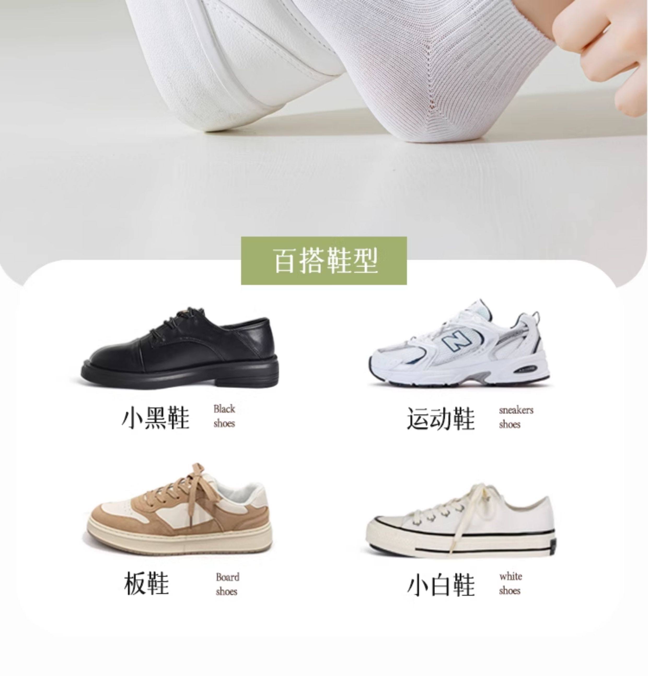 Women's Pure Cotton Socks for Autumn and Winter, Odor-Resistant Short Socks, White Short Boat Socks, Spring and Autumn Mid-Calf Socks